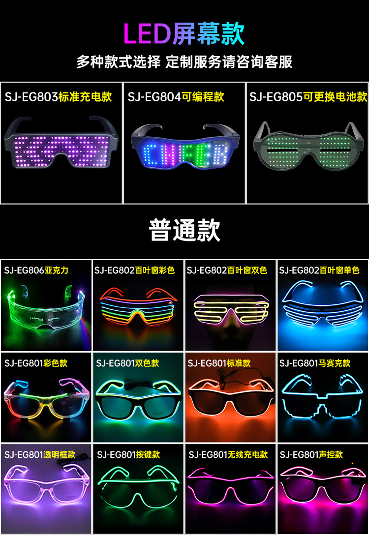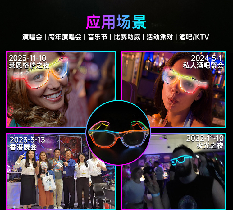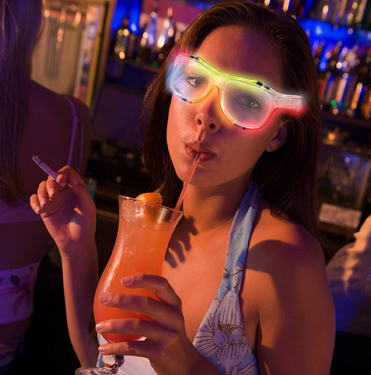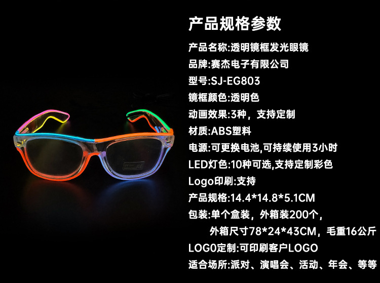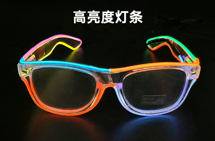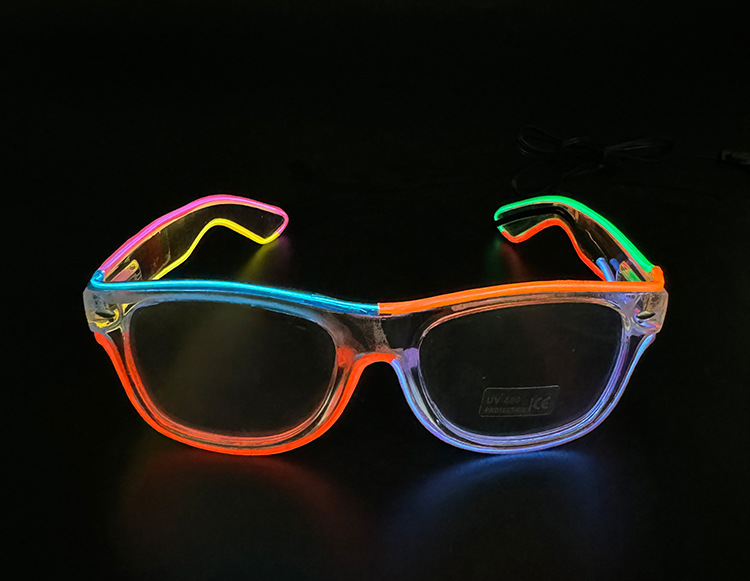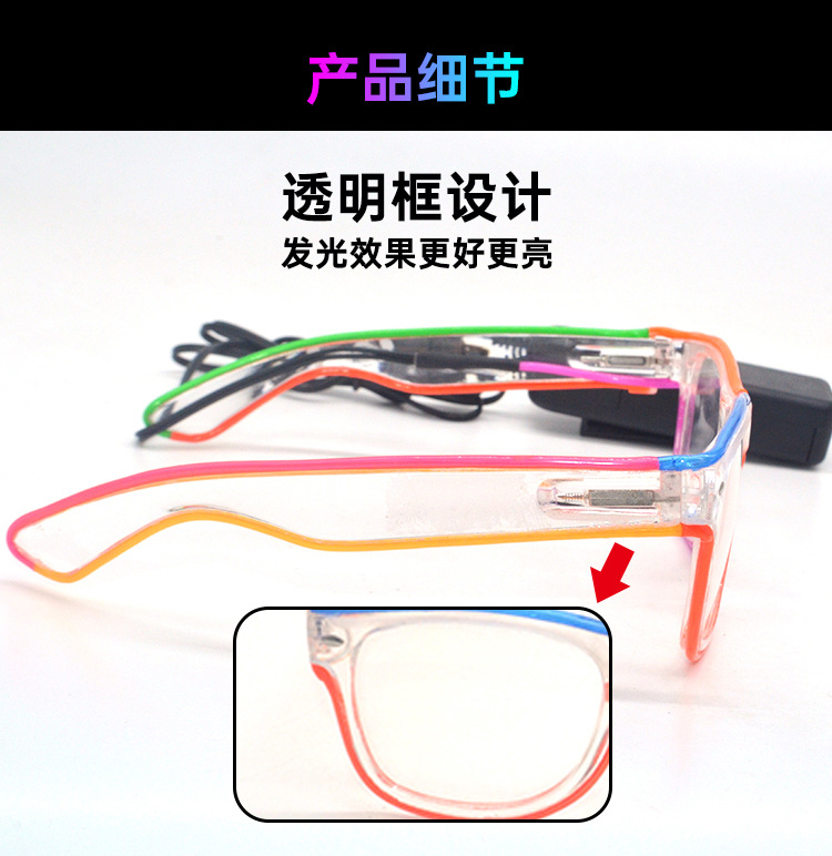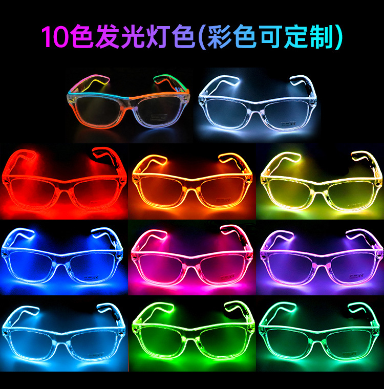 Mayorista transfronterizo fiesta transparente marco gafas luminosas festival de música bar gafas fluorescentes bungee