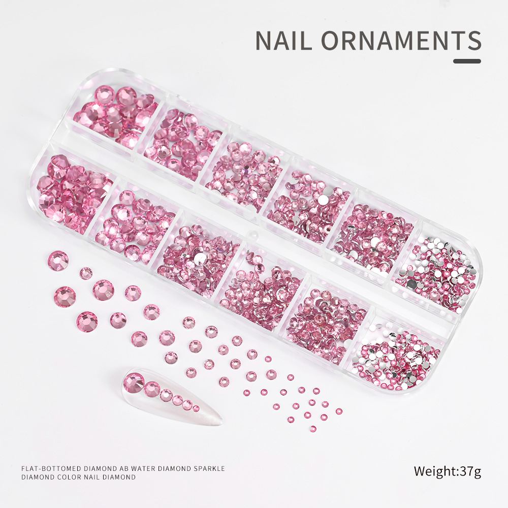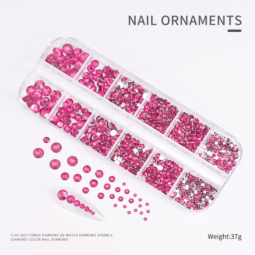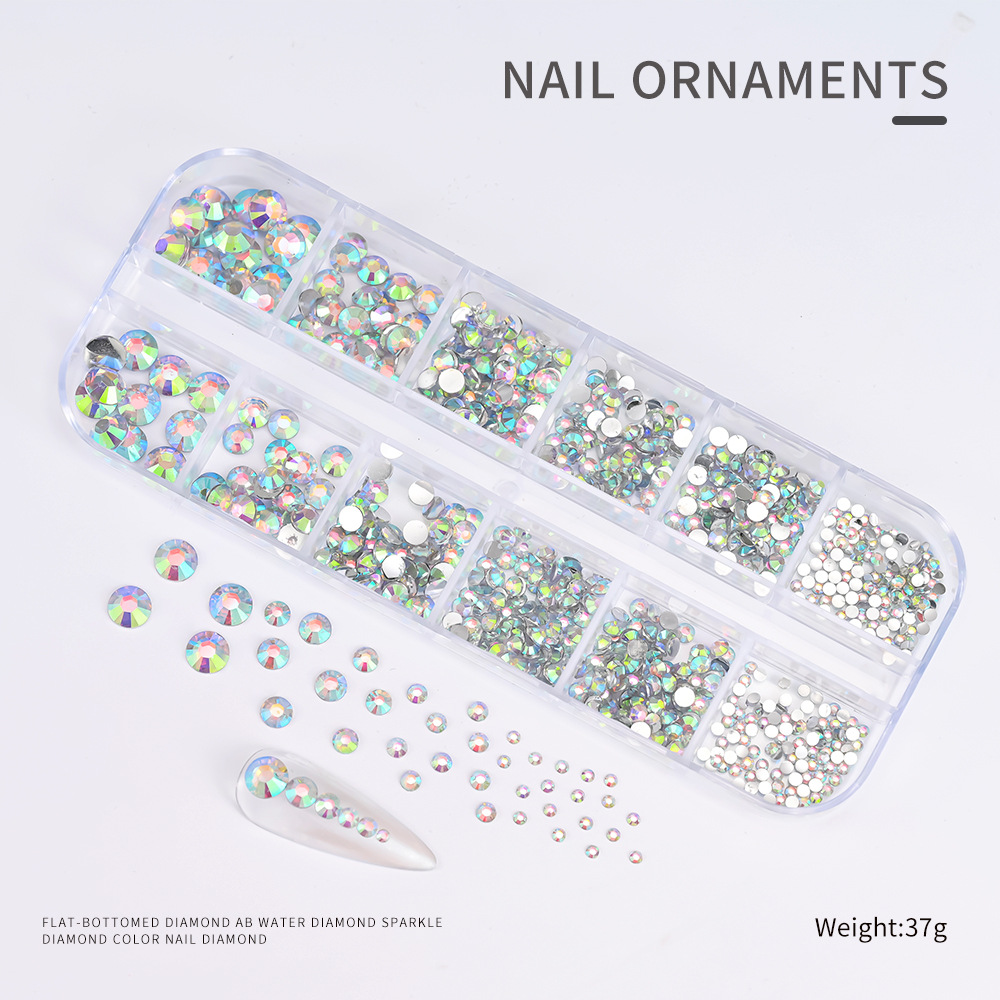 Decoraciones de Uñas con Pedrería de Fondo Plano, Superventas Transfronterizas, para Niñas, Caja de 12 Compartimentos, Accesorios de Plástico para Decoración de Uñas con Pedrería de Colores, Venta al por Mayor