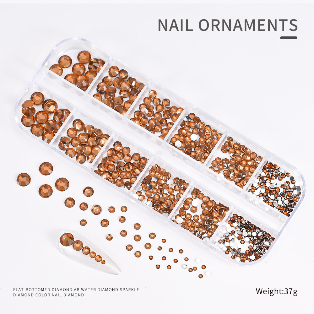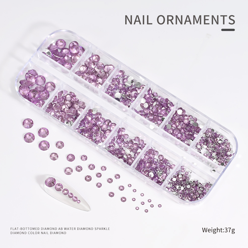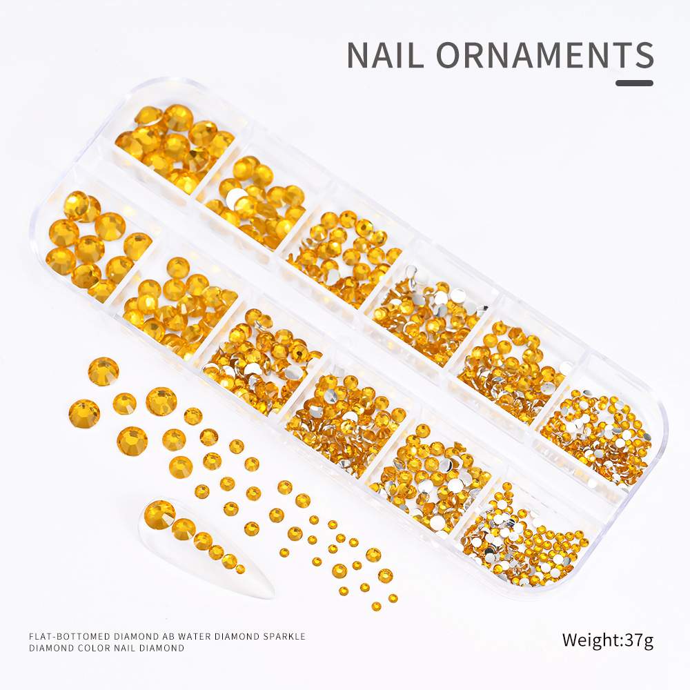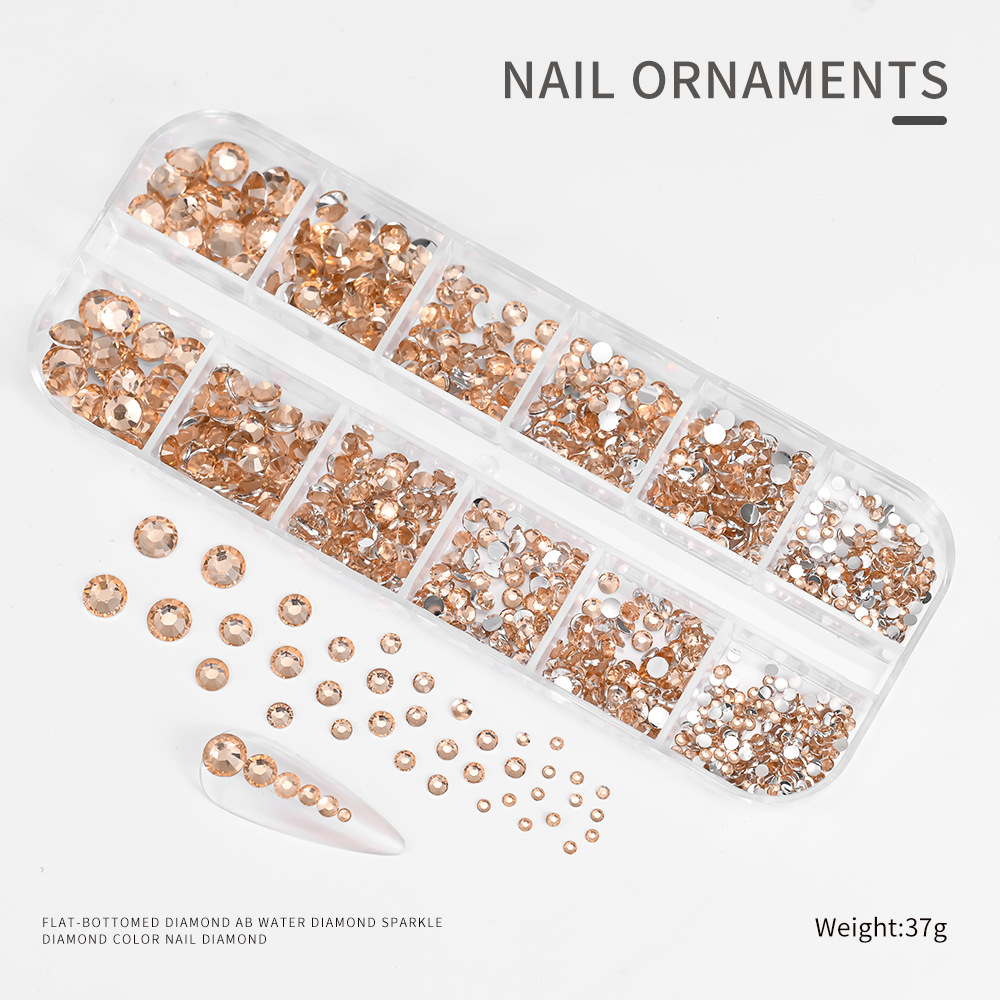 Decoraciones de Uñas con Pedrería de Fondo Plano, Superventas Transfronterizas, para Niñas, Caja de 12 Compartimentos, Accesorios de Plástico para Decoración de Uñas con Pedrería de Colores, Venta al por Mayor