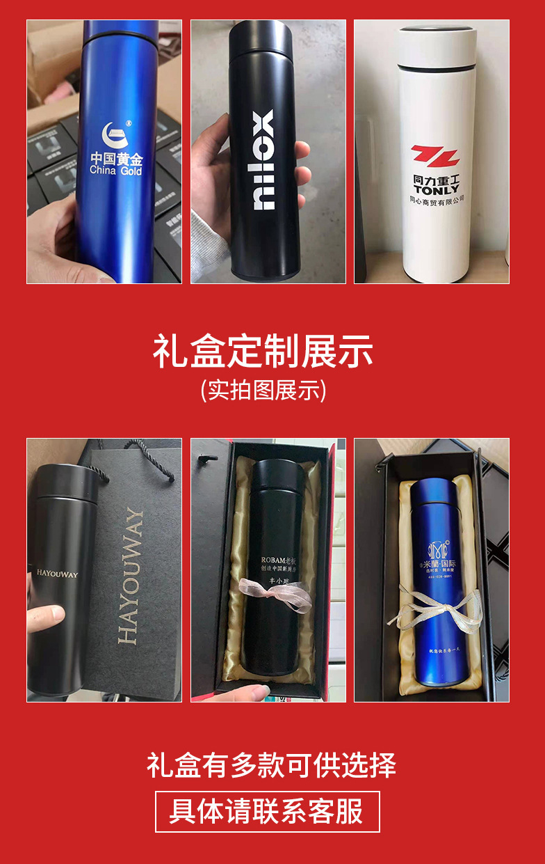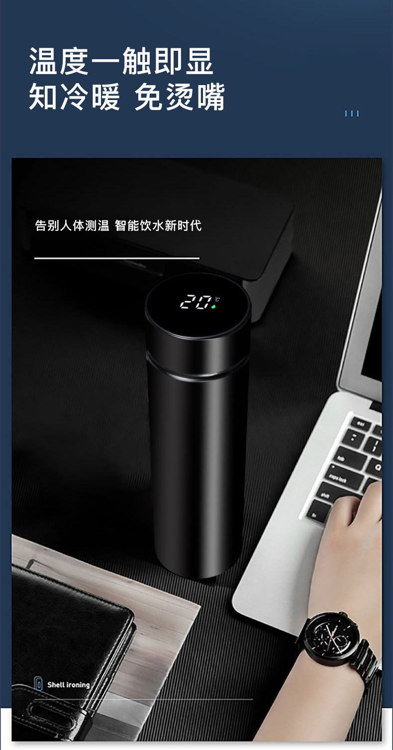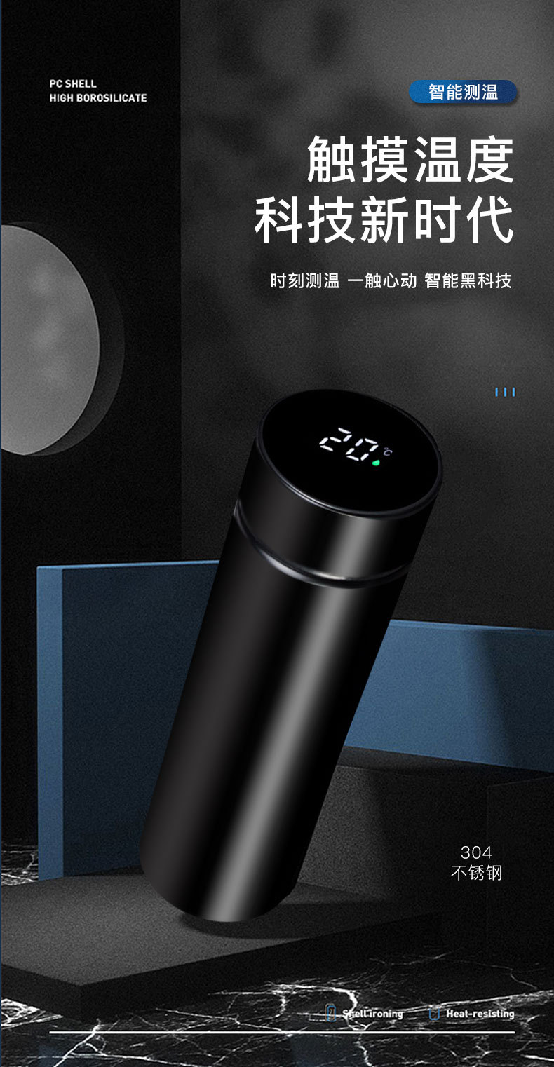 Intelligente 304 doble capa de acero inoxidable hombre temperatura de visualización taza de agua de taza de logotipo regalos comerciales al por mayor