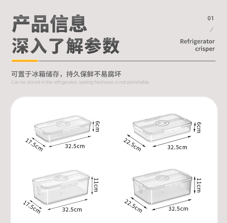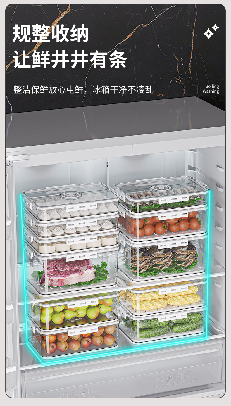 Refrigerador caja de almacenamiento plástico cocina organizador sincronización congelado PET sellado blanco transparente verduras y frutas