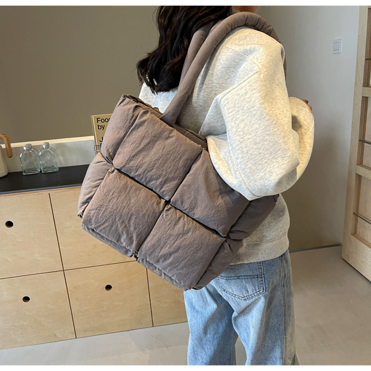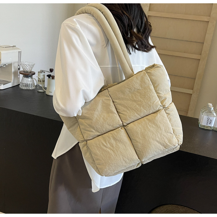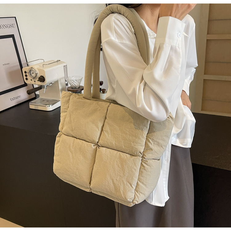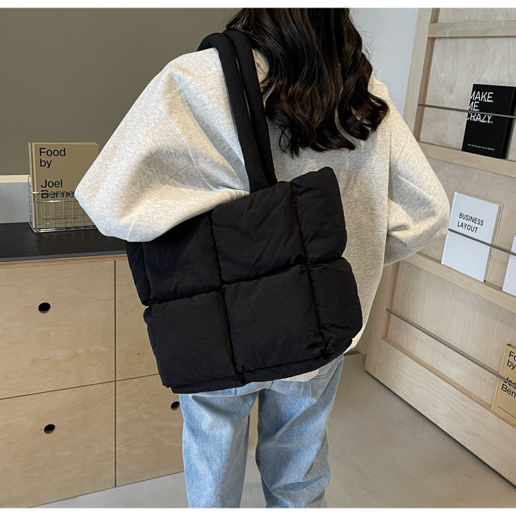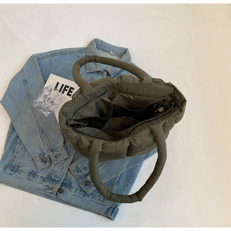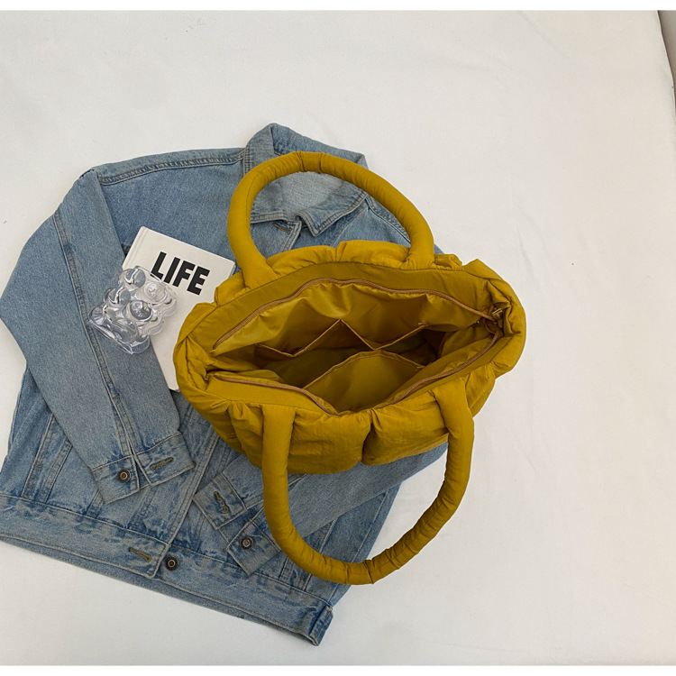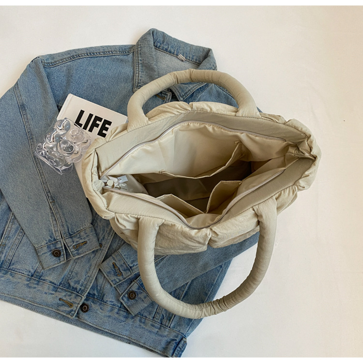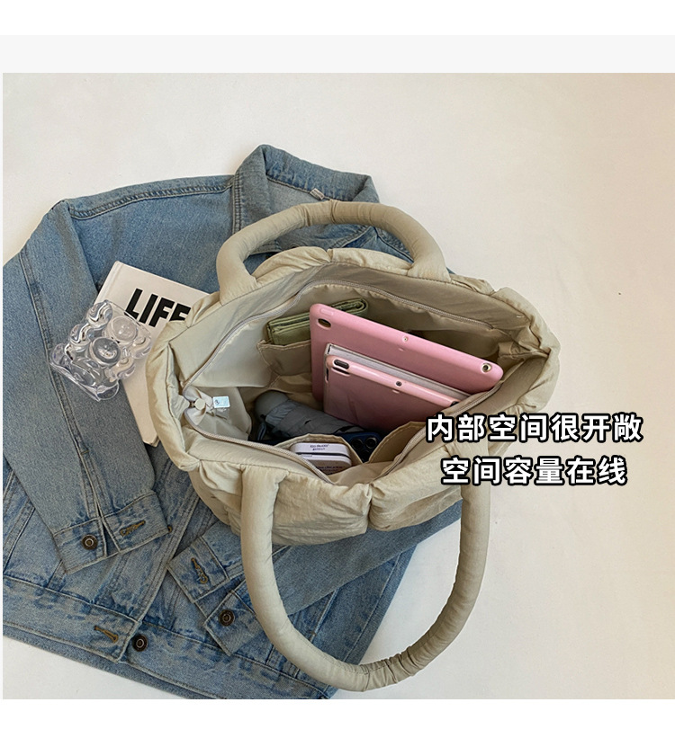 Bolso de mano de las mujeres de gran capacidad de la clase de estudiante de cercanías bolsa de hombro bolsa de tela de costura bolso de color sólido suave glutinoso bolsa de soplo