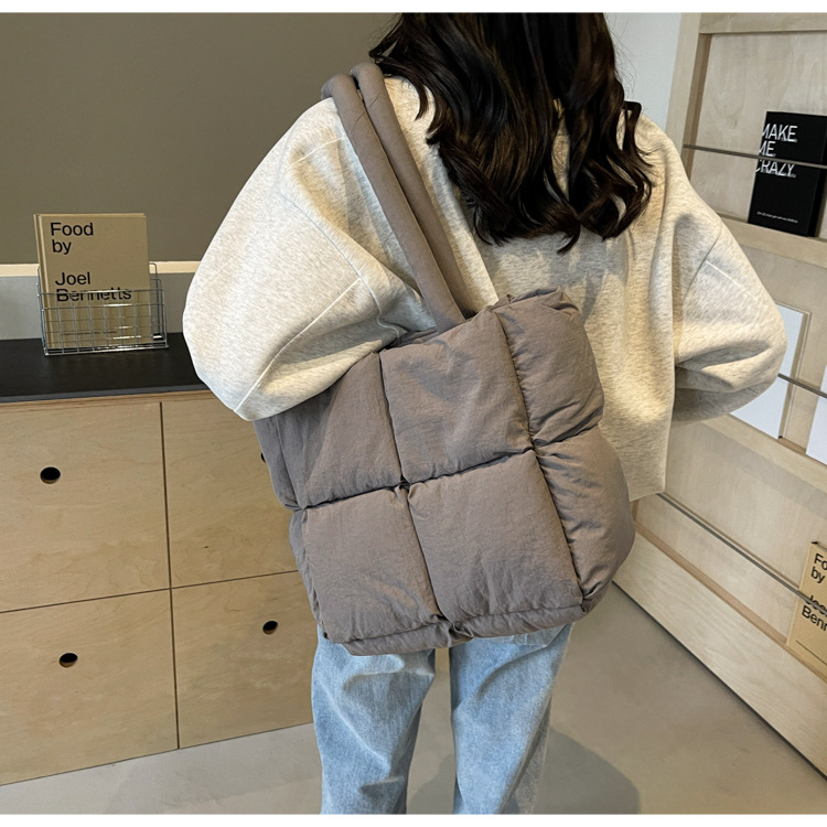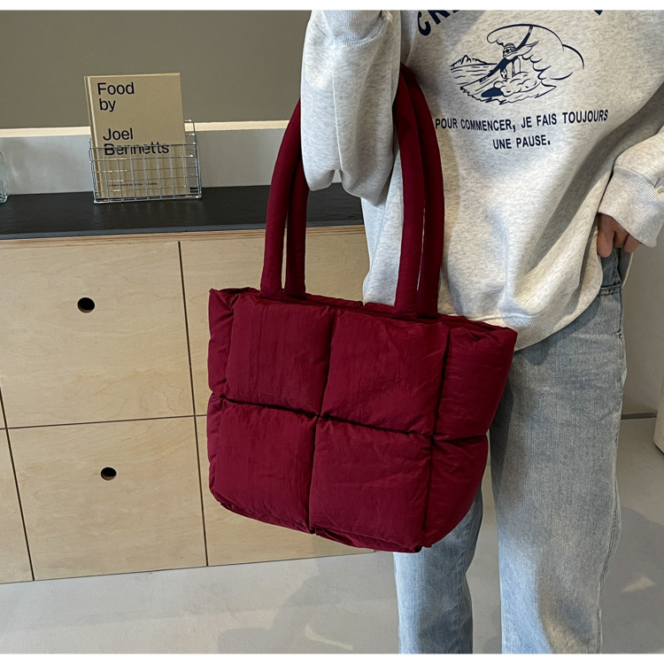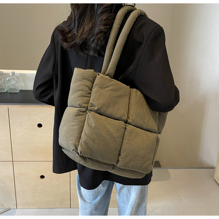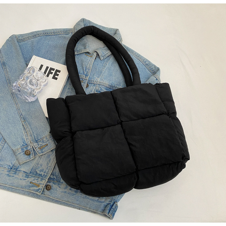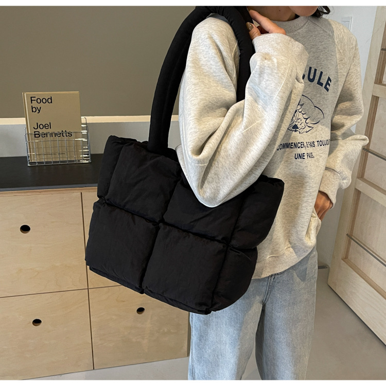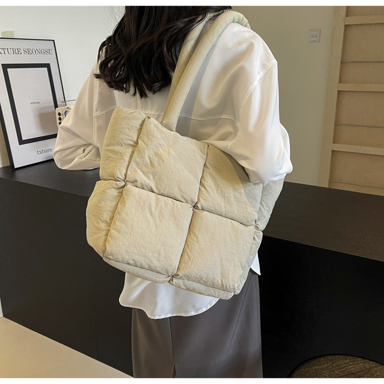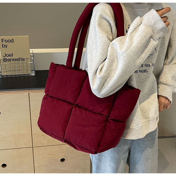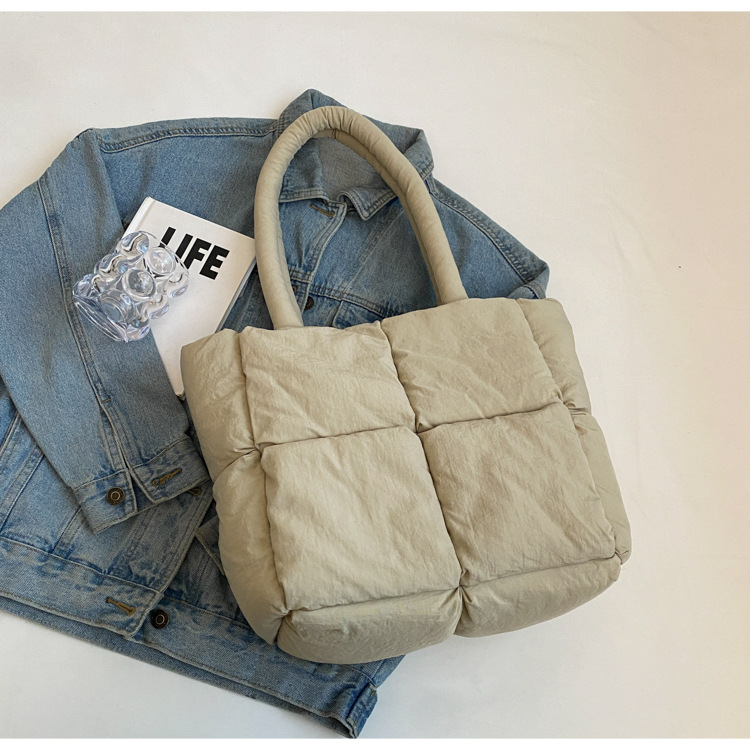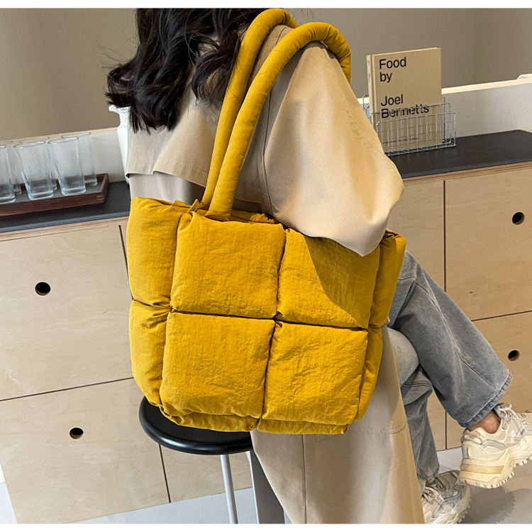 Bolso de mano de las mujeres de gran capacidad de la clase de estudiante de cercanías bolsa de hombro bolsa de tela de costura bolso de color sólido suave glutinoso bolsa de soplo