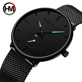 Movimiento japonés Amazon estudiante Acero inoxidable malla Correa reloj hombres simple negocio casual cuarzo impermeable reloj