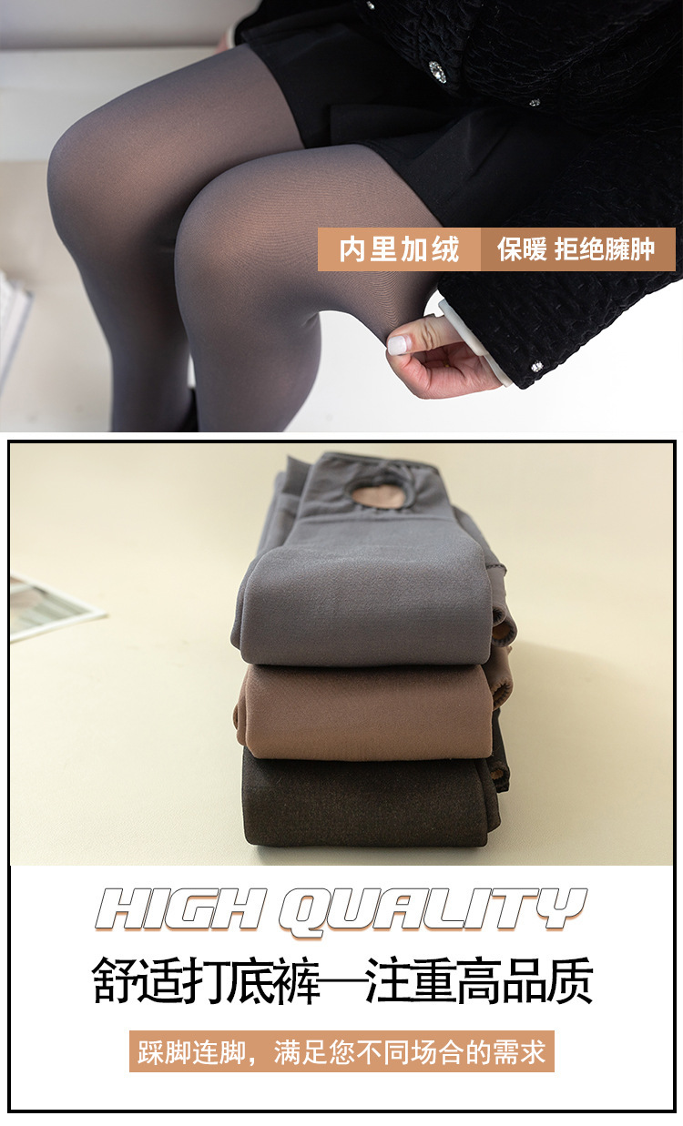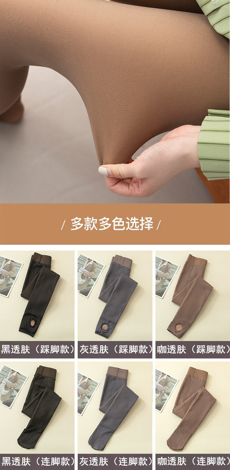 Ropa exterior transfronteriza falsa a través de la carne otoño e invierno a través de la piel leggings de talla grande más vellón azafata femenina piernas brillantes grises pantimedias gruesas