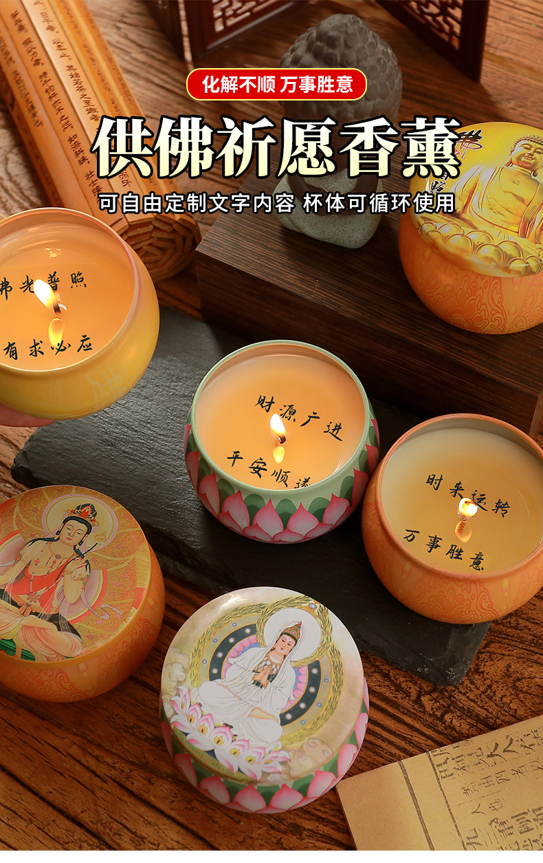 Bendición Buda adoración palabra Xizanga vela de aromaterapia buscando riqueza y mostrando palabras que desean adorar a Buda antes de rezar Lámpara de mantequilla Vela de adoración de Buda al por mayor