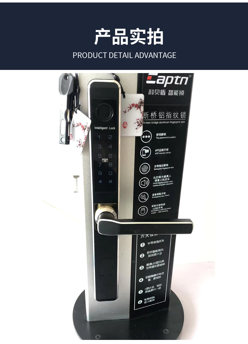 Kebei escudo impermeable al aire libre roto puente de aluminio cerradura de huellas dactilares KFC puerta corredera cerradura electrónica estrecha puerta corredera cerradura inteligente