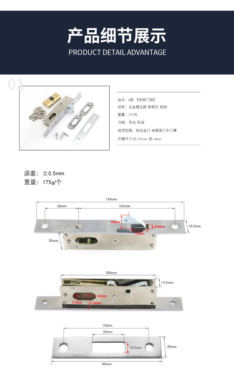 Suministro de China del sur de aleación de aluminio 5586 tipo único abierto puerta corredera gancho cerradura Puerta de Hierro puerta móvil cerradura de hierro gancho cerradura fabricante