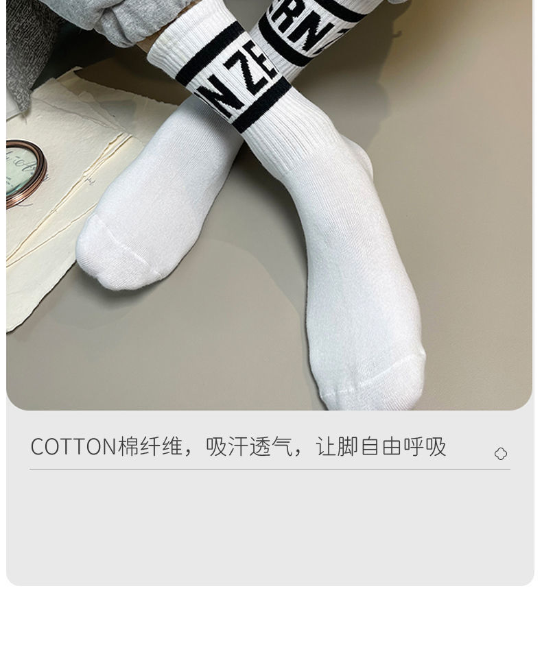 Calcetines de primavera y otoño para hombres calcetines de media pantorrilla medias desodorantes transpirables casuales versátiles letras de moda estudiante baloncesto calcetines deportivos