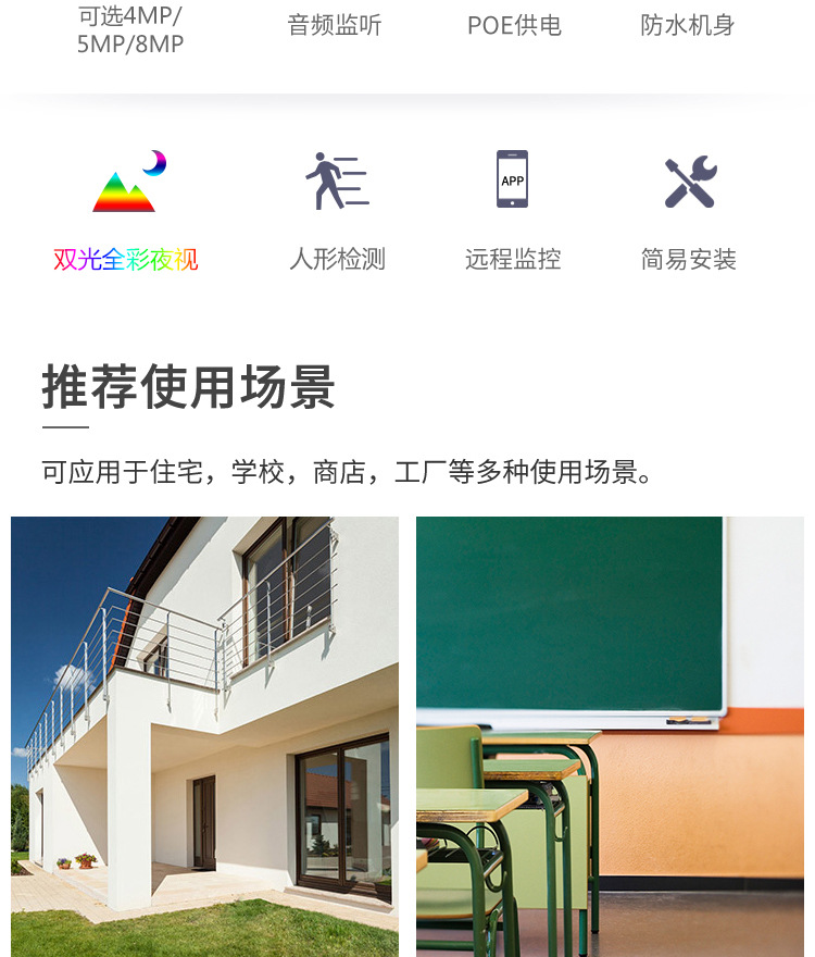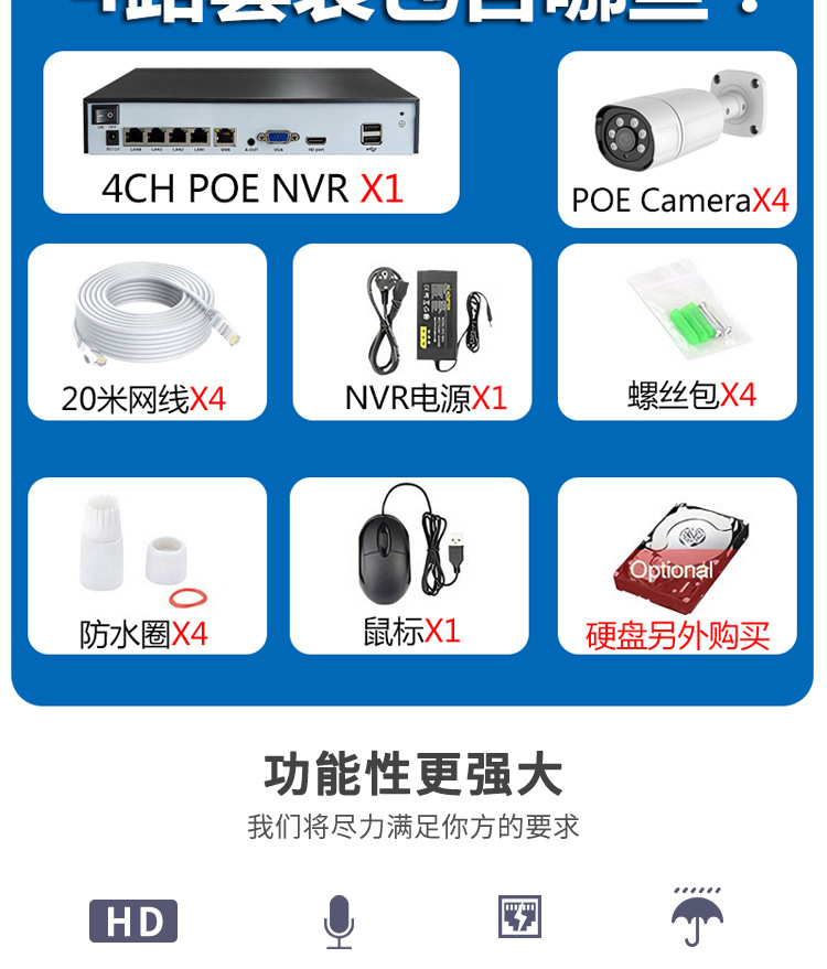 | Especificaciones | Inglés 4-Way 4 millones de trajes de monitoreo POE,Inglés 4-Way 5 millones de trajes de monitoreo POE,Inglés 4-Way 8 millones de trajes de monitoreo POE,Producto único POE 8MP,1TB de disco duro de monitoreo,2TB de monitoreo de disco duro |