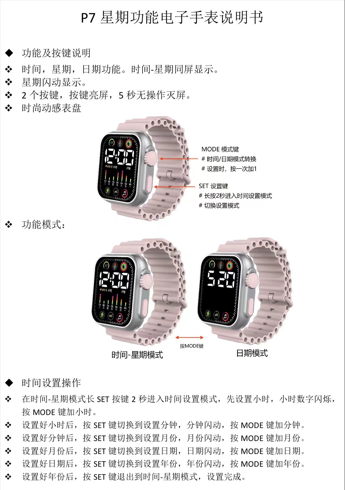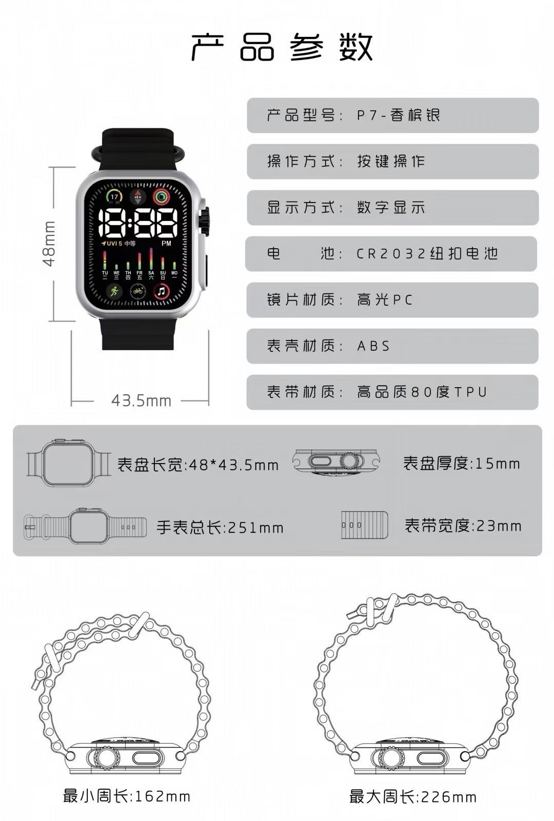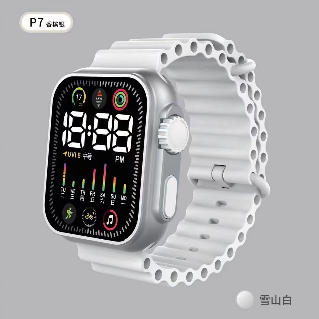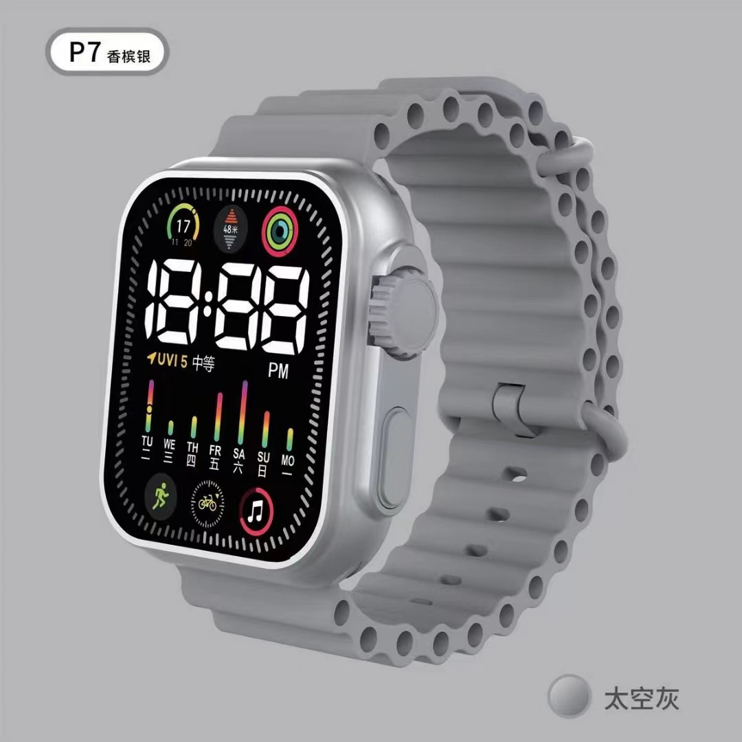 Nuevo reloj electrónico LED P7 champán plata océano banda moda digital deportes niños estudiante LED reloj electrónico