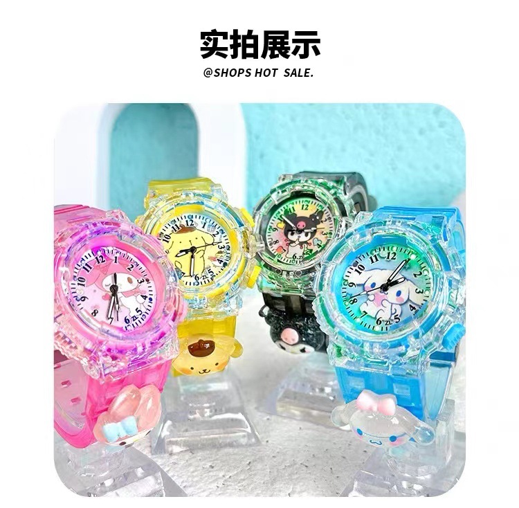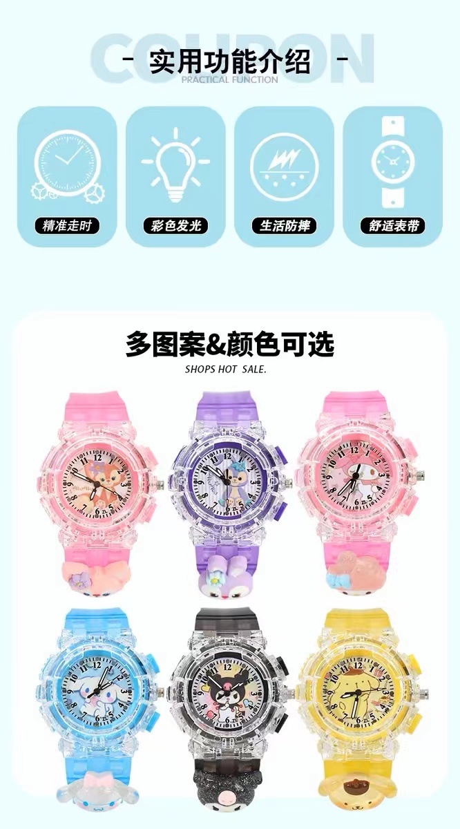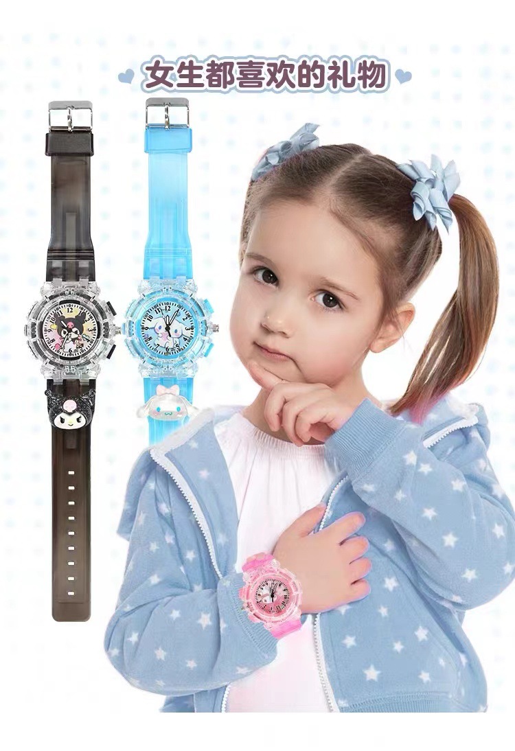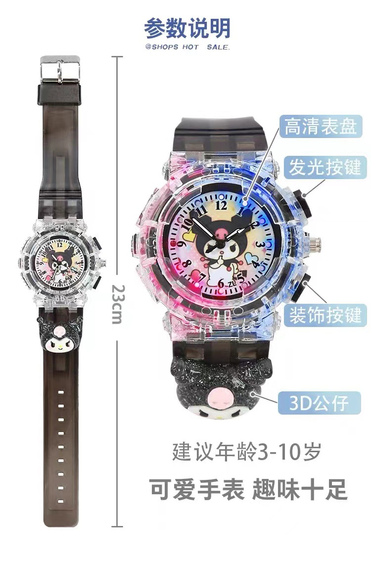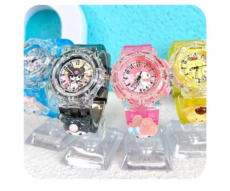 Reloj para niños Dibujos animados Sanrio Kulomi Reloj electrónico luminoso Reloj de cuarzo con puntero digital para estudiantes de primaria y secundaria