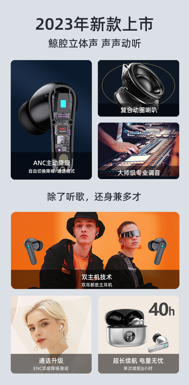 Lanston TA07 ANC + ENC doble cámara de reducción de ruido de baja latencia auricular bluetooth inalámbrico para juegos en stock
