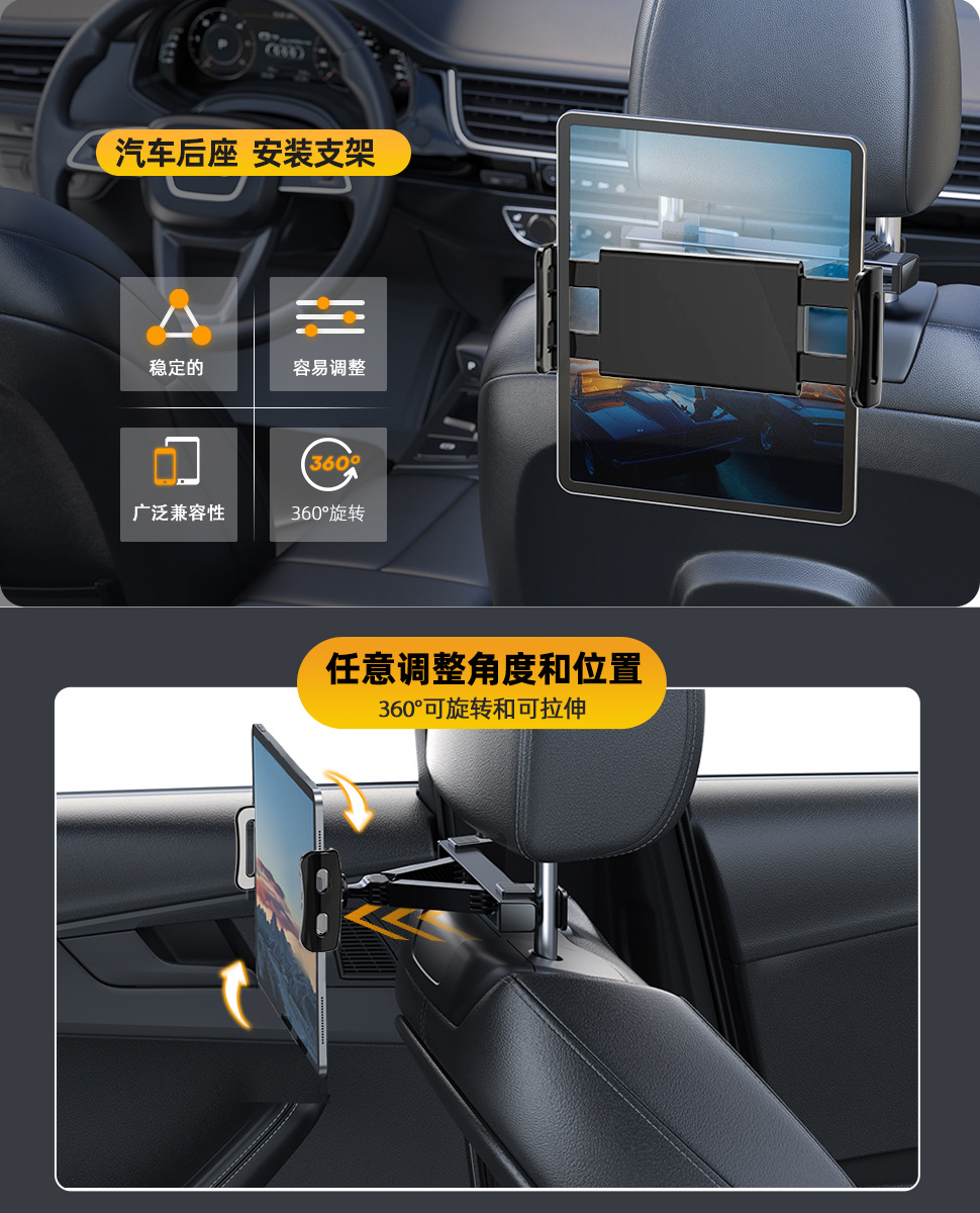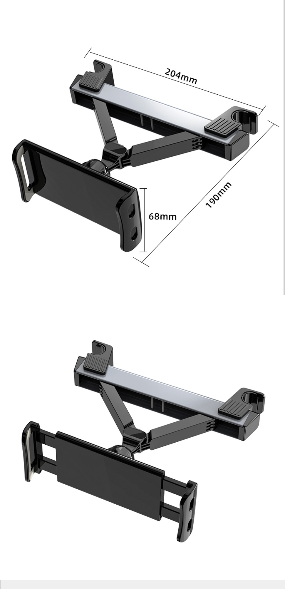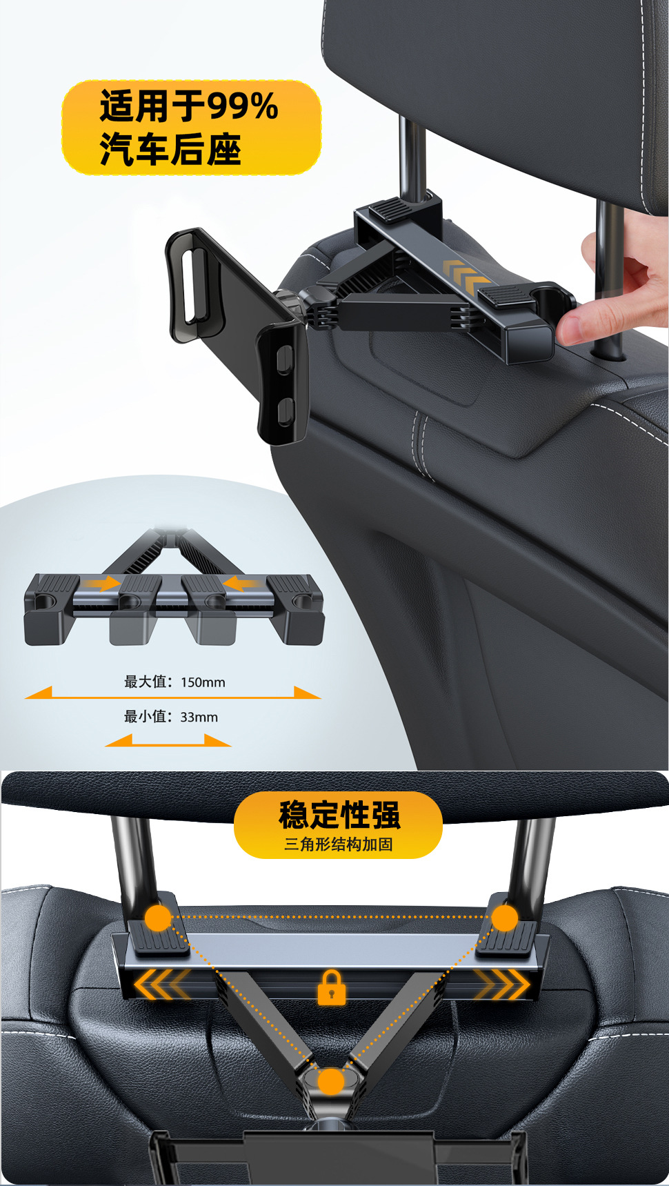 Tableta de asiento trasero montada en automóvil soporte de teléfono móvil estructura triangular de aleación de aluminio antivibración de pantalla horizontal y vertical soporte trasero telescópico