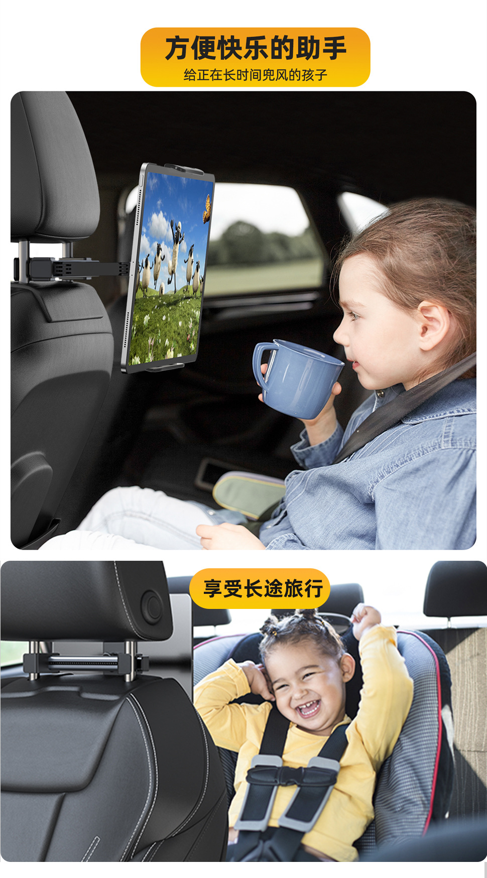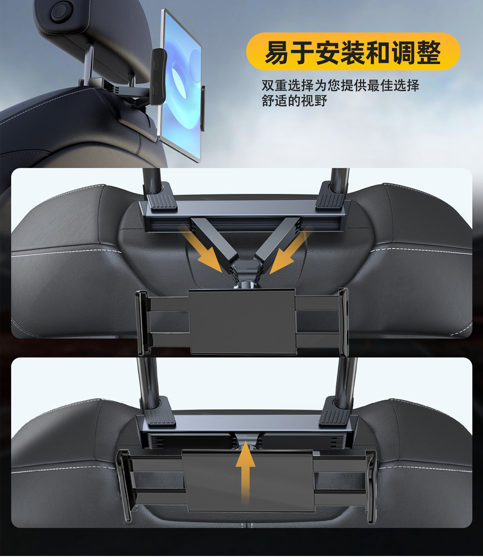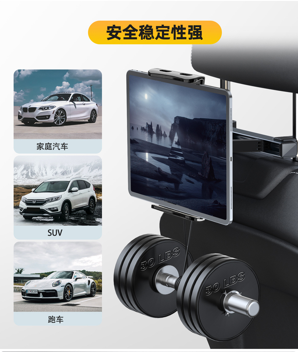Tableta de asiento trasero montada en automóvil soporte de teléfono móvil estructura triangular de aleación de aluminio antivibración de pantalla horizontal y vertical soporte trasero telescópico