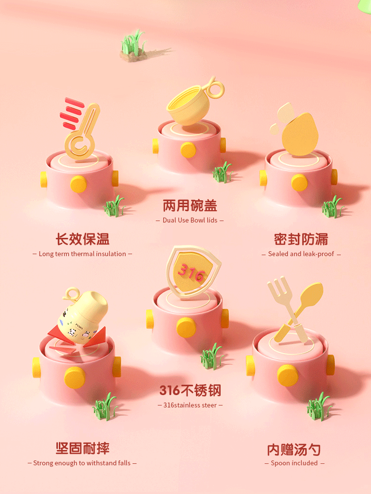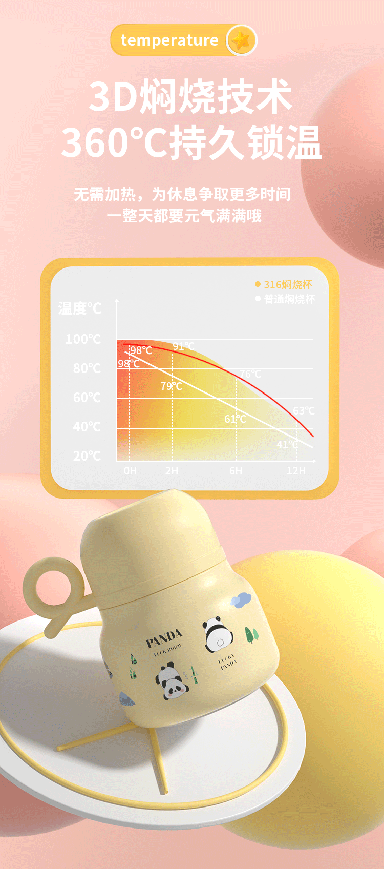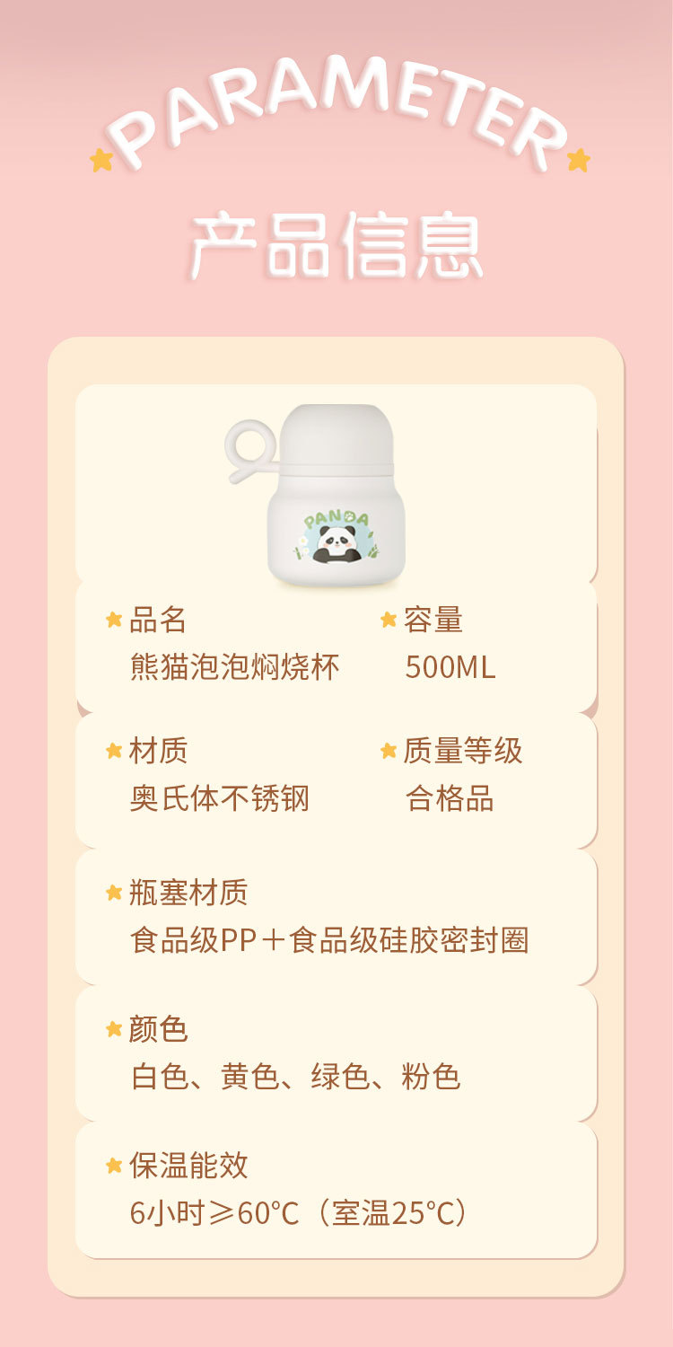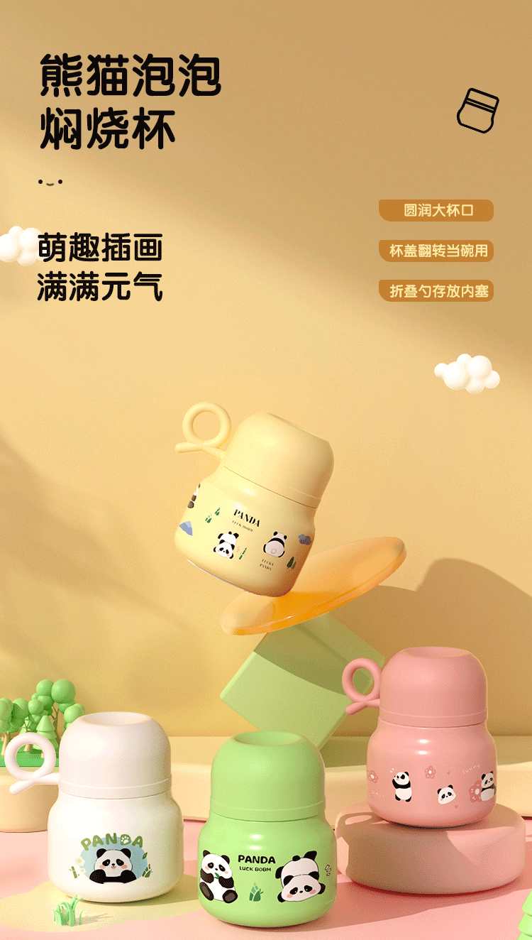 Panda burbuja copos 316 de acero inoxidable de alto valor nominal taza de aislamiento de doble capa con taza cucharada hermosa chica de aislamiento de calor