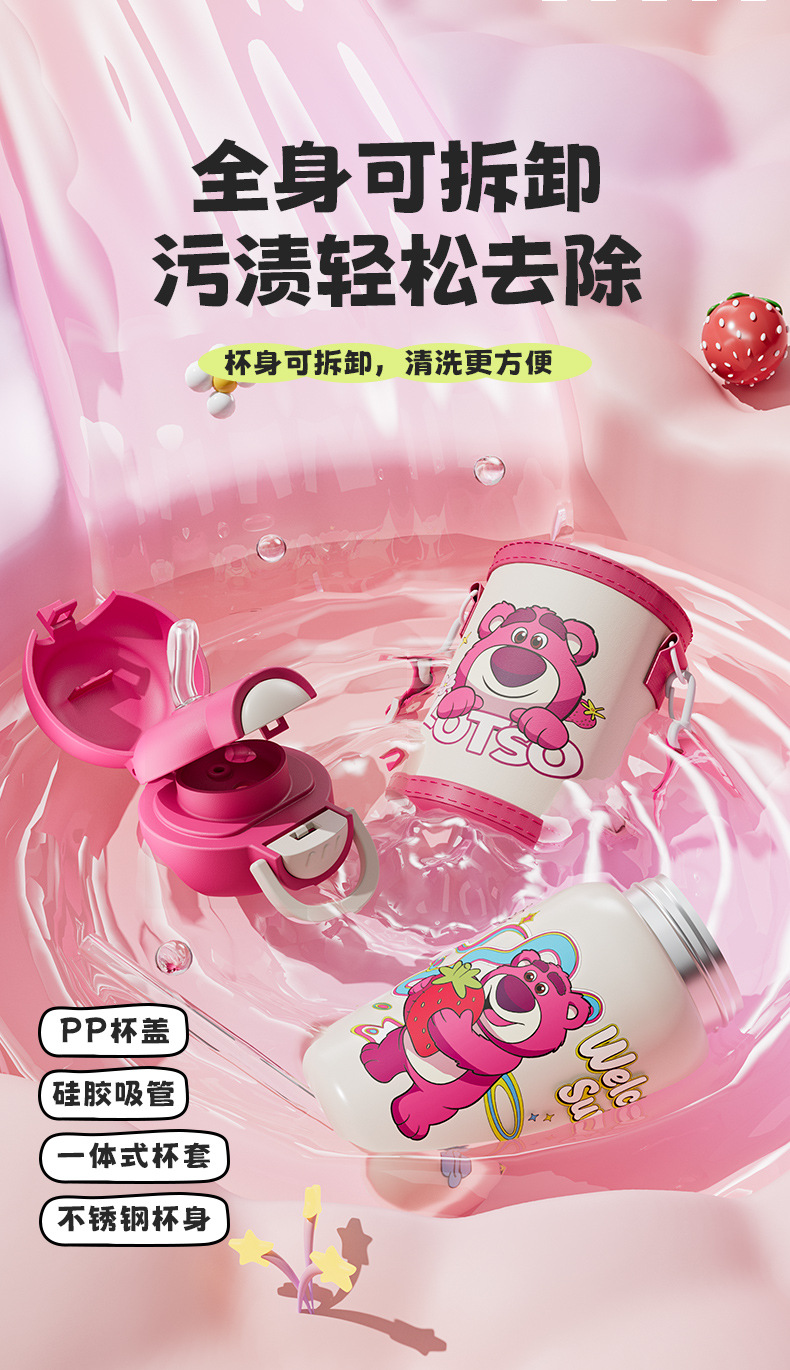 Nuevo niño 316 acero inoxidable doble bebida taza aislante Aisha encantadora taza de paja de dibujos animados fresa oso regalo taza de agua