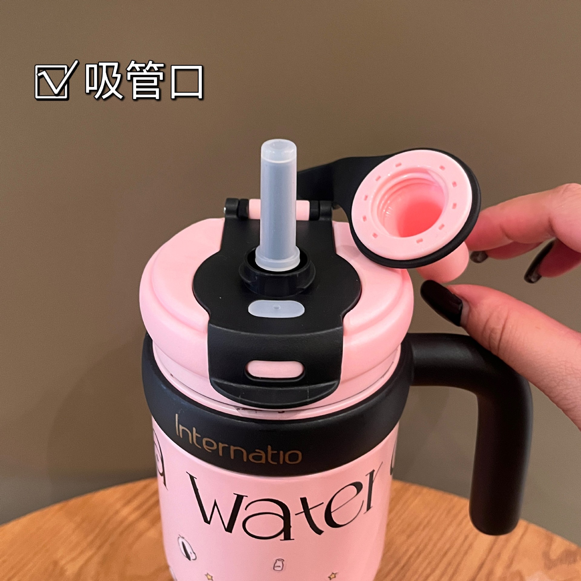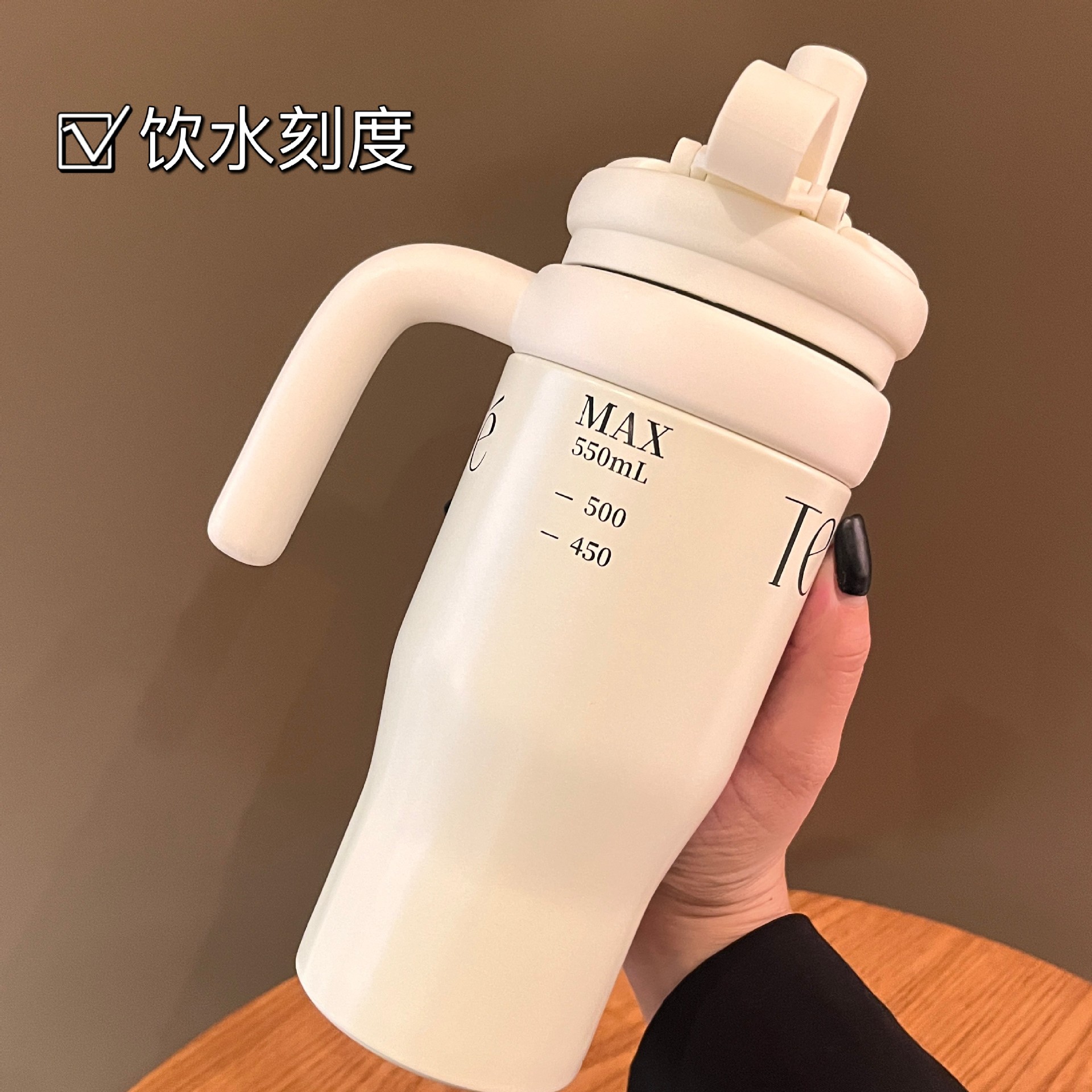 Simple 304 taza de acero inoxidable taza de café de alta capacidad para hombres y mujeres con mango portátil taza de agua de paja