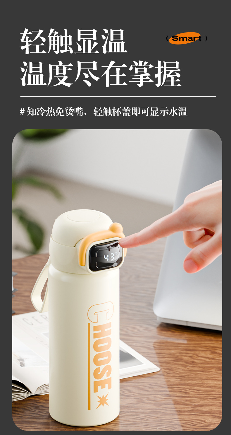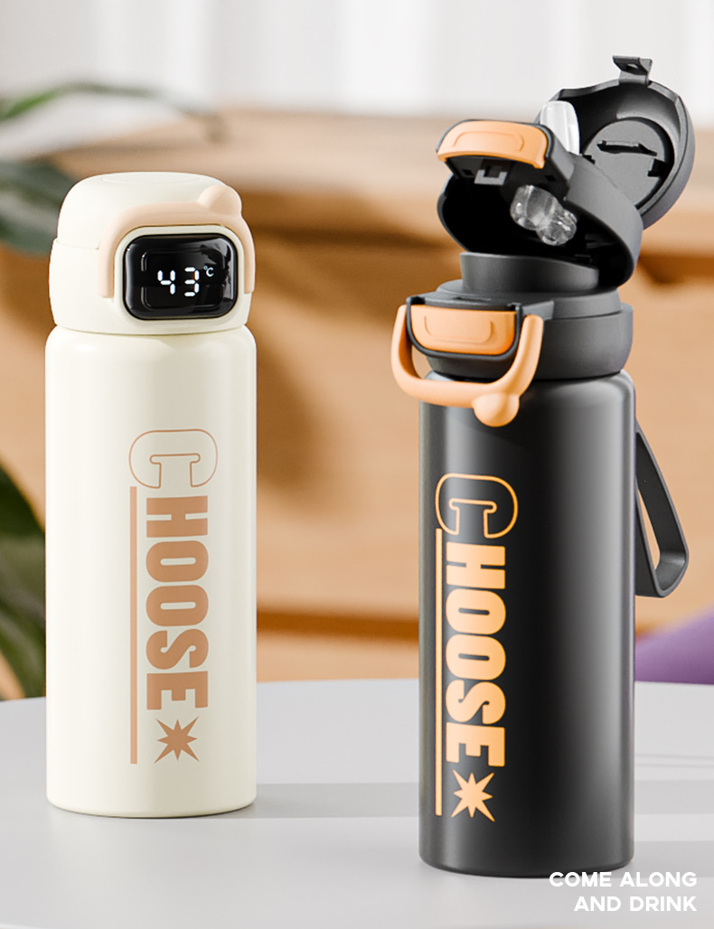Vaso de rebote de doble bebida de letras simples 316 termo con pantalla digital de acero inoxidable Taza de agua para estudiantes Taza portátil al por mayor