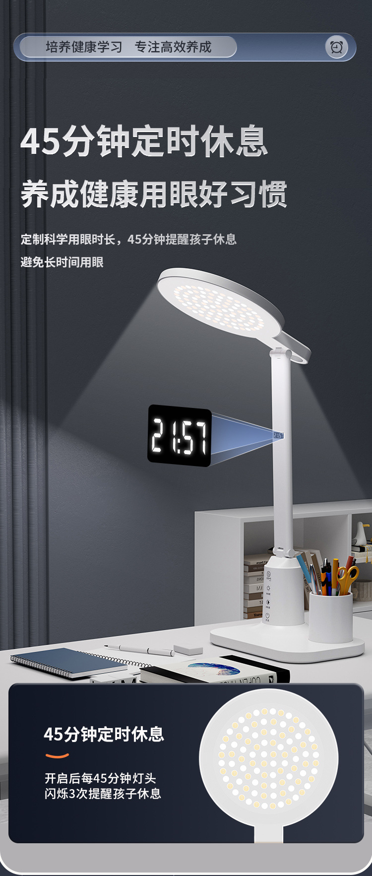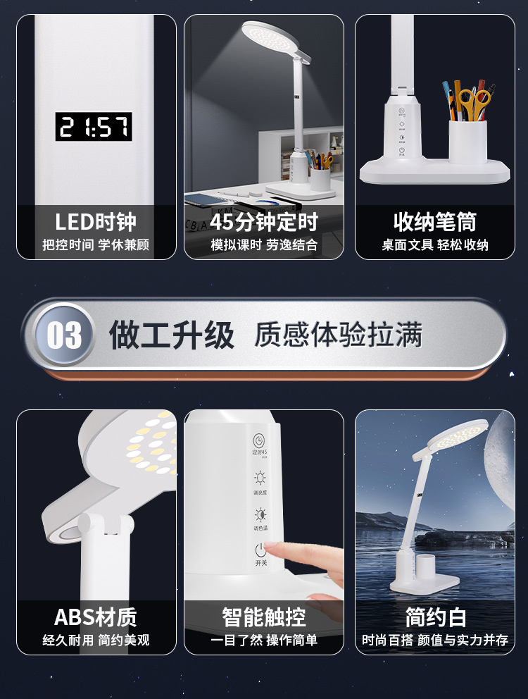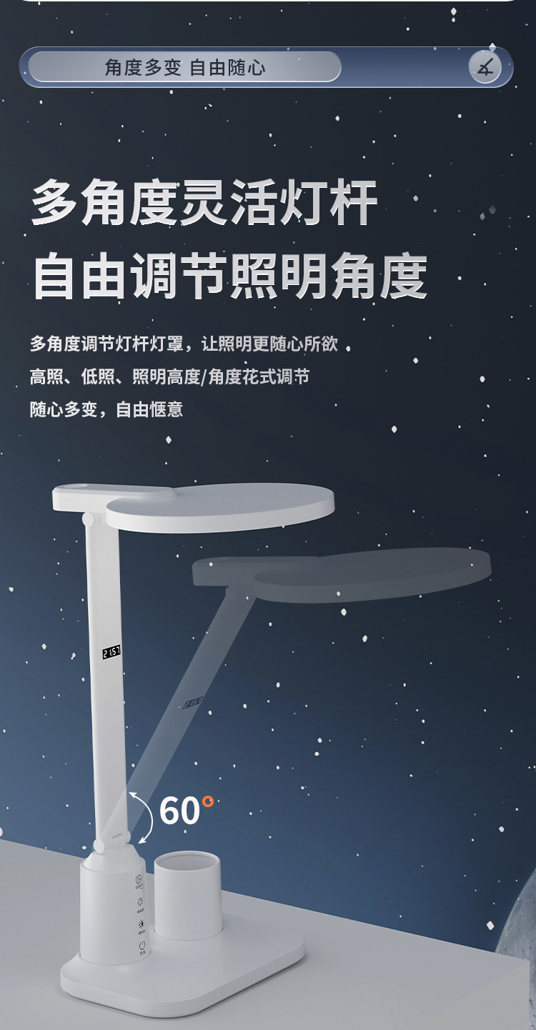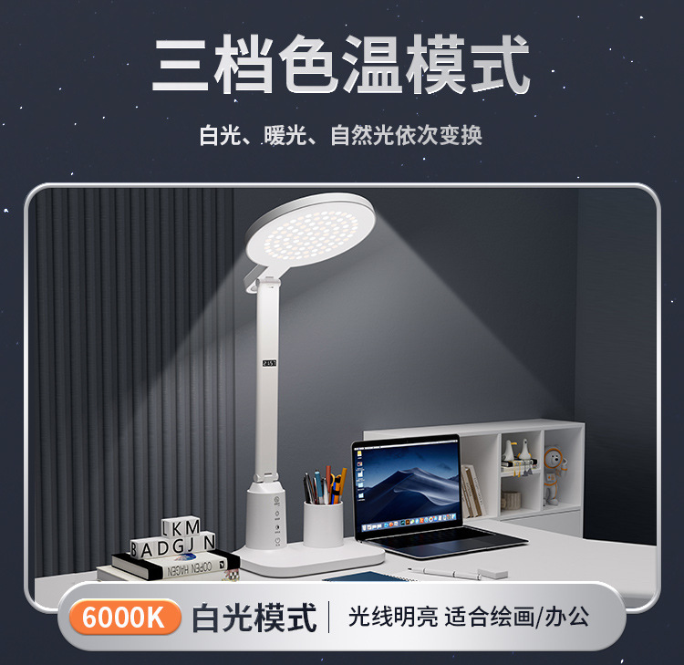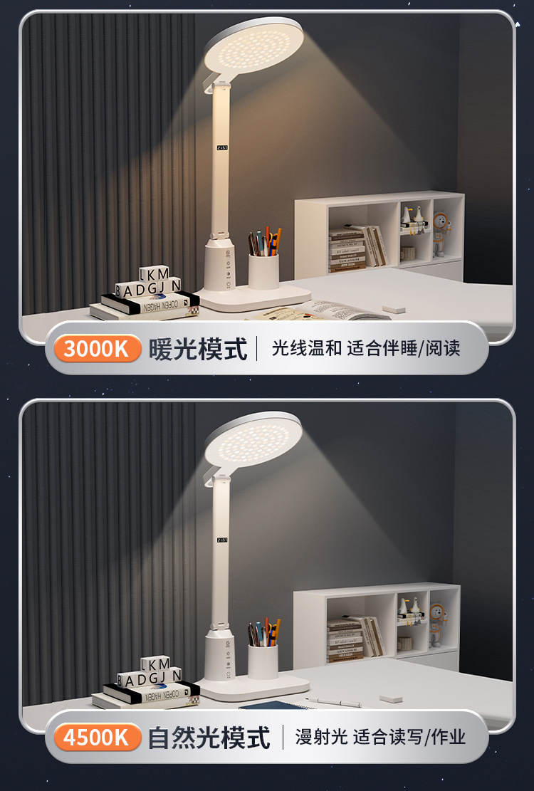 lámpara de escritorio de protección de ojos LED inteligente pantalla digital aprendizaje alumno especial lámpara de cabezal de cama dormitorio recargable lámpara de lectura de cabezal de cama