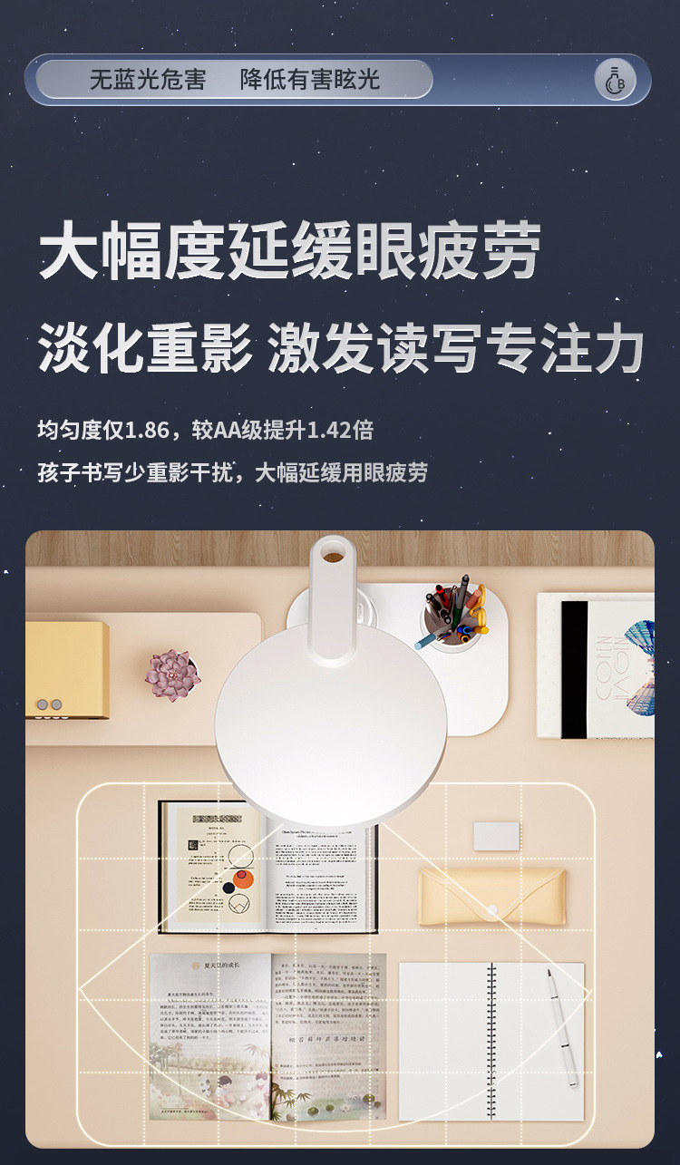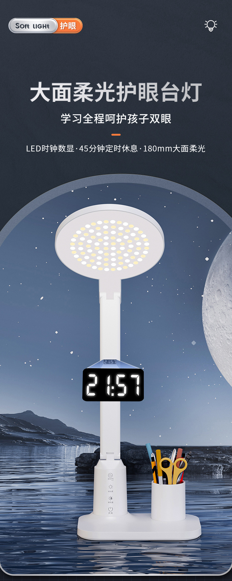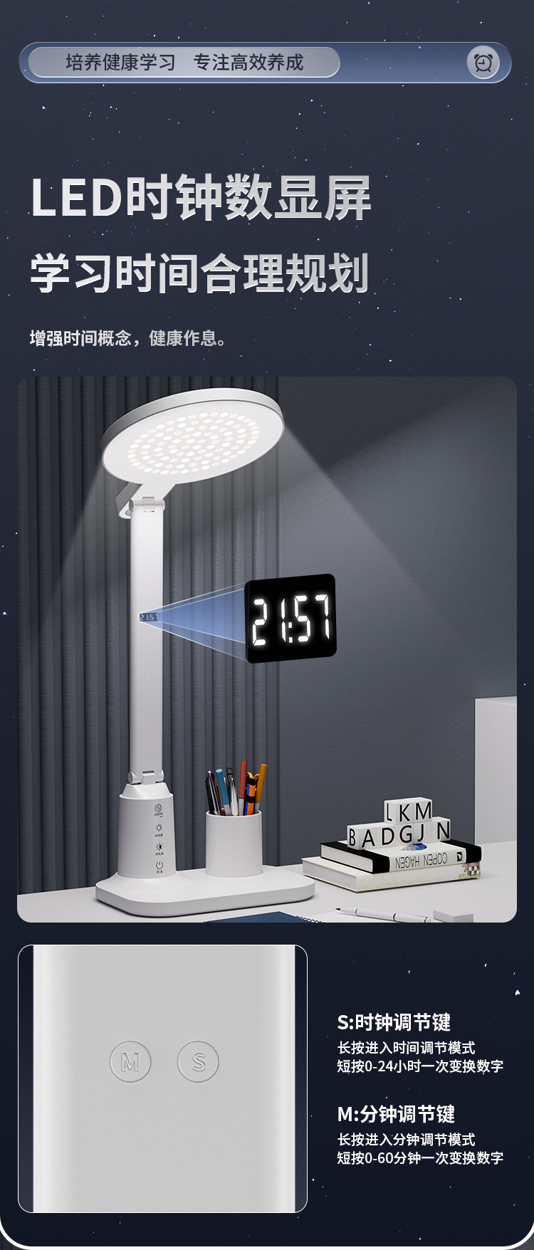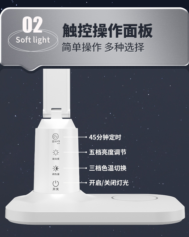 lámpara de escritorio de protección de ojos LED inteligente pantalla digital aprendizaje alumno especial lámpara de cabezal de cama dormitorio recargable lámpara de lectura de cabezal de cama