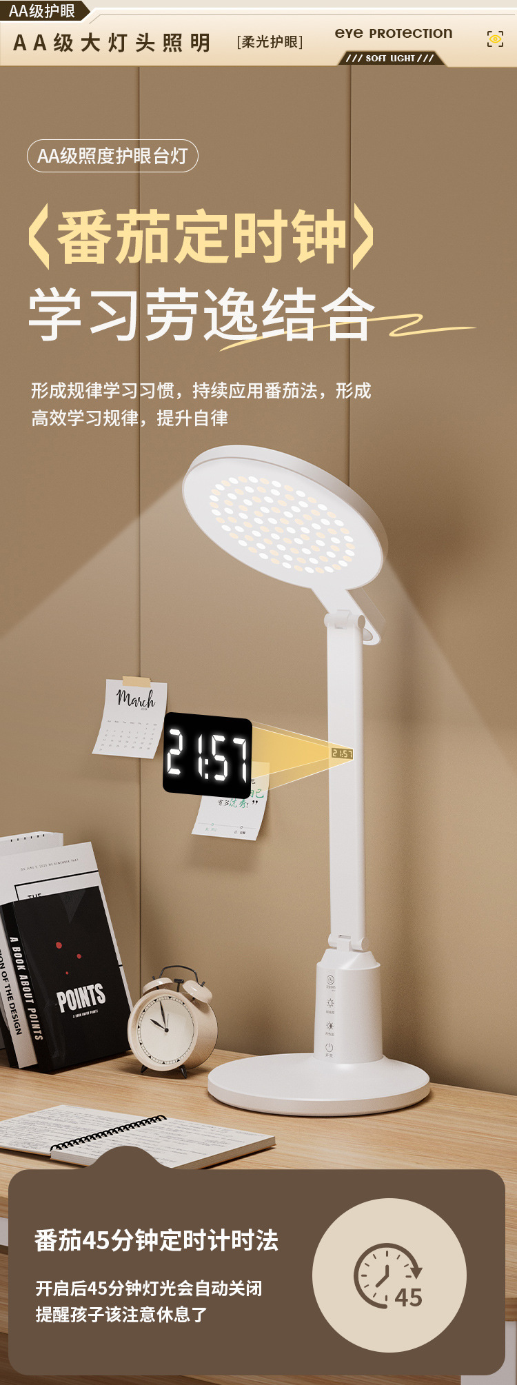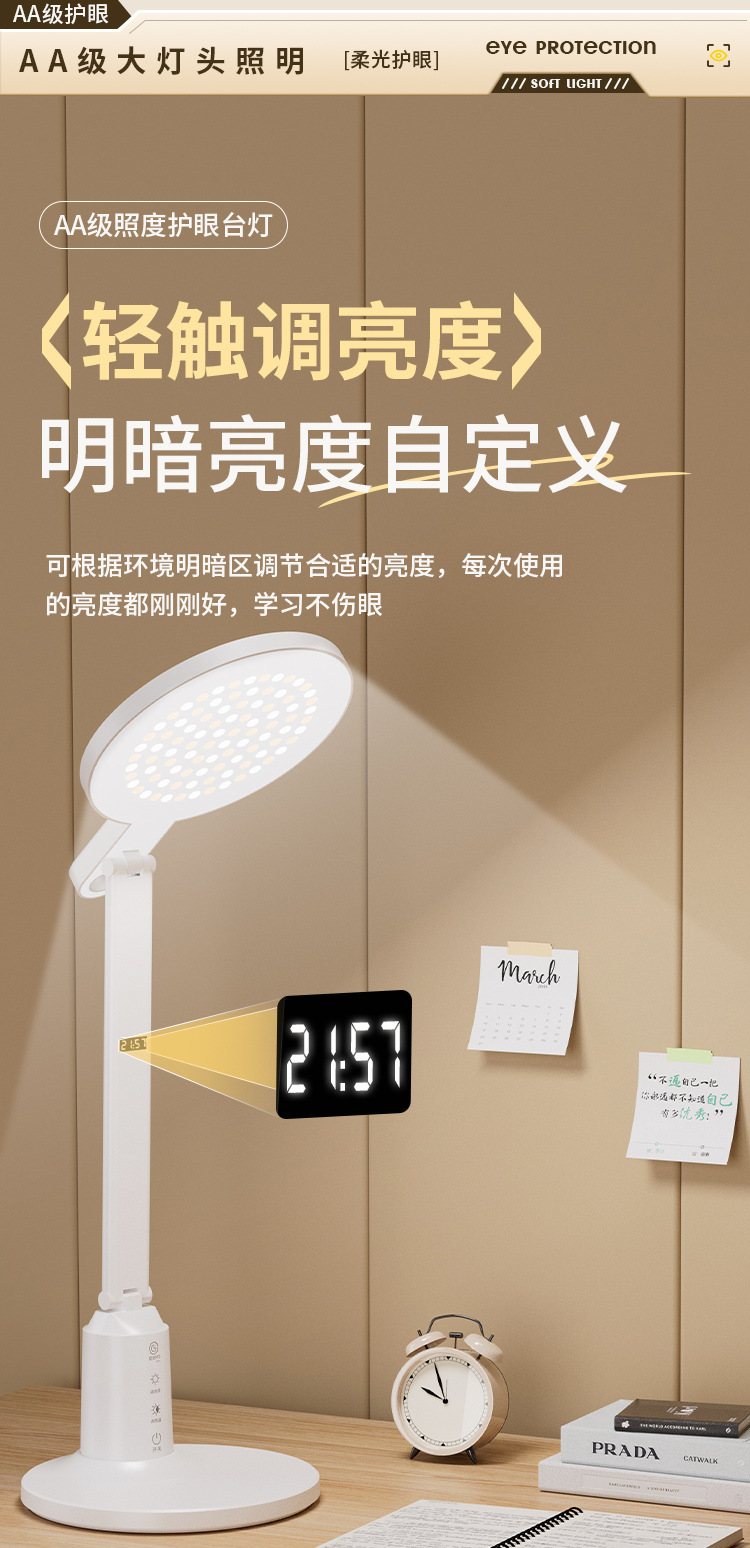 lámpara de escritorio de protección de ojos LED inteligente pantalla digital aprendizaje alumno especial lámpara de cabezal de cama dormitorio recargable cabezal de cama dormitorio lámpara de lectura