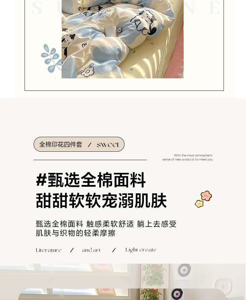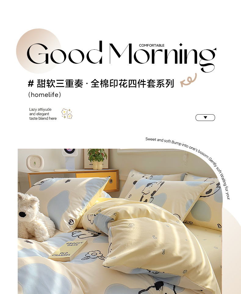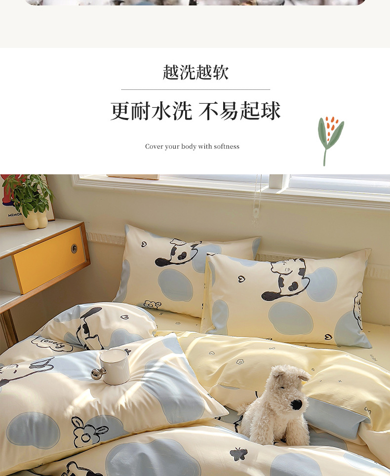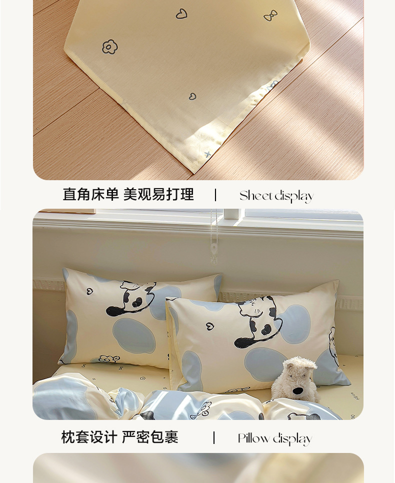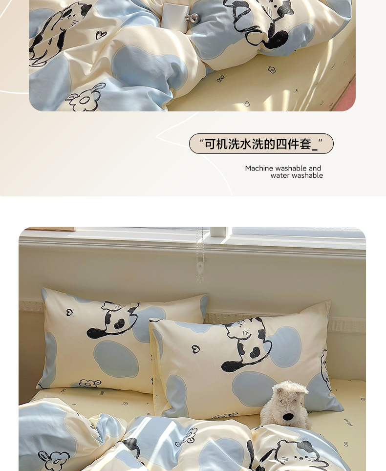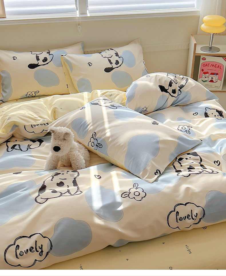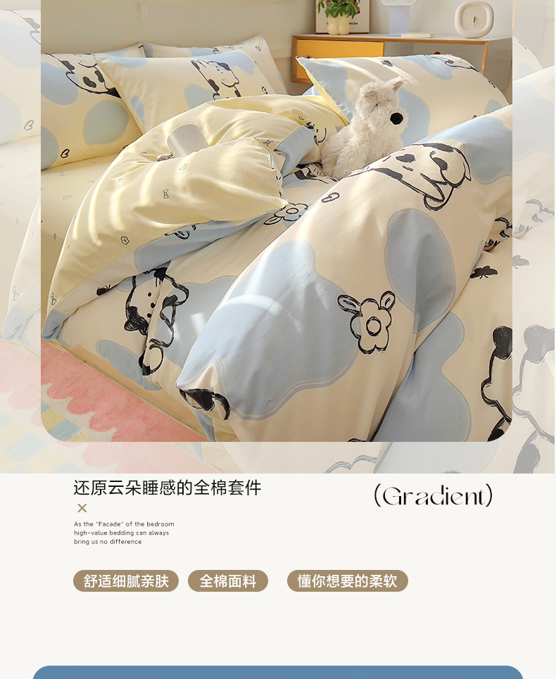 Sábanas de cama cubiertas de cama clase A, algodón fresco, caricatura madre y bebé, algodón puro lindo, pequeño no estático, cuatro piezas