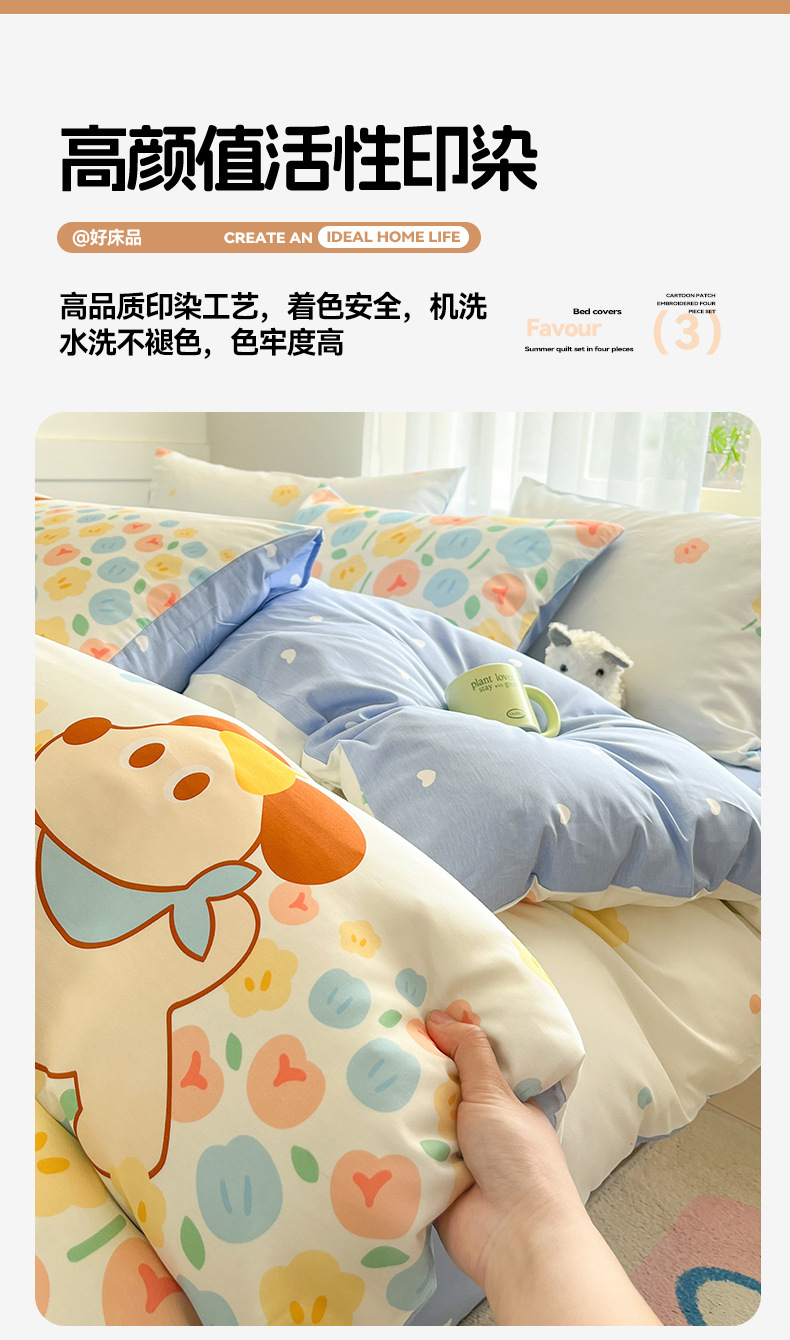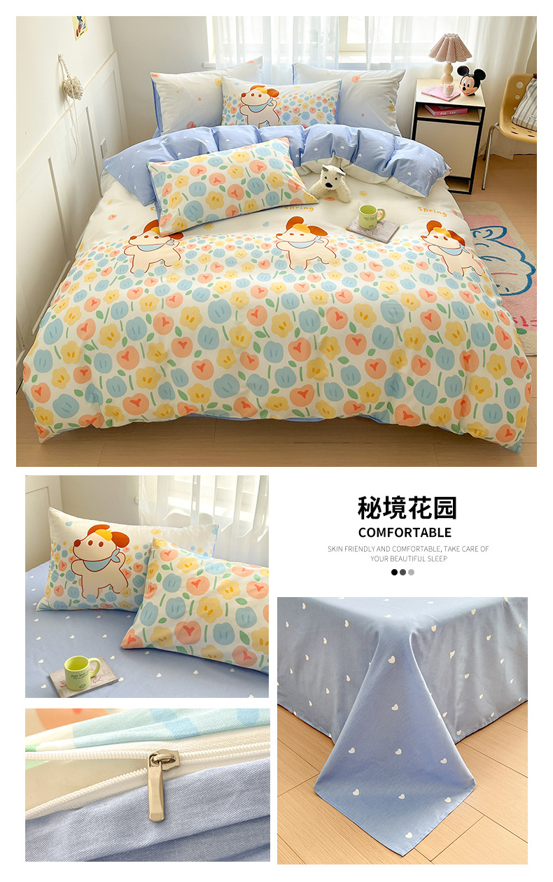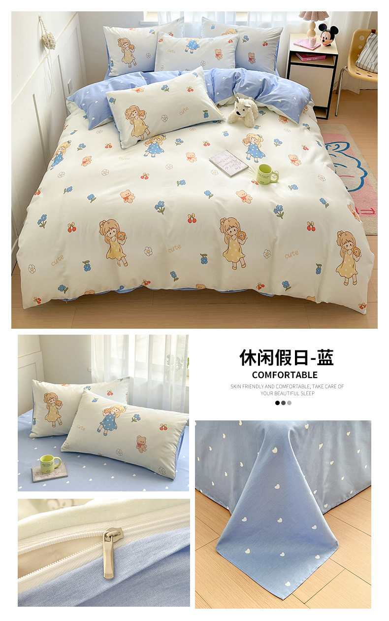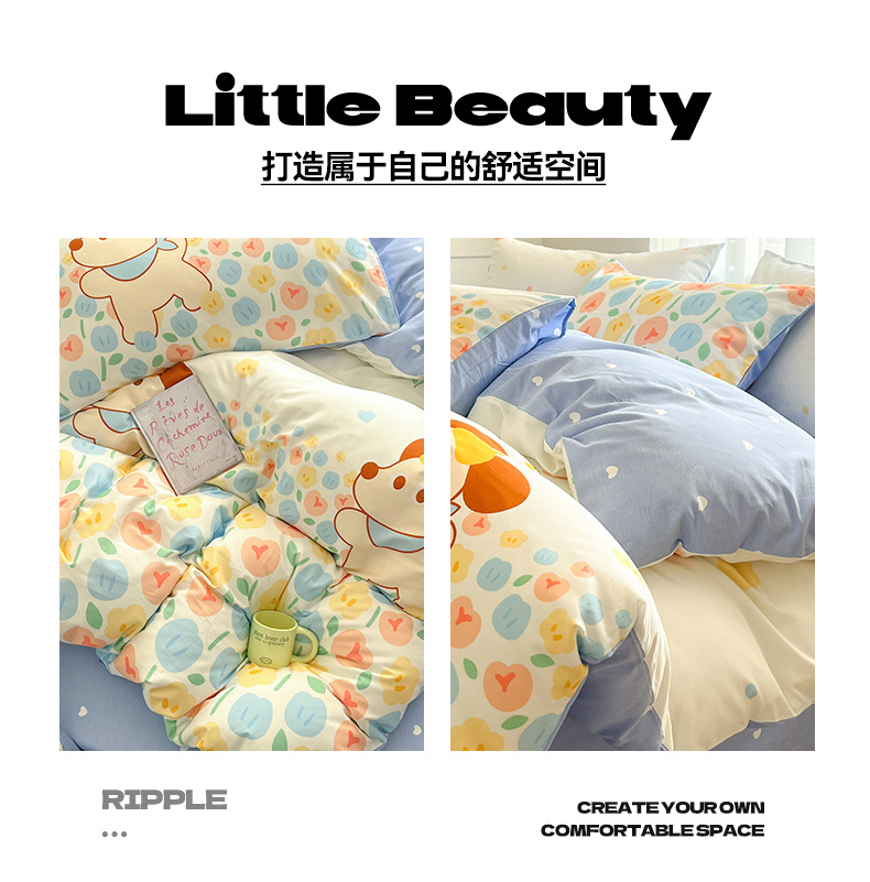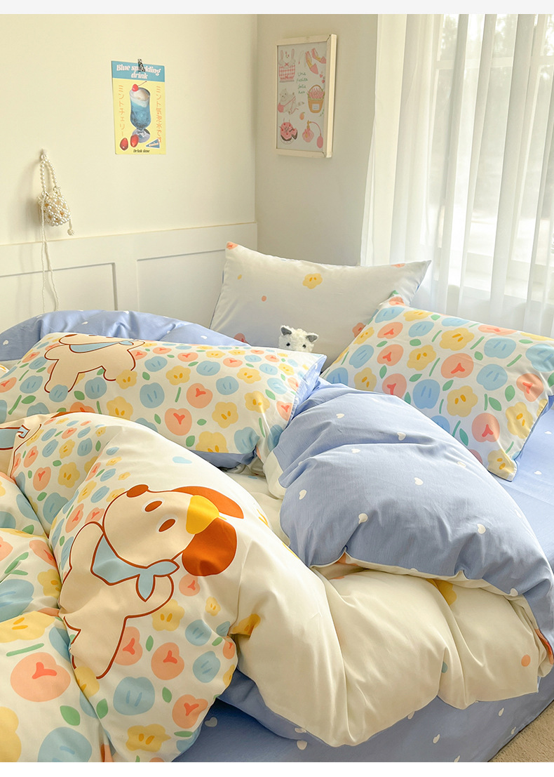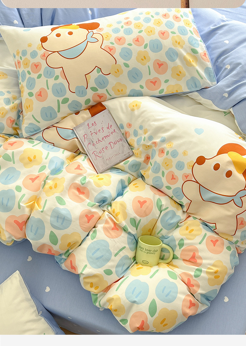 Algodón fresco no estático cuatro piezas de alta densidad ins viento dormitorio de estudiantes de dibujos animados cubierta de colcha de algodón A alto soporte de tres piezas