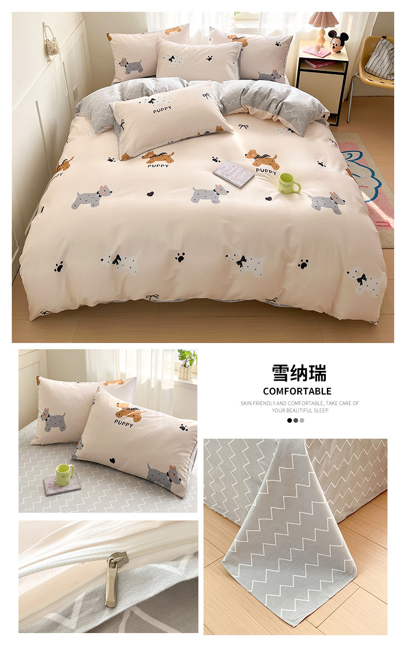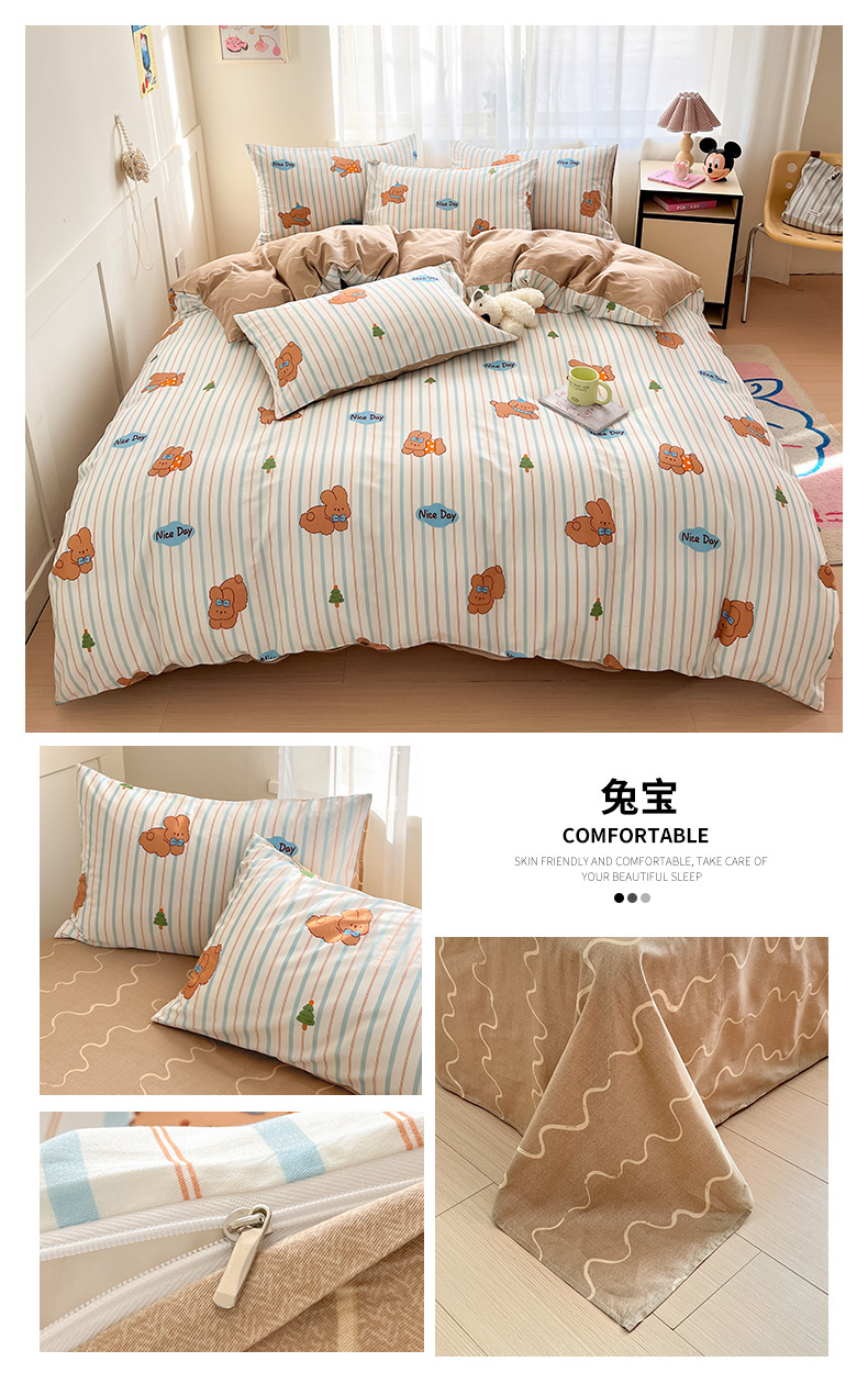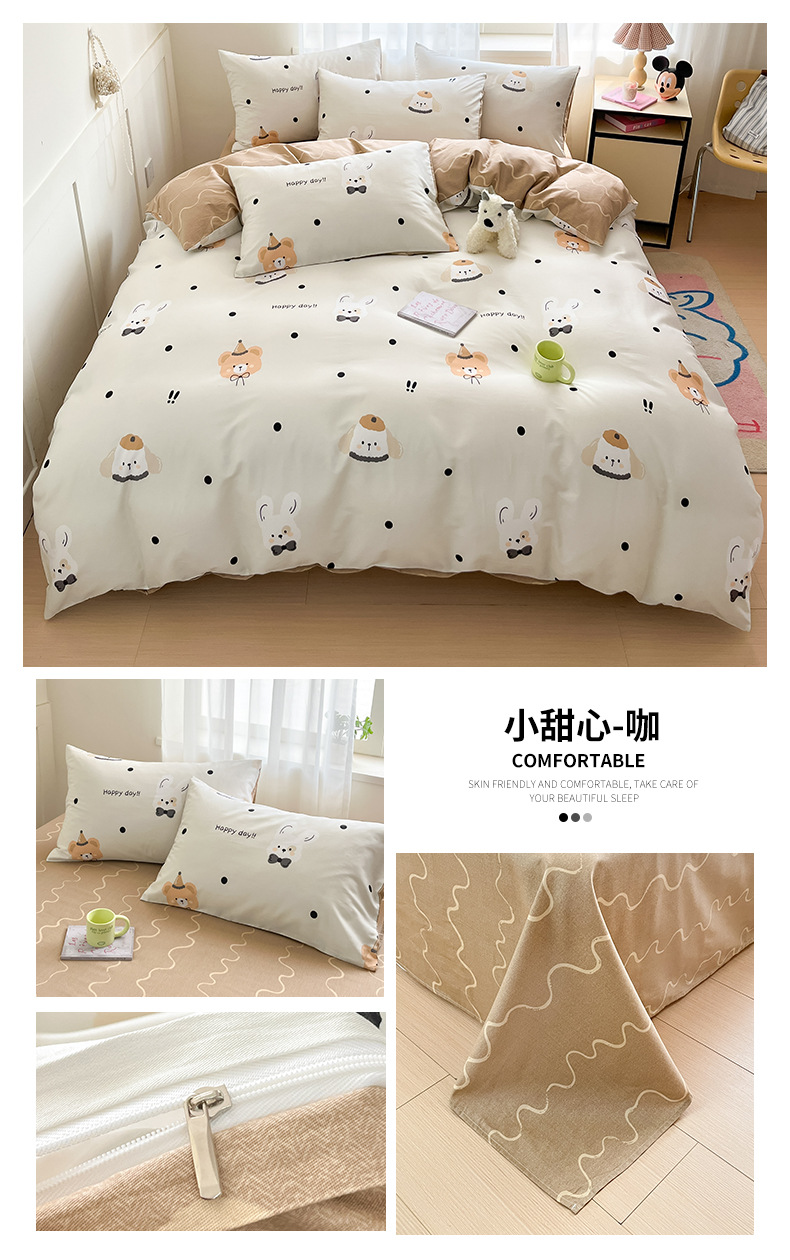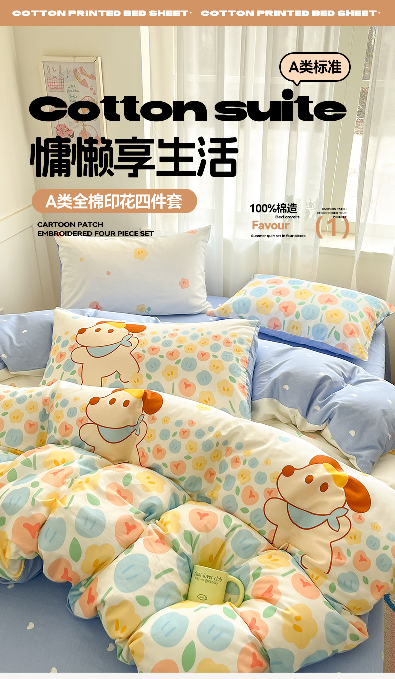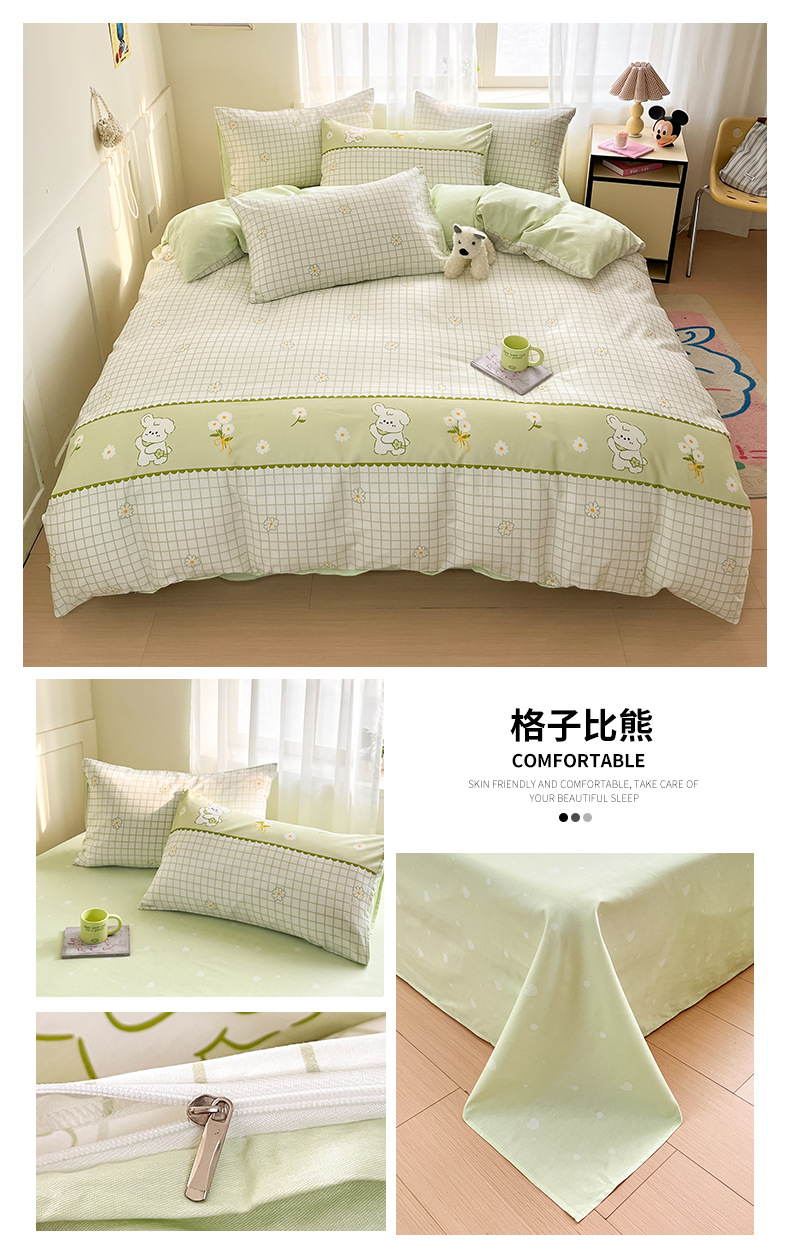 Algodón fresco no estático cuatro piezas de alta densidad ins viento dormitorio de estudiantes de dibujos animados cubierta de colcha de algodón A alto soporte de tres piezas
