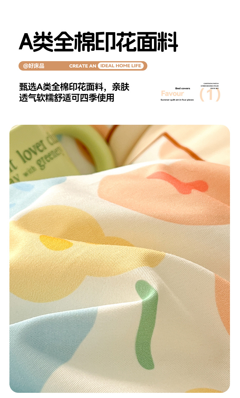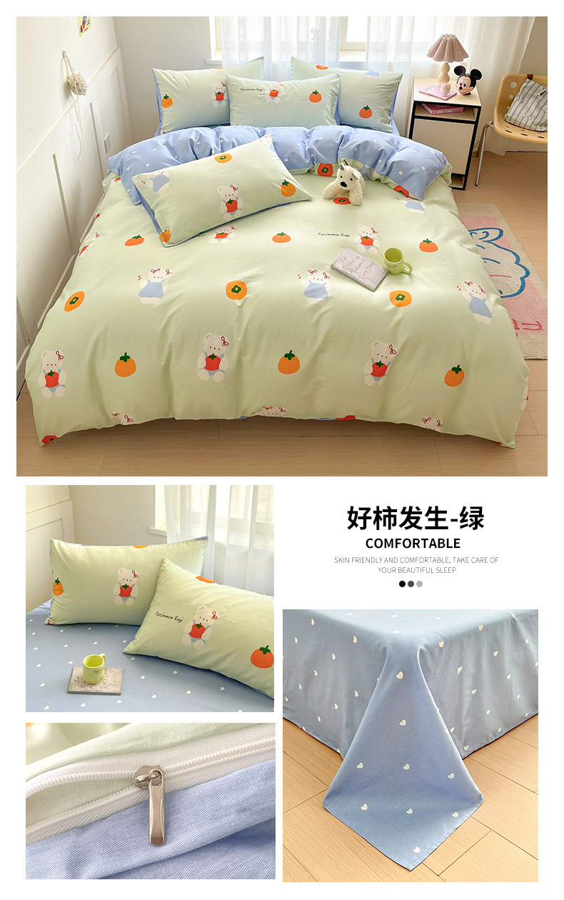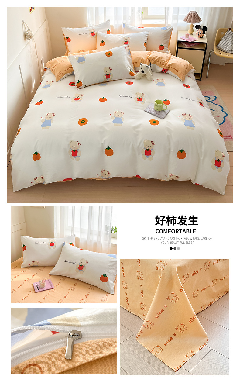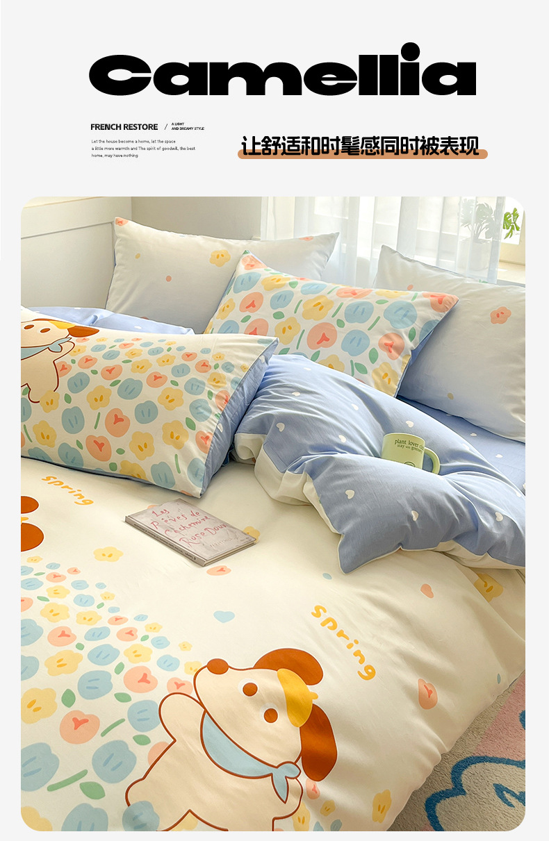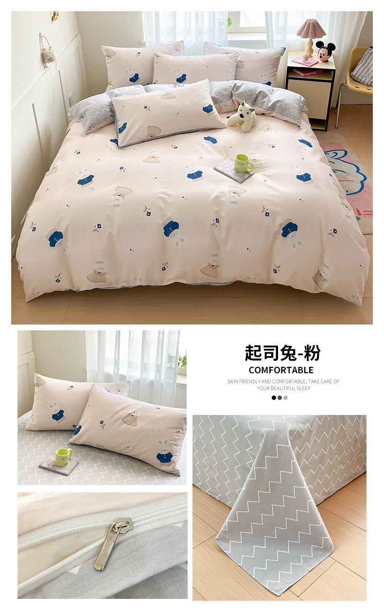 Algodón fresco no estático cuatro piezas de alta densidad ins viento dormitorio de estudiantes de dibujos animados cubierta de colcha de algodón A alto soporte de tres piezas