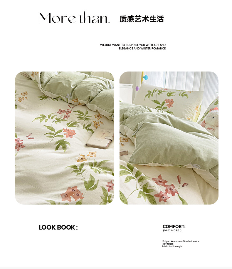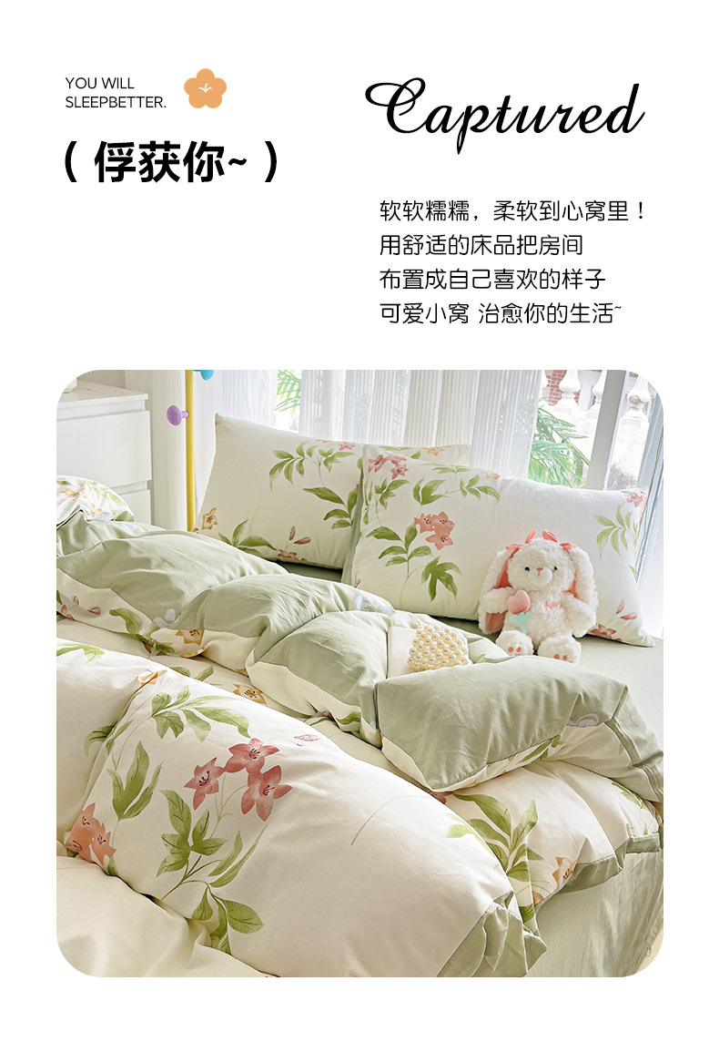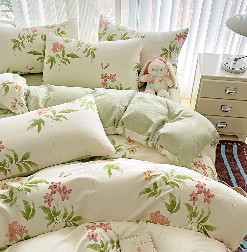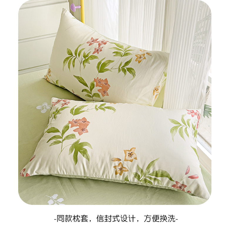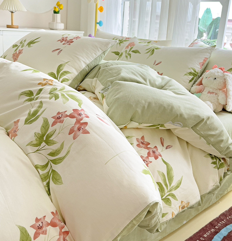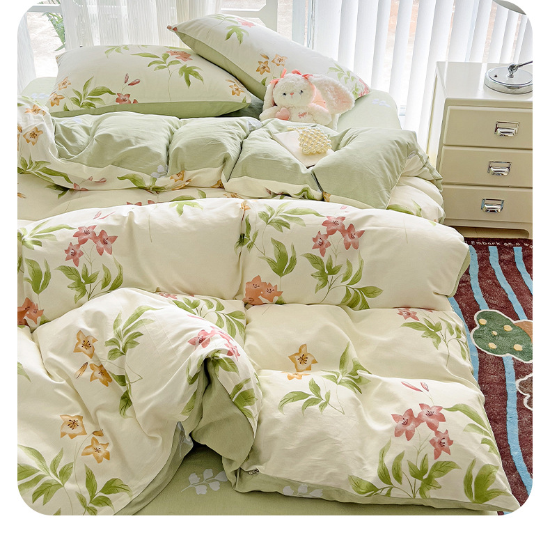 Personalizado en fábrica, sábanas de algodón de algodón de clase A, juego de cuatro piezas, cama de dormitorio de estudiantes floral, juego de tres piezas, funda de edredón, sábana