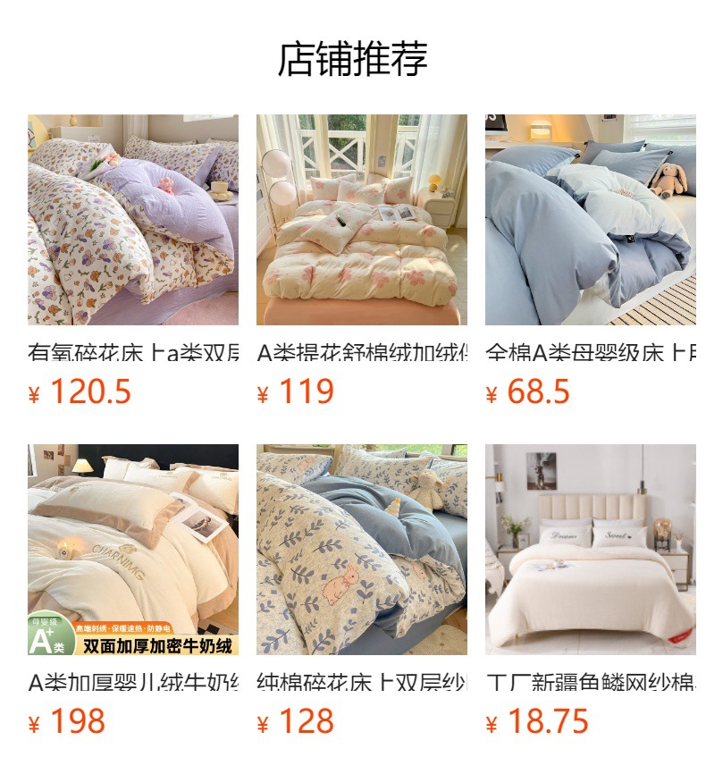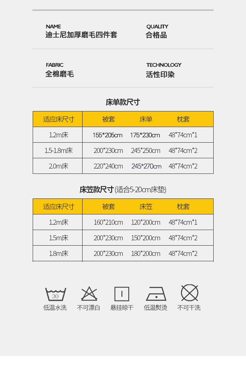 | Especificaciones de tamaño | Tres juegos de sábanas de 1,2 m (edredones 155 * 205 sábanas 175 * 230 fundas de almohada 48 * 74), cuatro juegos de sábanas de 1,5 m - 1,8 m (edredones 200 * 230 sábanas 245 * 250 fundas de almohada 48 * 74), cuatro juegos de sábanas de 2,0 M (edredones 220 * 240 sábanas 245 * 270 fundas de almohada 48 * 74), tres juegos de edredones de 1,2 m (edredones 160 * 210 edredones 120 * 200 fundas de almohada 48 * 74), cuatro juegos de edredones de cama de 1,5 m (edredones 200 * 230 edredones 150 * 200 fundas de almohada 48 * 74), 1,8 m juego de cuatro piezas (juego de edredones 200 * 230 edredones 180 * 200 fundas de almohada 48 * 74) |
