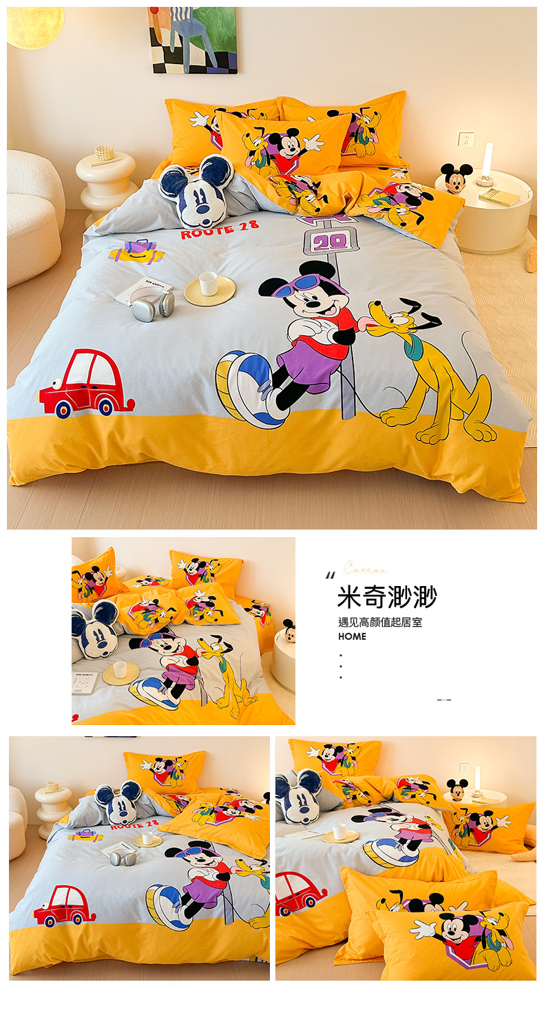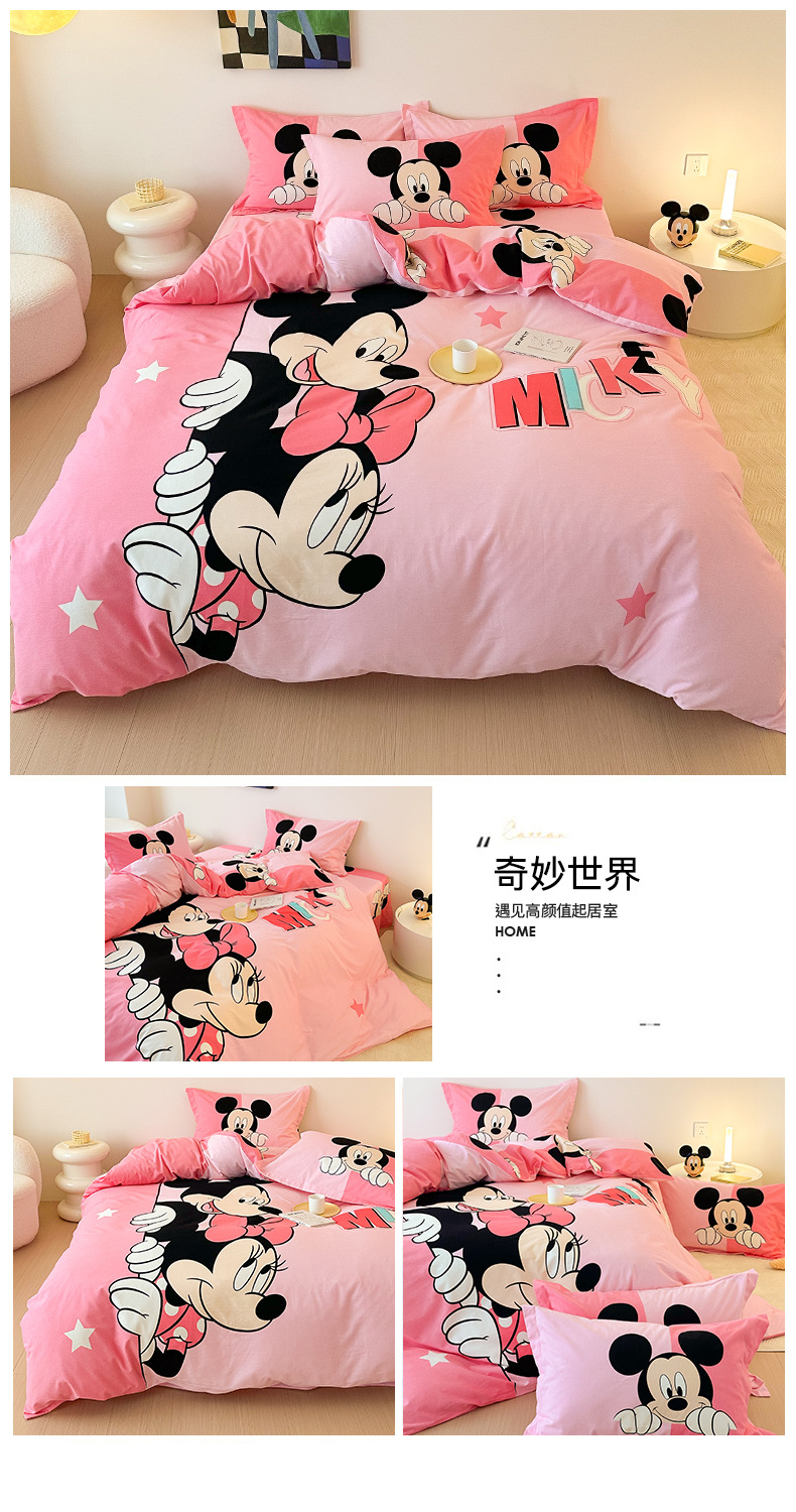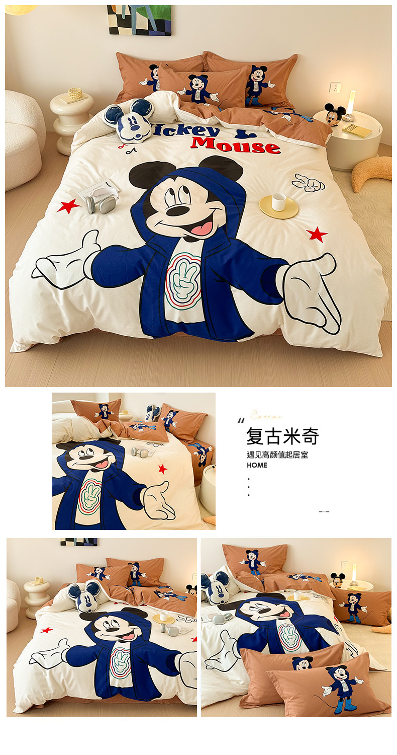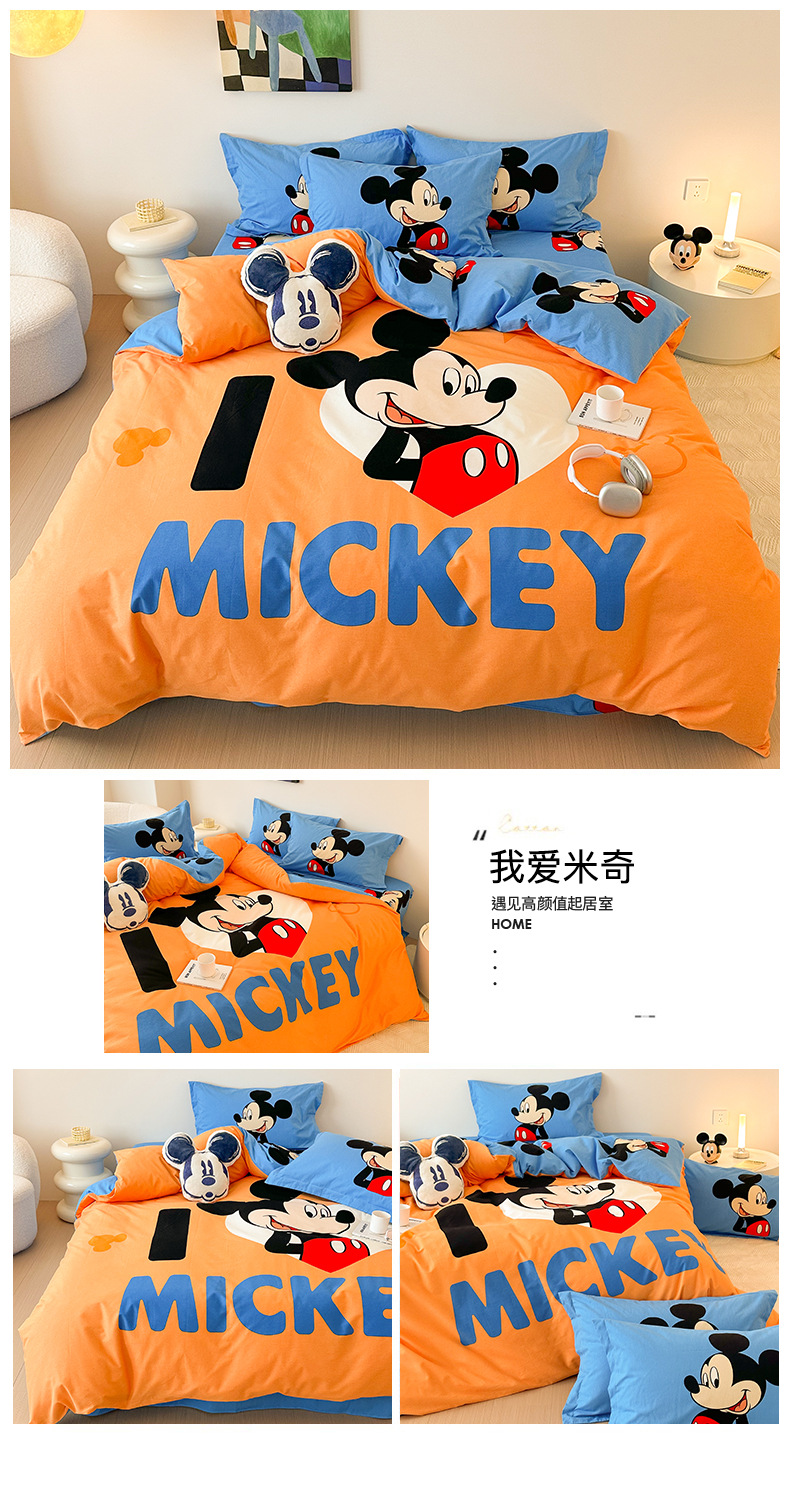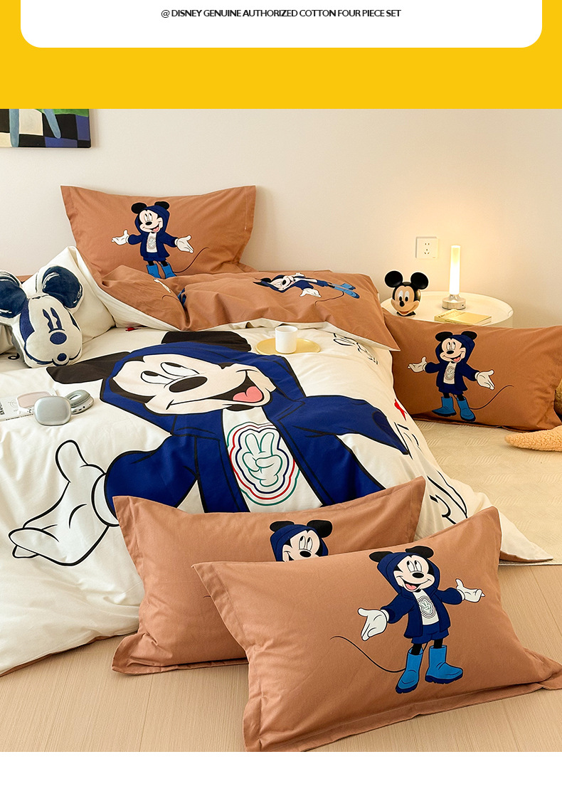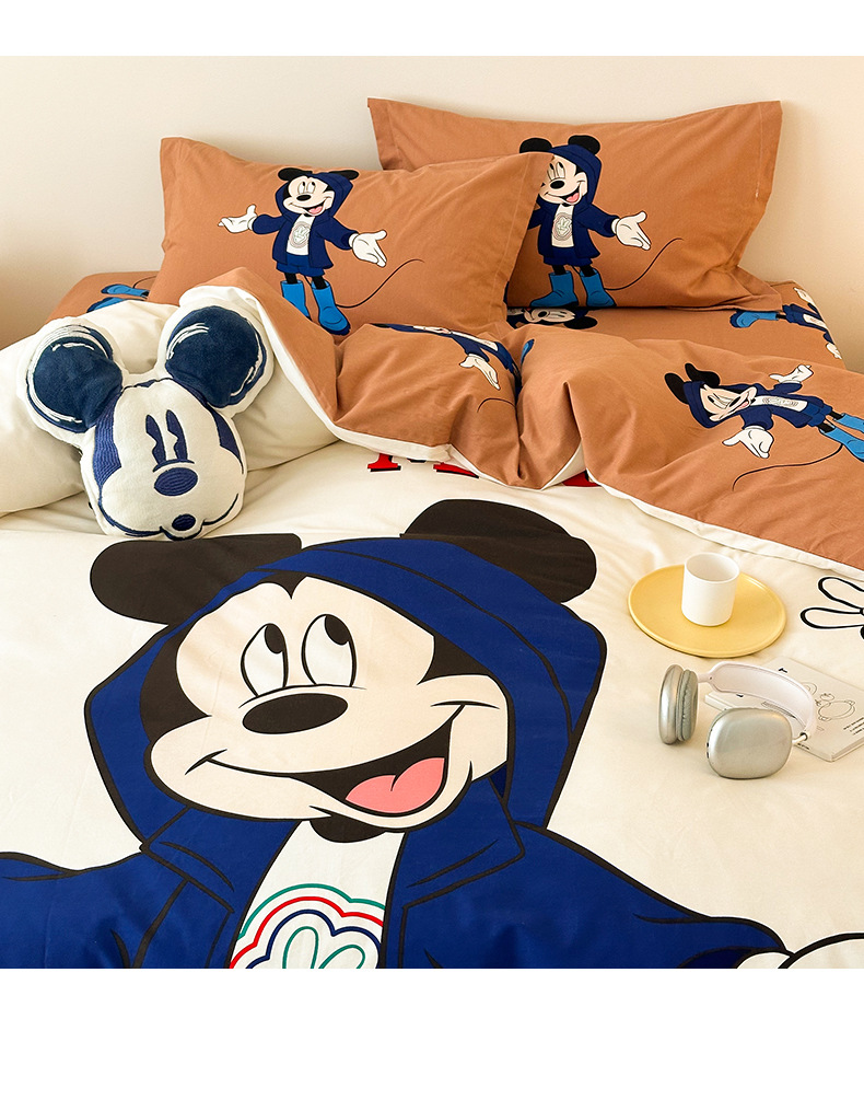 Todo el algodón grueso molienda Mickey otoño invierno impresión de cuatro piezas de dibujos animados para niños sábanas de algodón cubierta de tres piezas