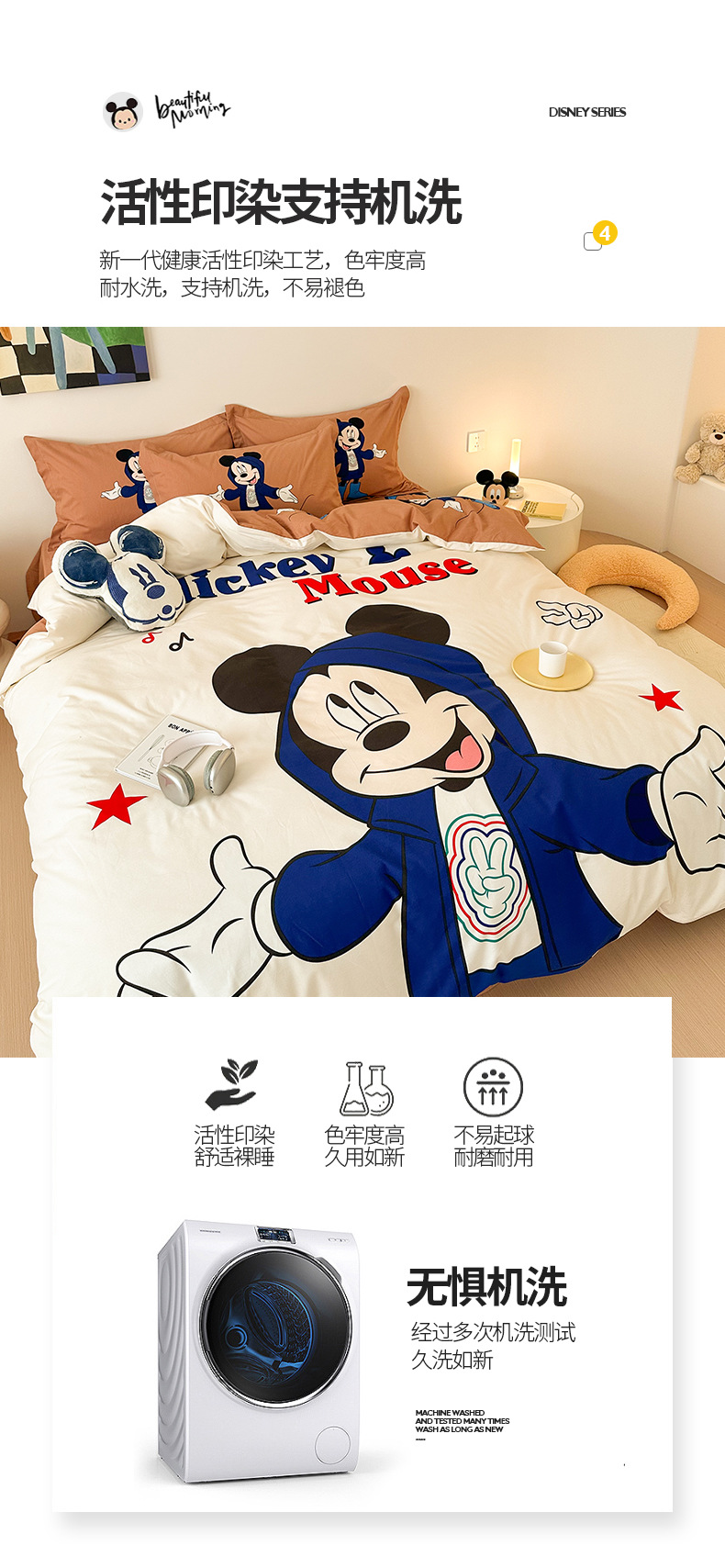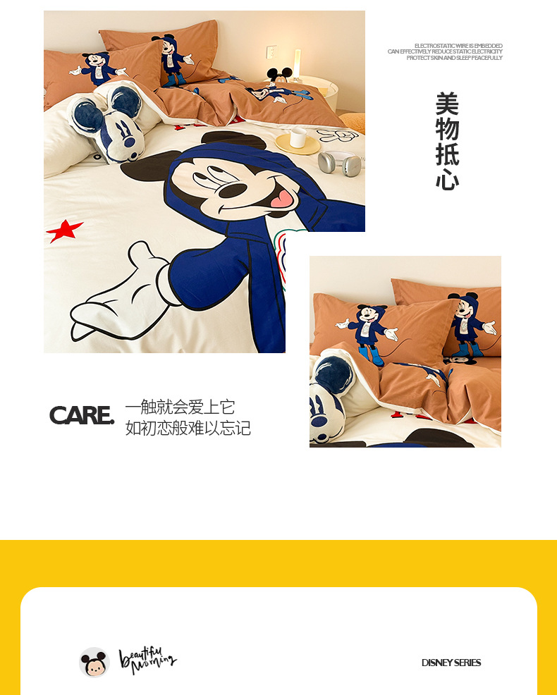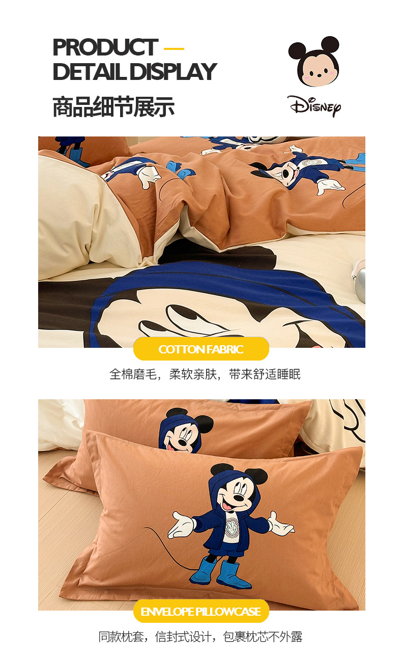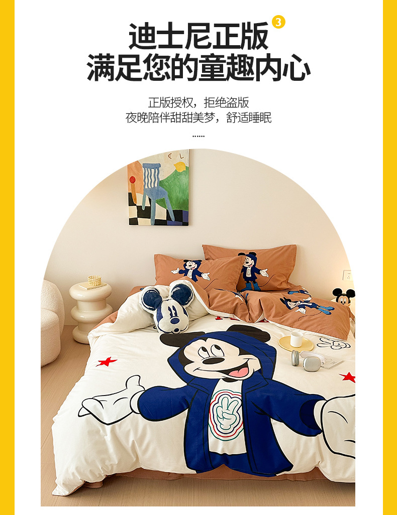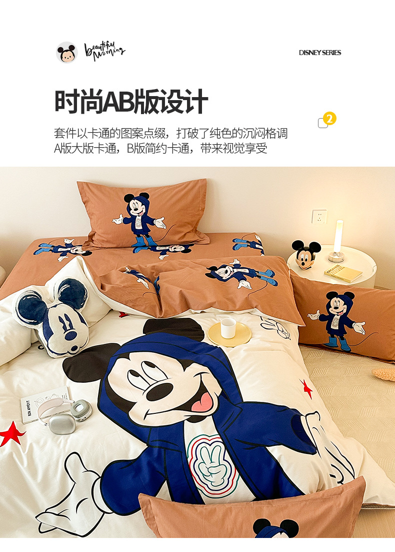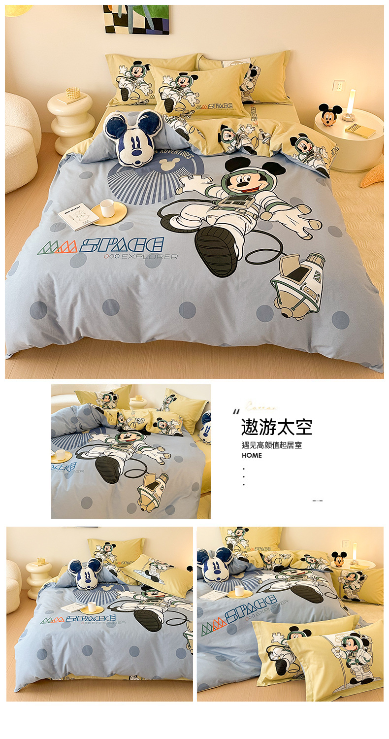 Todo el algodón grueso molienda Mickey otoño invierno impresión de cuatro piezas de dibujos animados para niños sábanas de algodón cubierta de tres piezas