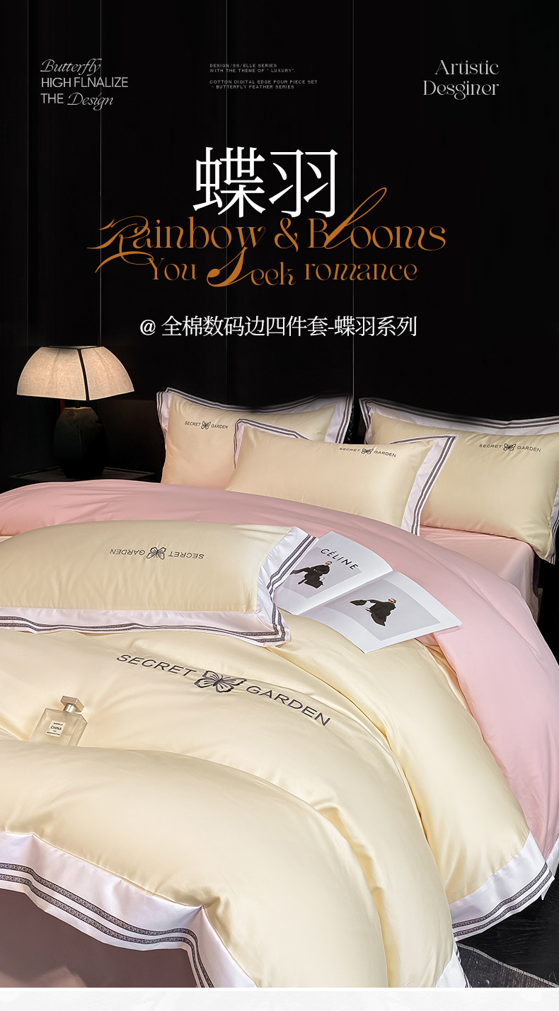 Simple ligero de lujo algodón puro cuatro piezas de sábanas de algodón ropa de cama textil doméstico cuatro estaciones tres piezas de conjunto general