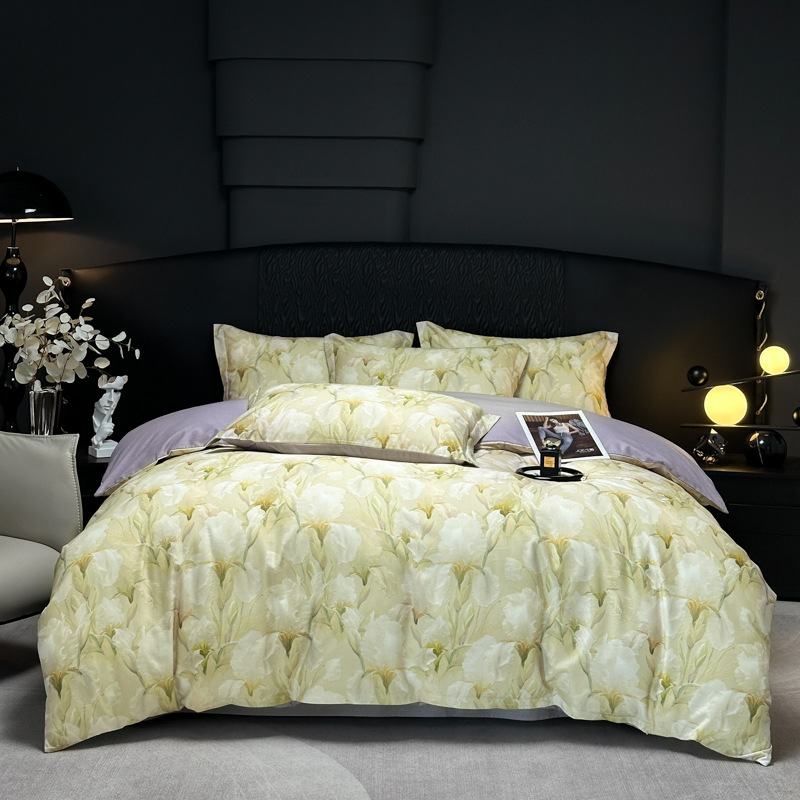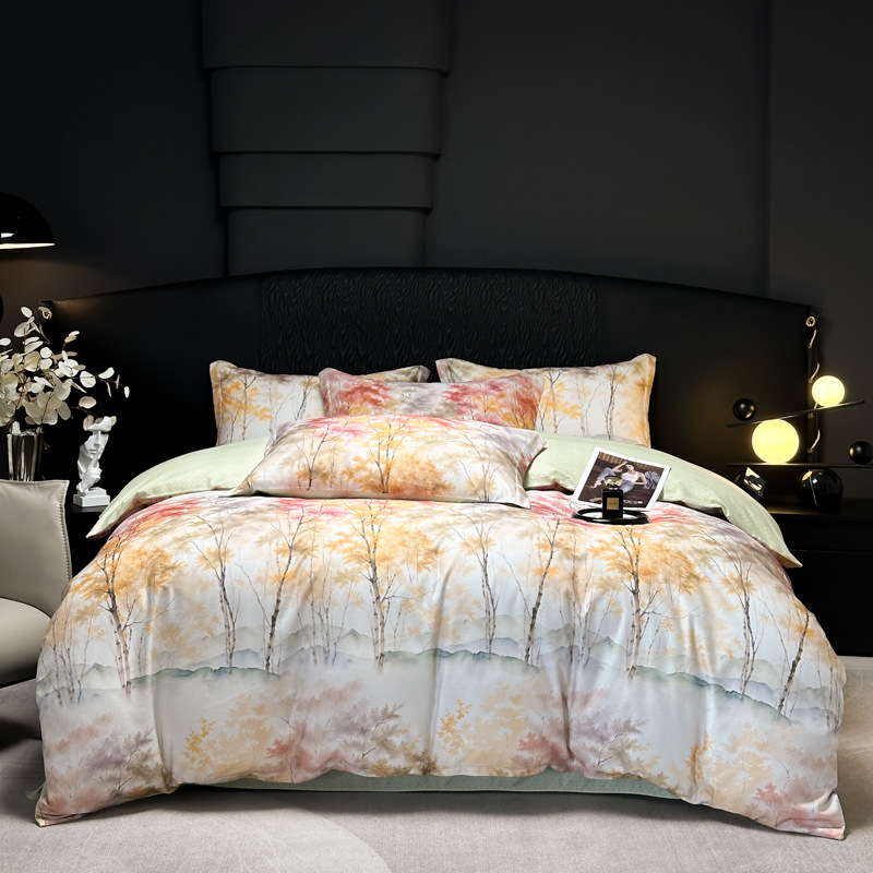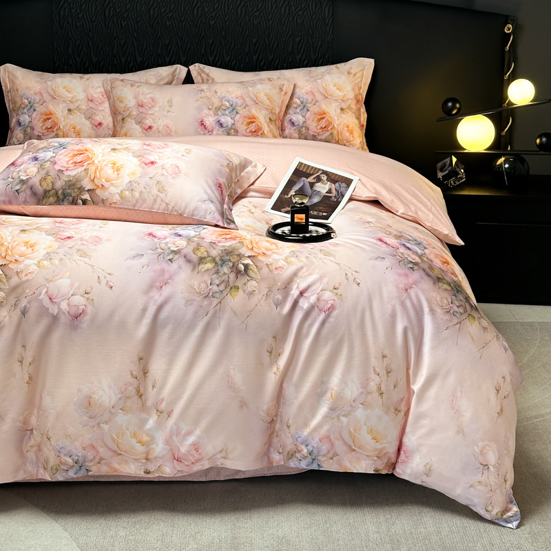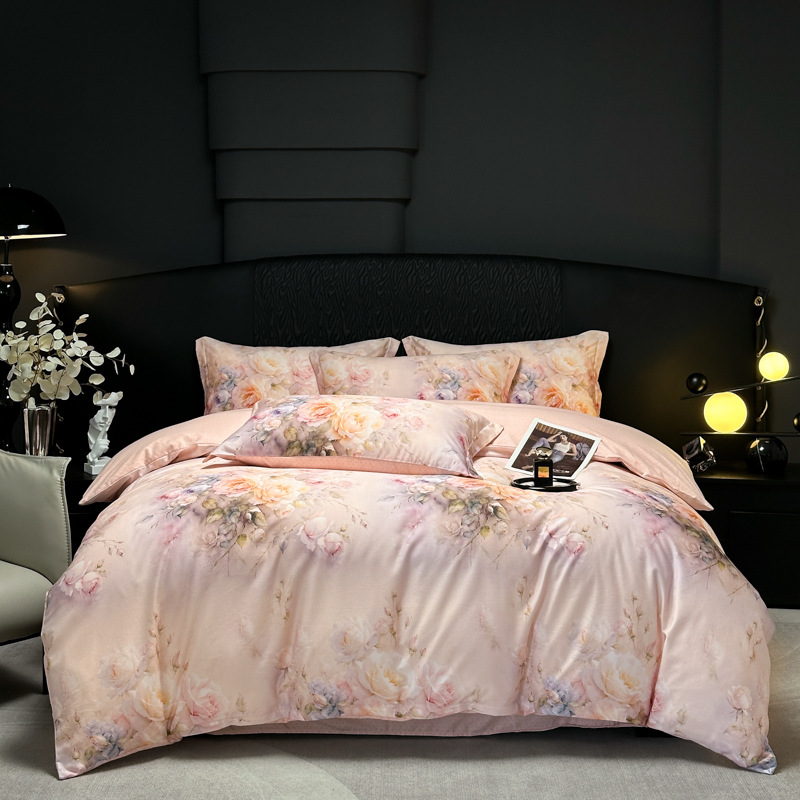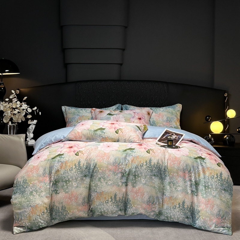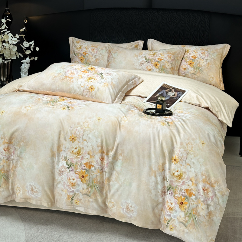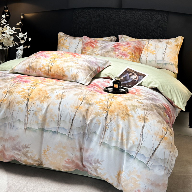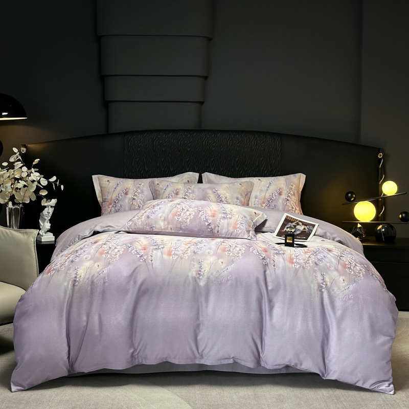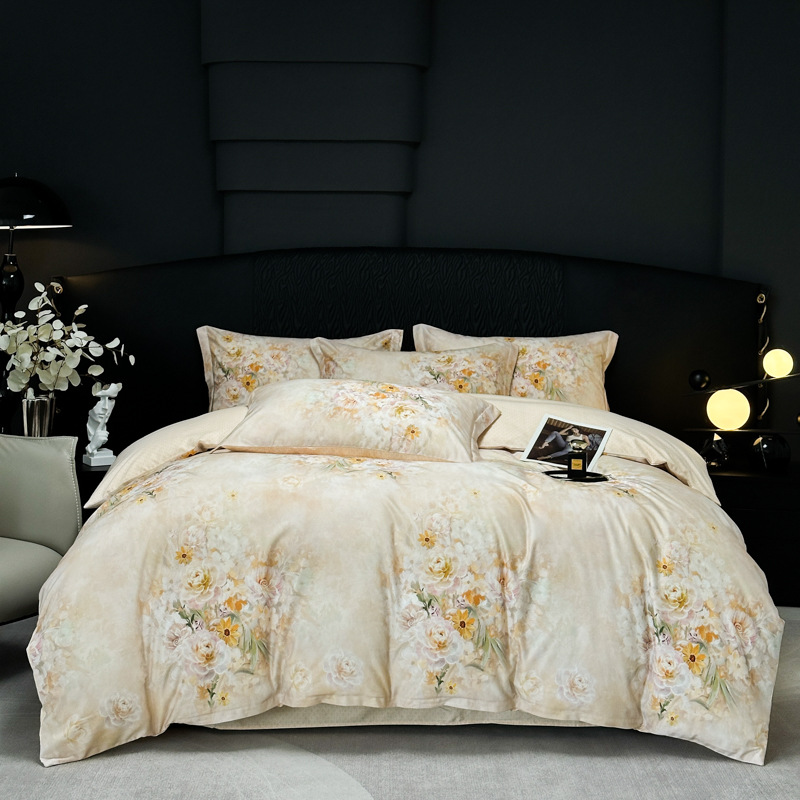 Funda de edredón de algodón, sábanas, ropa de cama, juego de cuatro piezas para textiles para el hogar, juego de cuatro piezas de lujo ligero cepillado de cuatro estaciones