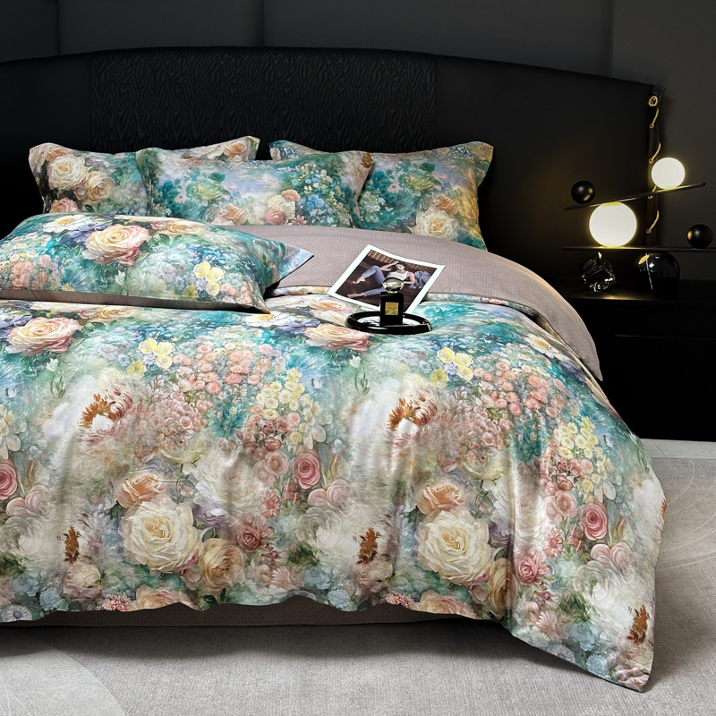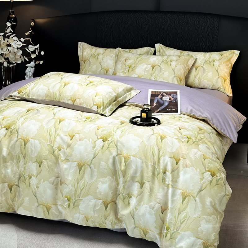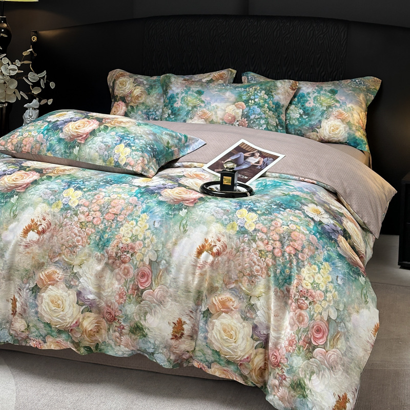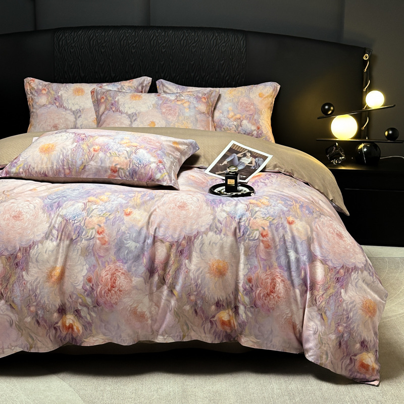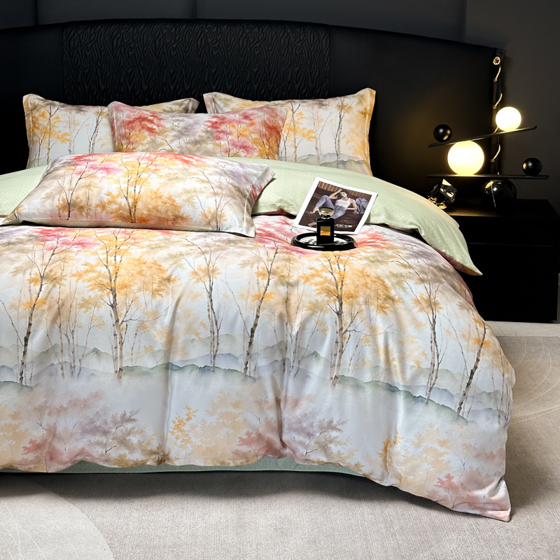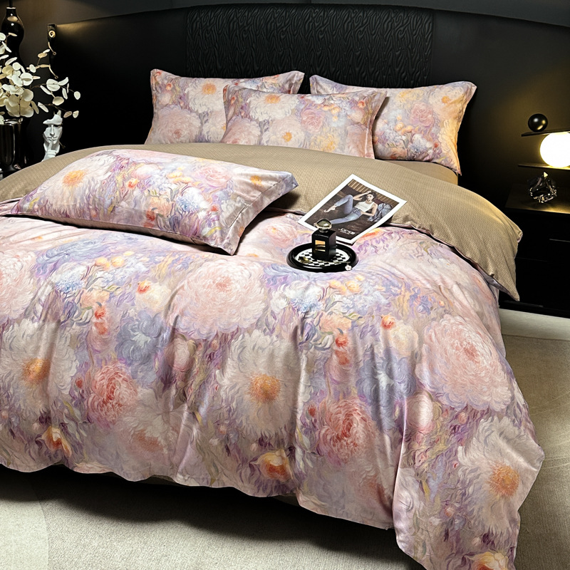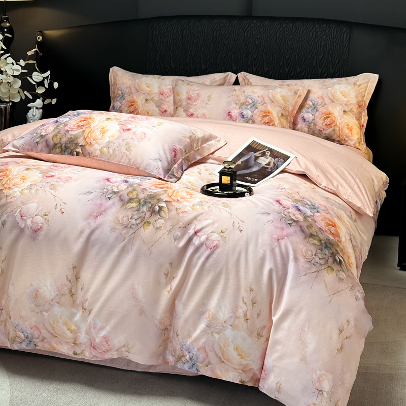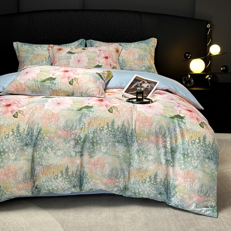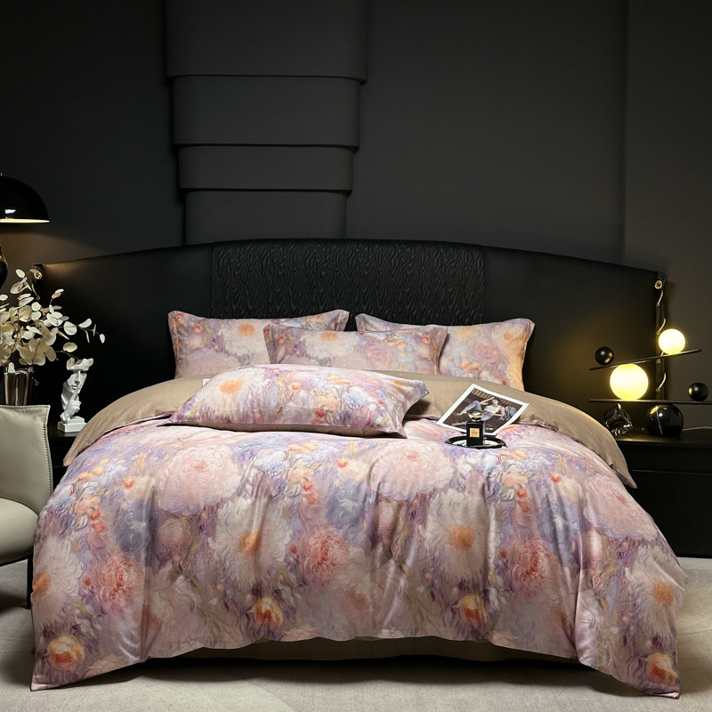 Funda de edredón de algodón, sábanas, ropa de cama, juego de cuatro piezas para textiles para el hogar, juego de cuatro piezas de lujo ligero cepillado de cuatro estaciones