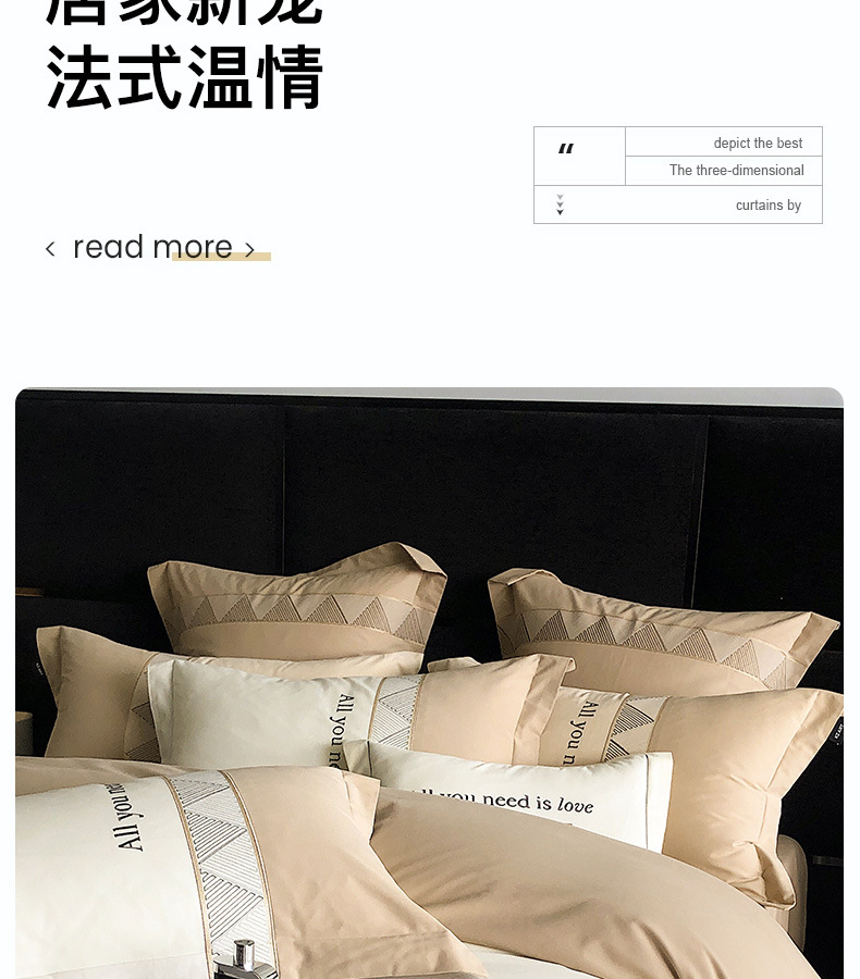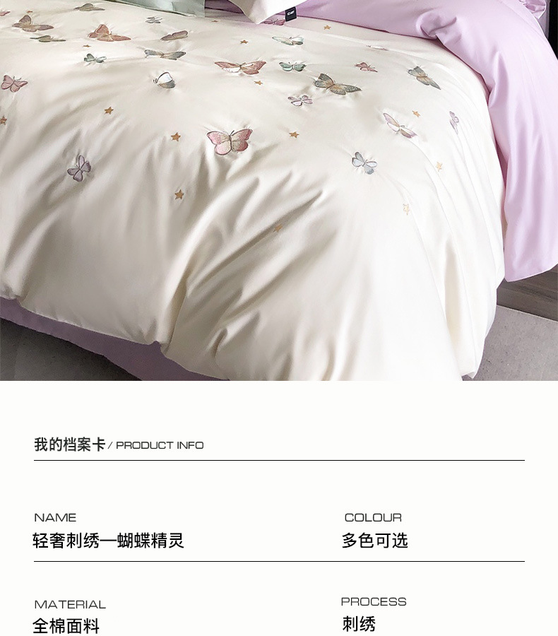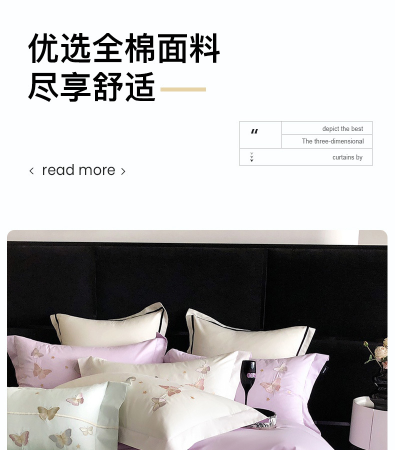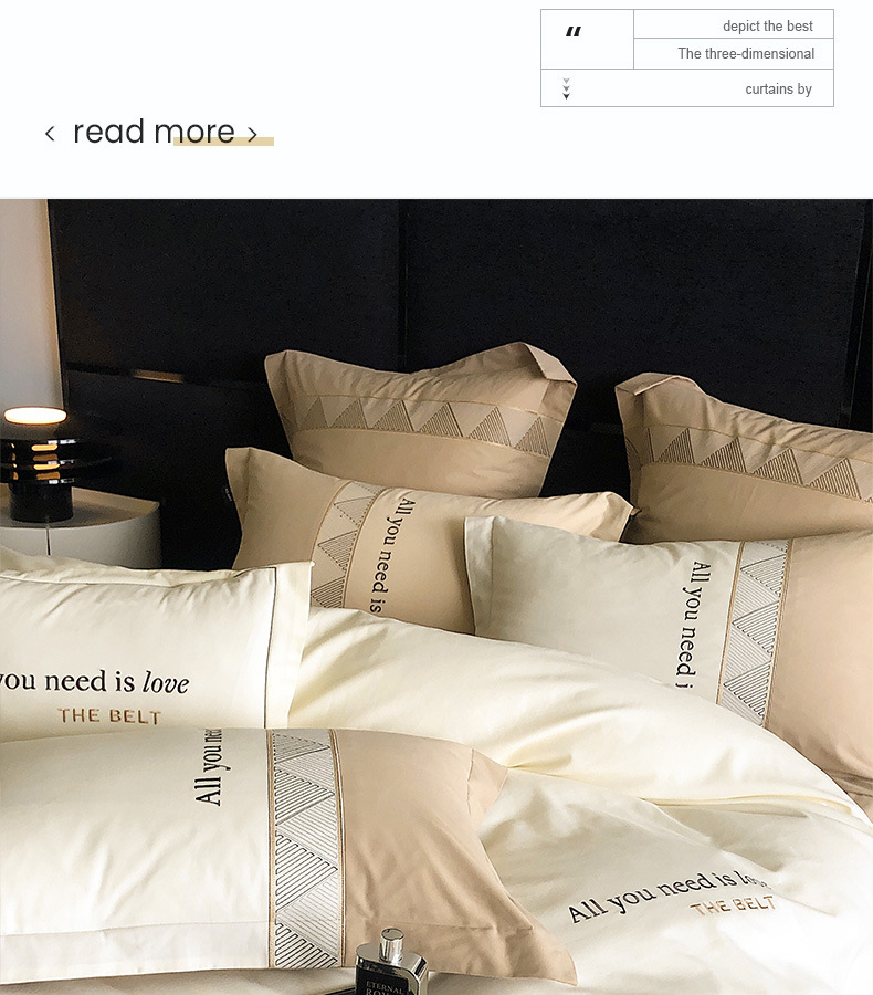 | Especificaciones de tamaño | Juegos de cuatro piezas para sábanas de 1,5 metros (edredones 200 * 230 sábanas 230 * 250 fundas de almohada 48 * 74 * 2), juegos de cuatro piezas para sábanas de 1,8 metros (edredones 200 * 230 sábanas 230 * 245 fundas de almohada 48 * 74 * 2), juegos de cuatro piezas para sábanas de 2,0 metros (edredones 220 * 240 sábanas 245 * 250 fundas de almohada 48 * 74 * 2) |
