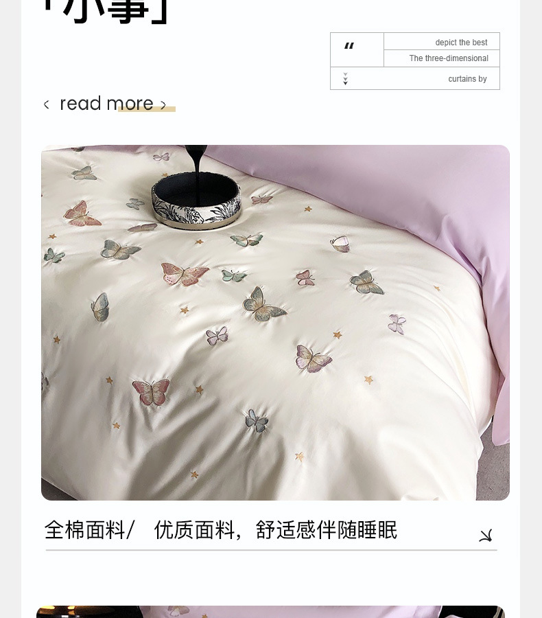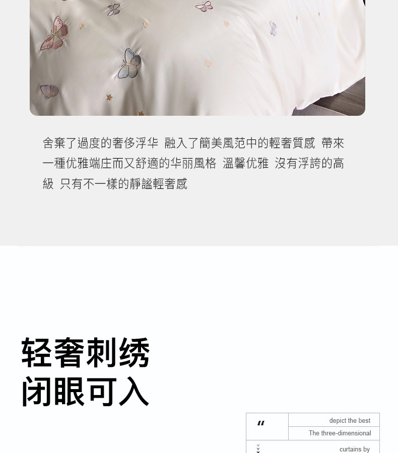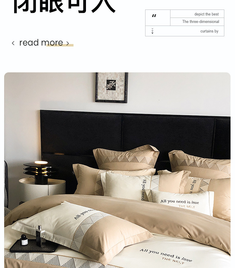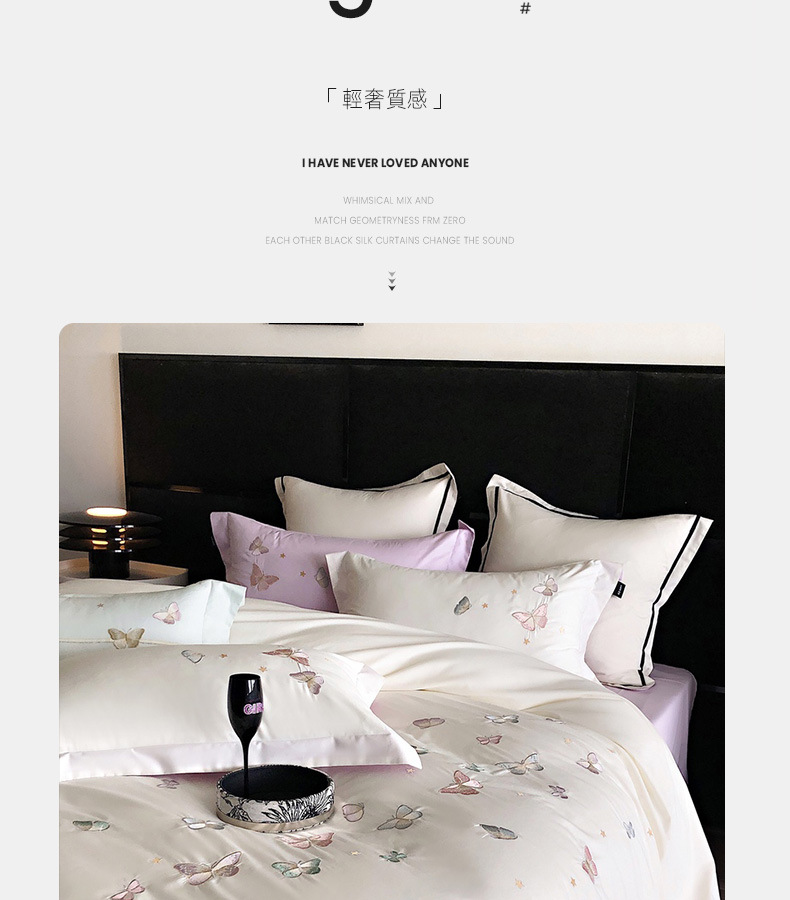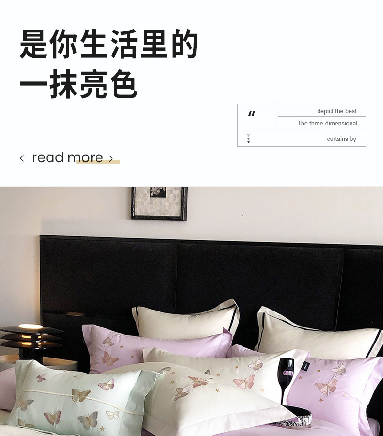 | Especificaciones de tamaño | Juegos de cuatro piezas para sábanas de 1,5 metros (edredones 200 * 230 sábanas 230 * 250 fundas de almohada 48 * 74 * 2), juegos de cuatro piezas para sábanas de 1,8 metros (edredones 200 * 230 sábanas 230 * 245 fundas de almohada 48 * 74 * 2), juegos de cuatro piezas para sábanas de 2,0 metros (edredones 220 * 240 sábanas 245 * 250 fundas de almohada 48 * 74 * 2) |