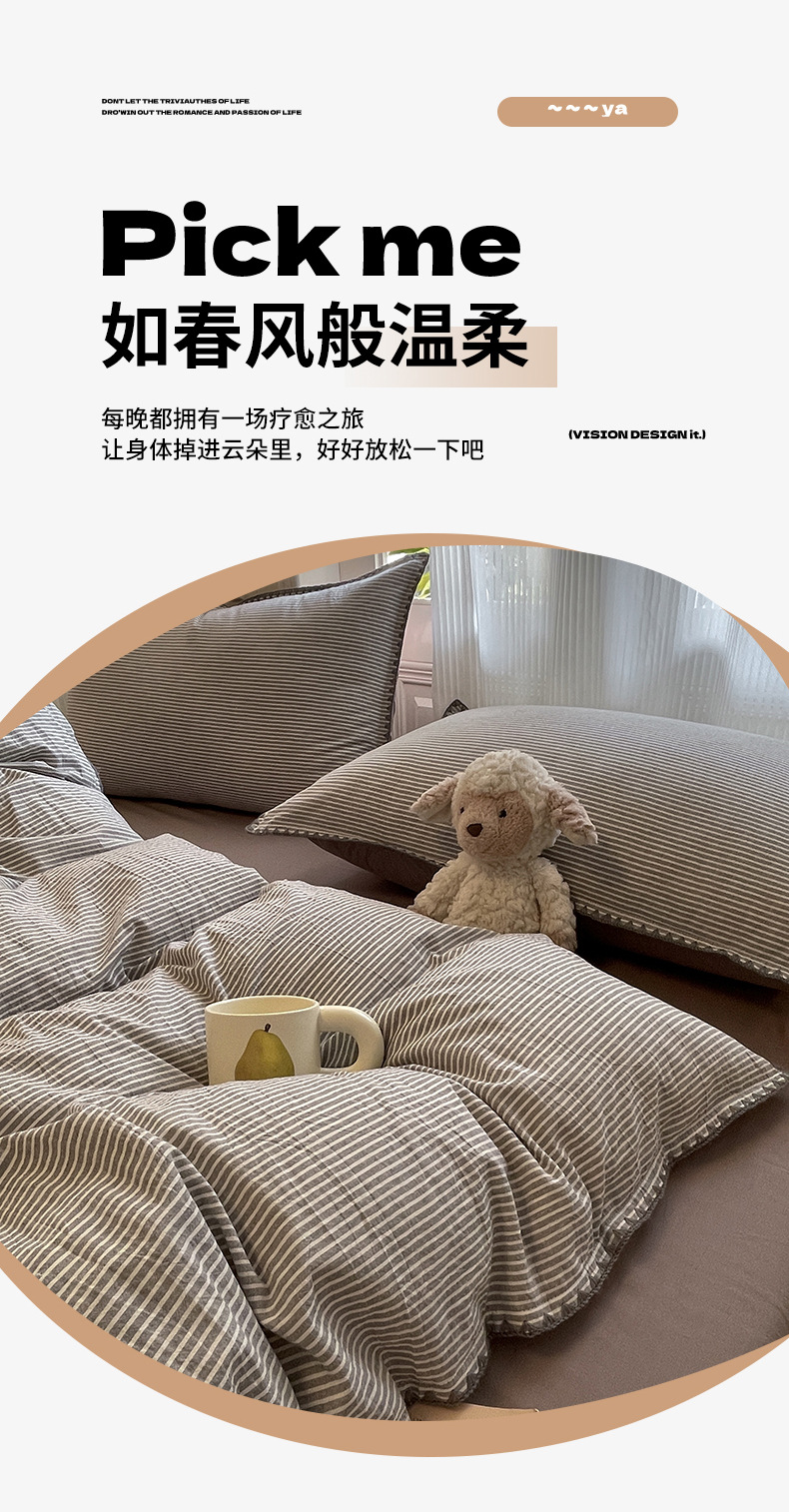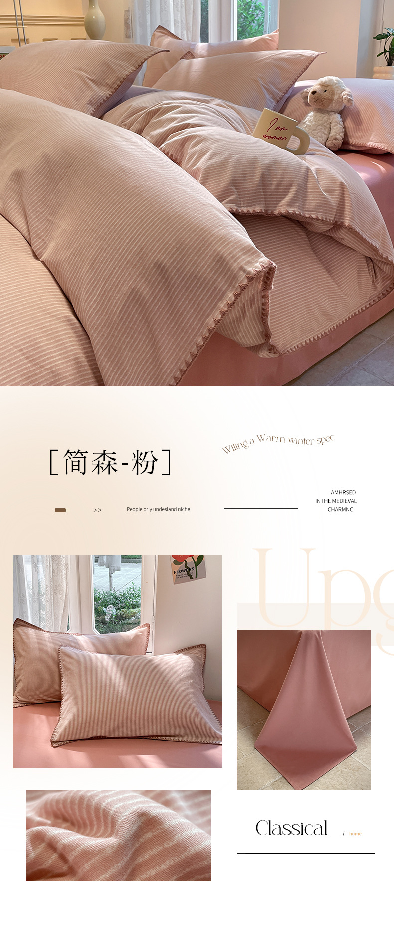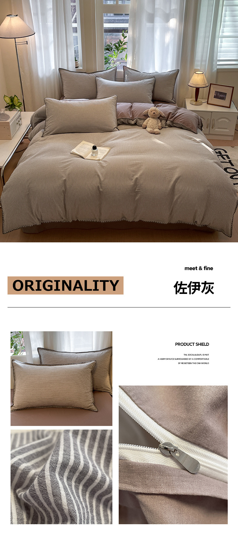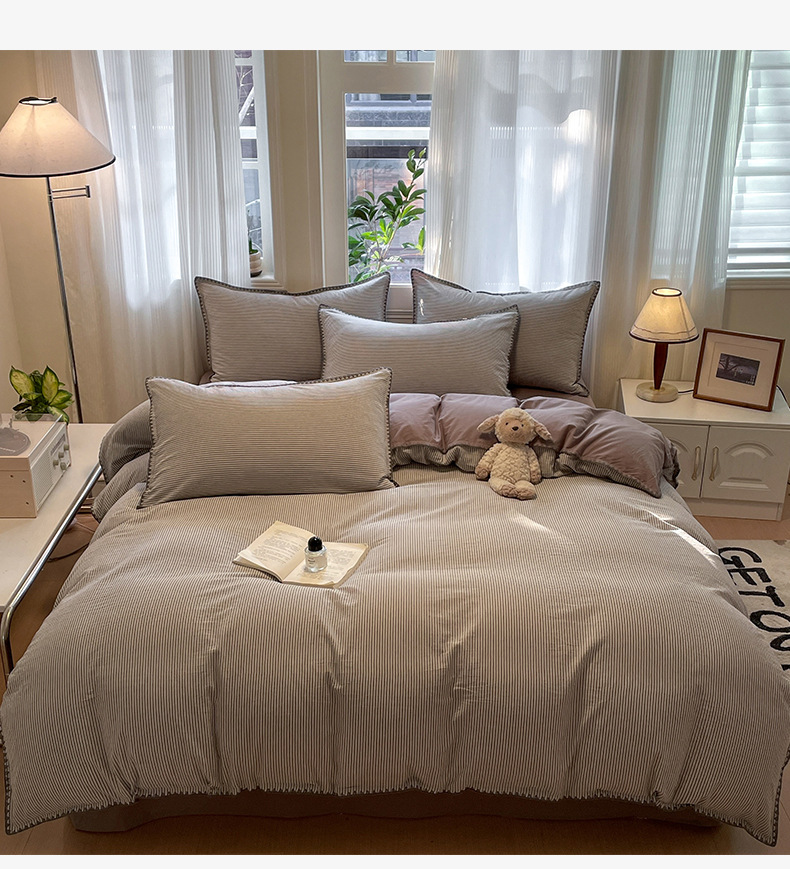 A clase de agujas de rayas grises primavera y otoño molido cuatro piezas de invierno engrosado sábanas de algodón