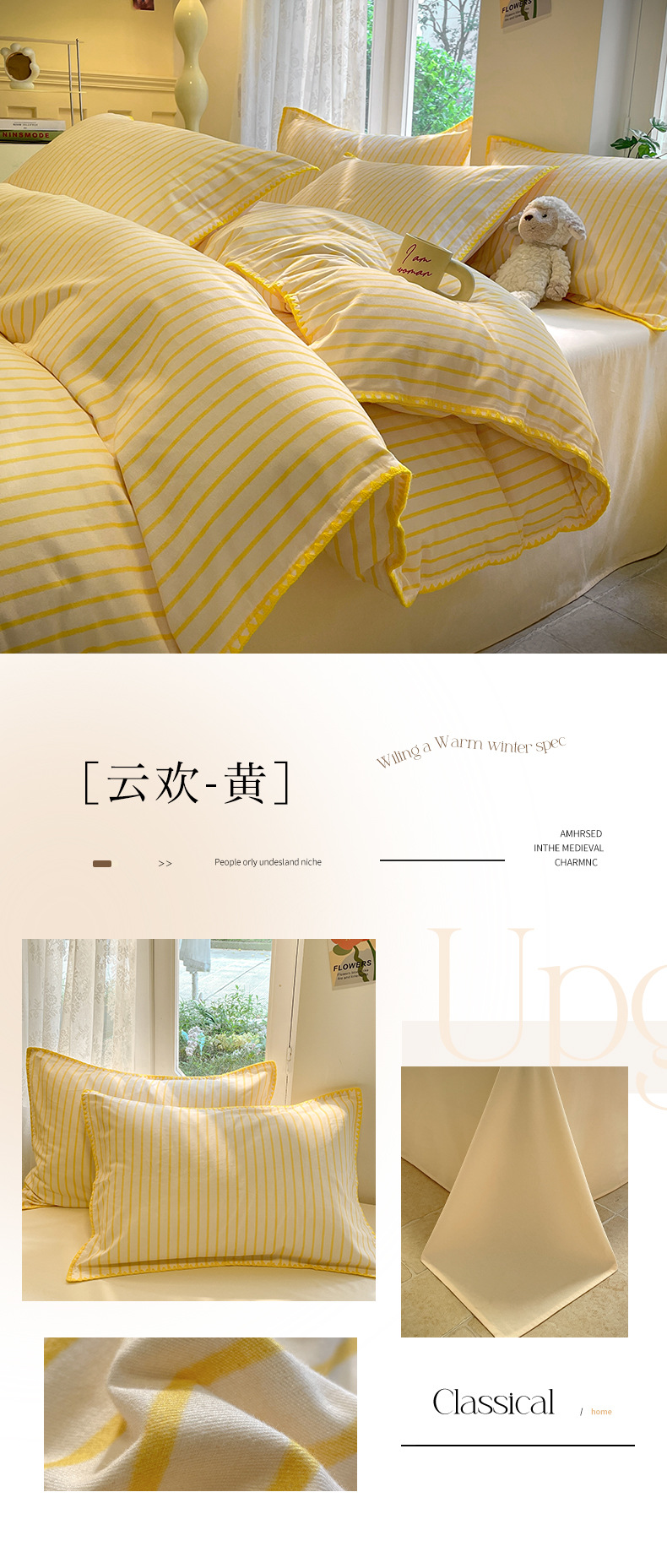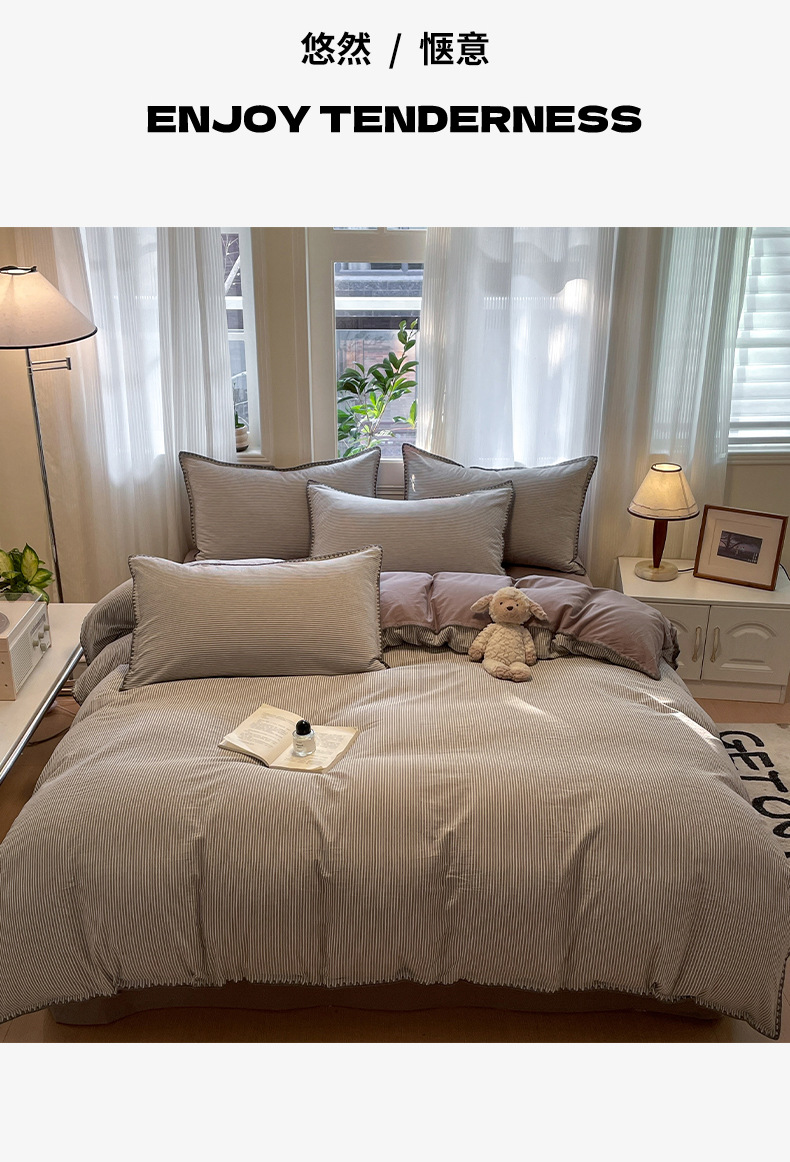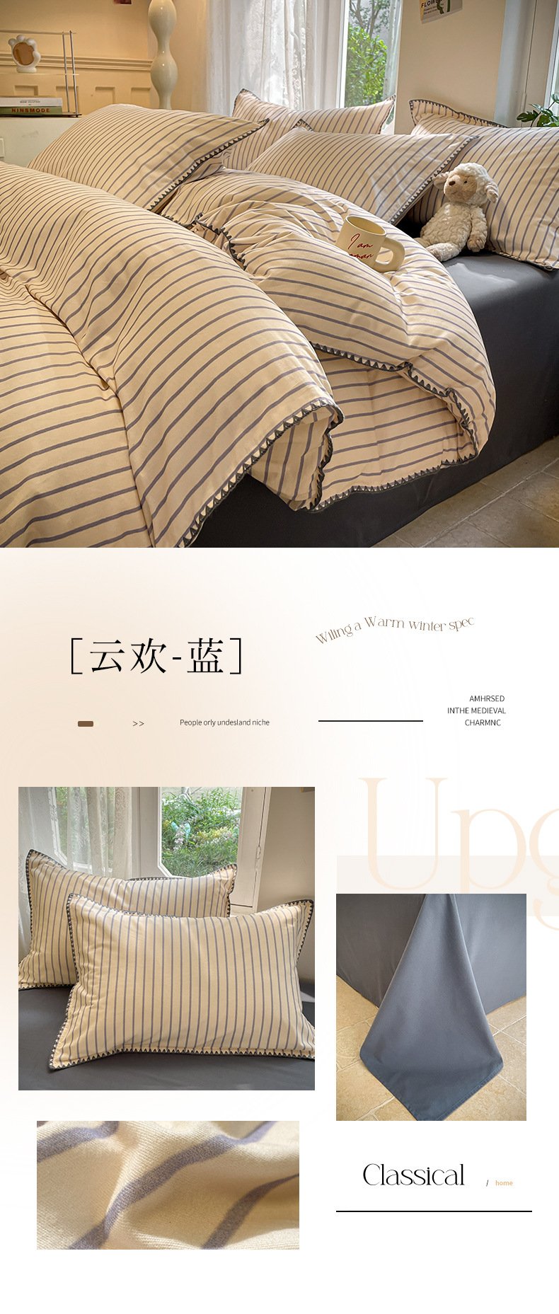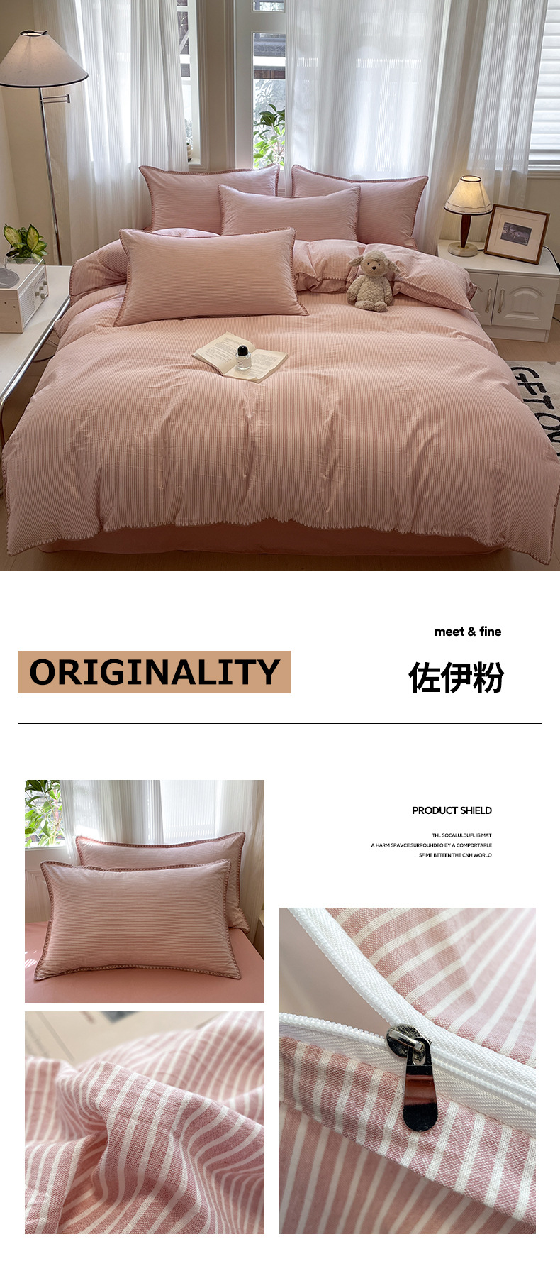 A clase de agujas de rayas grises primavera y otoño molido cuatro piezas de invierno engrosado sábanas de algodón