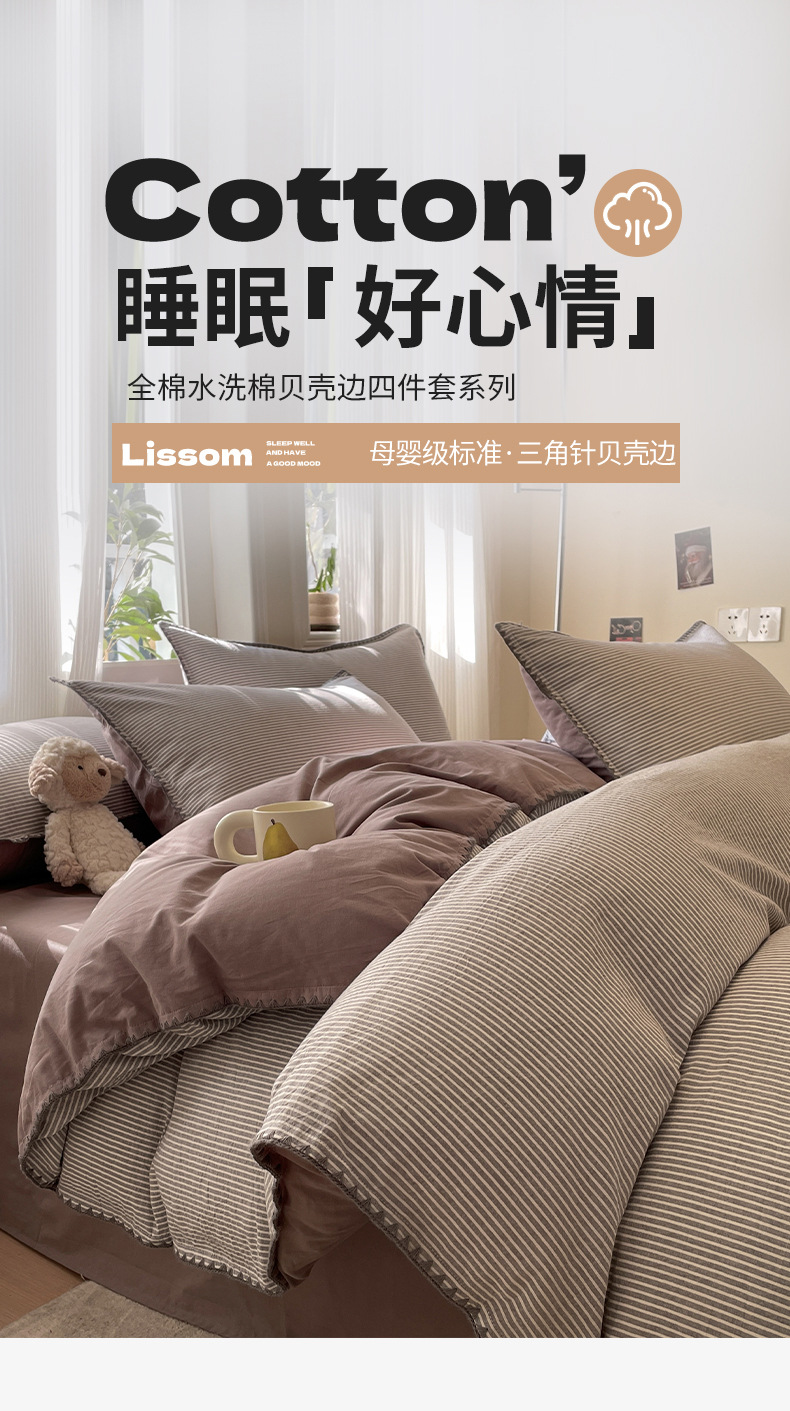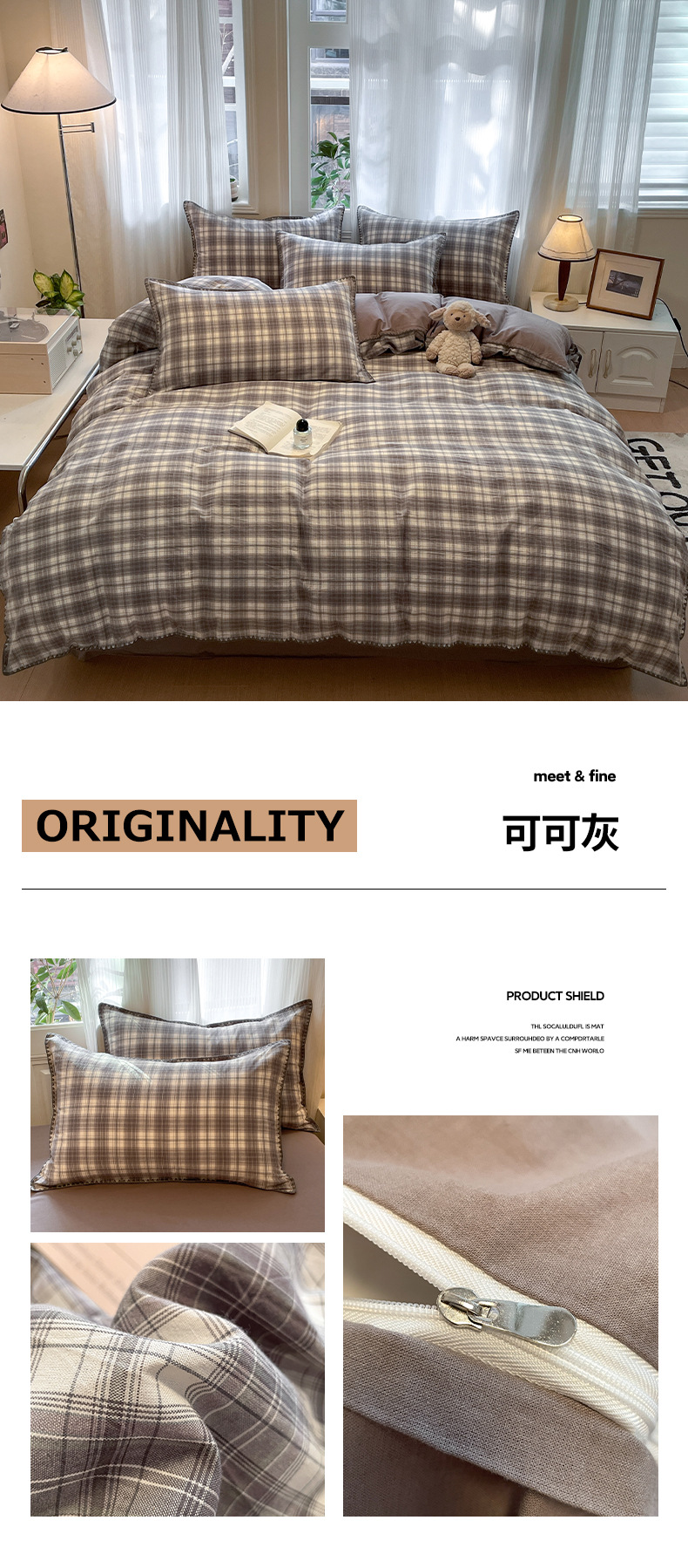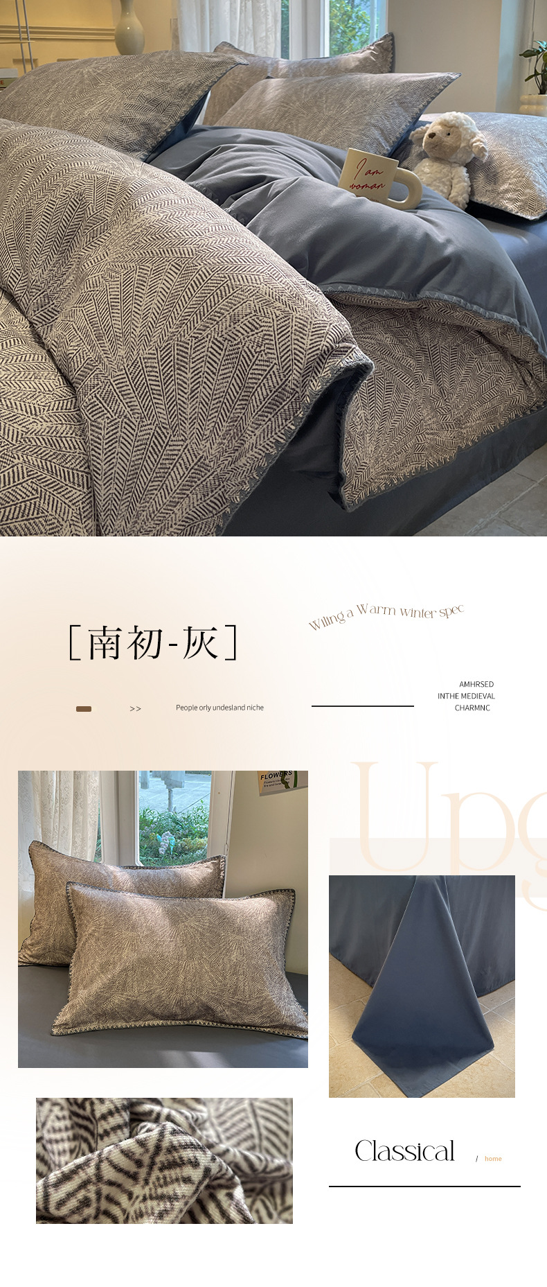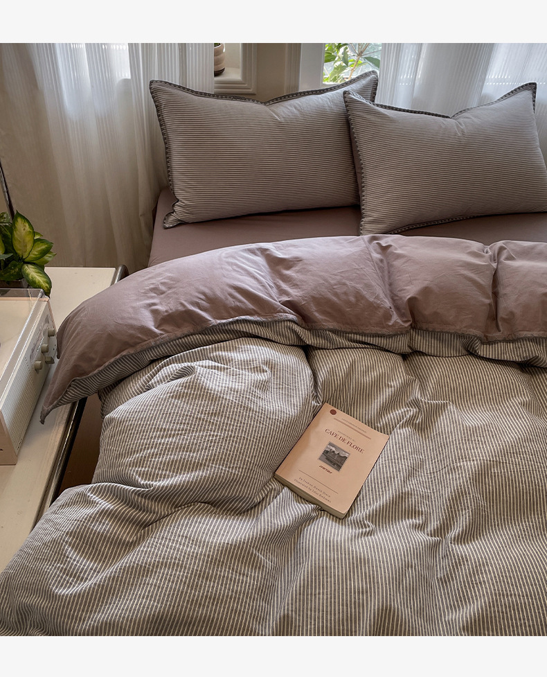 A clase de agujas de rayas grises primavera y otoño molido cuatro piezas de invierno engrosado sábanas de algodón