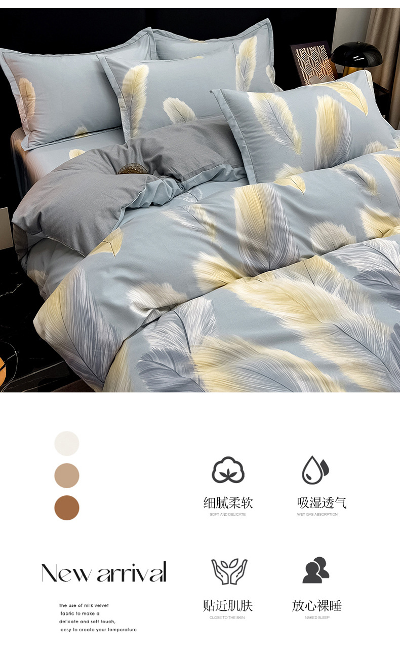 Juego de cuatro piezas de sábanas de 1,35 M (edredón 180 * 220 sábanas 245 * 250 fundas de almohada 48 * 74 * 2)