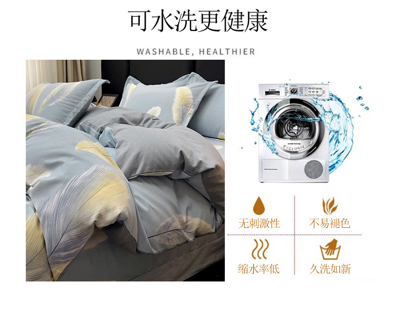 | Especificaciones de tamaño | 0,9 m sábanas de tres piezas (edredones 150 * 200 sábanas 160 * 230 fundas de almohada 48 * 74 * 1), 1,2 m sábanas de tres piezas (edredones 160 * 210 sábanas 180 * 245 fundas de almohada 48 * 74 * 2), 1,35 m sábanas de cuatro piezas (edredones 180 * 220 sábanas 245 * 250 fundas de almohada 48 * 74 * 2), 1,5 m sábanas de cuatro piezas (edredones 200 * 230 sábanas 245 * 250 fundas de almohada 48 * 74 * 2), 1,8 m sábanas de cuatro piezas 200 * 230 sábanas 245 * 250 fundas de almohada 48 * 74 * 2), 2,2 m sábanas de cuatro piezas juegos 220 * 240 sábanas 245 * 270 fundas de almohada 48 * 74 * 2) |