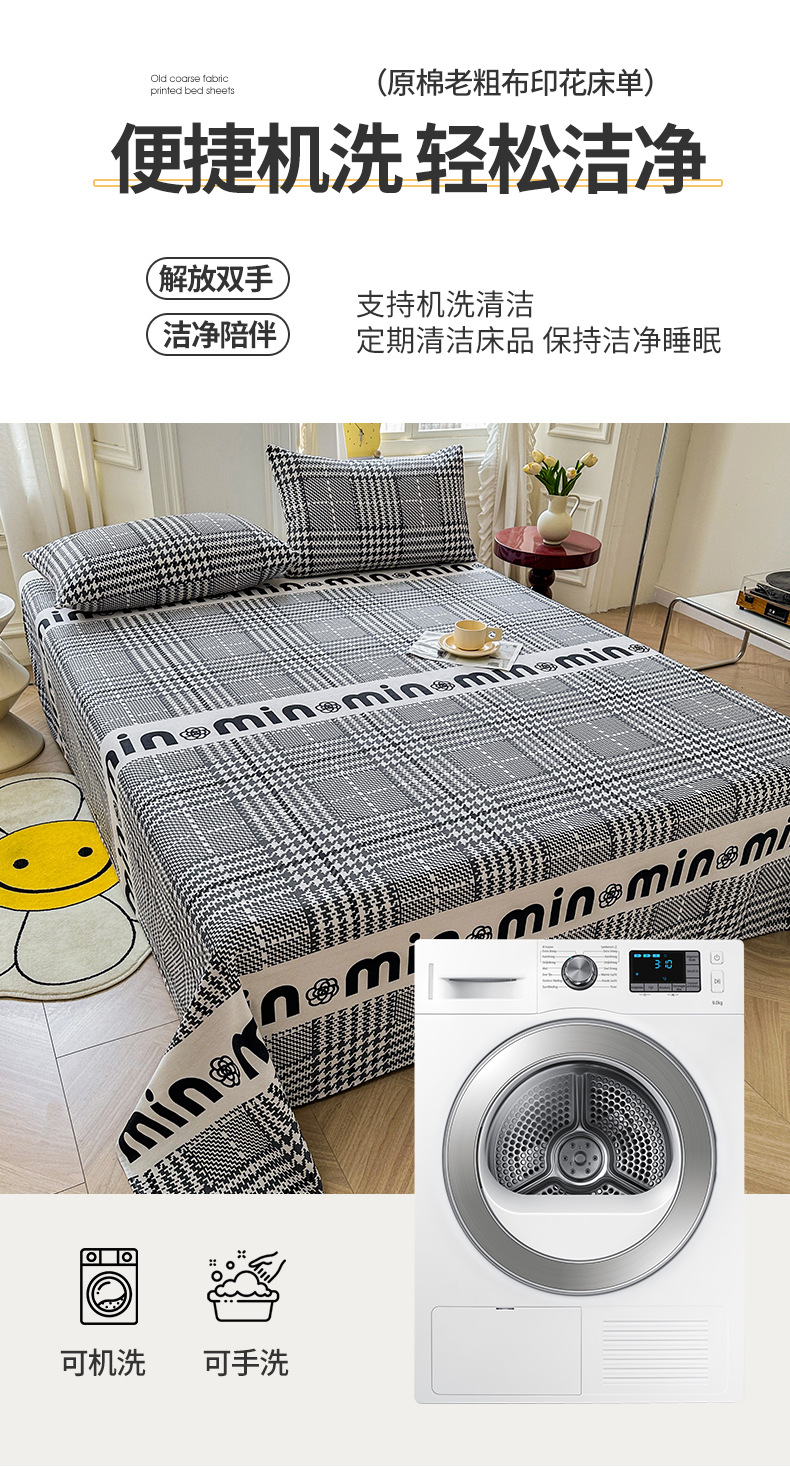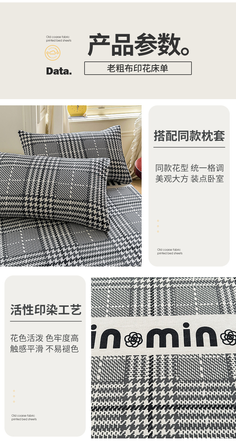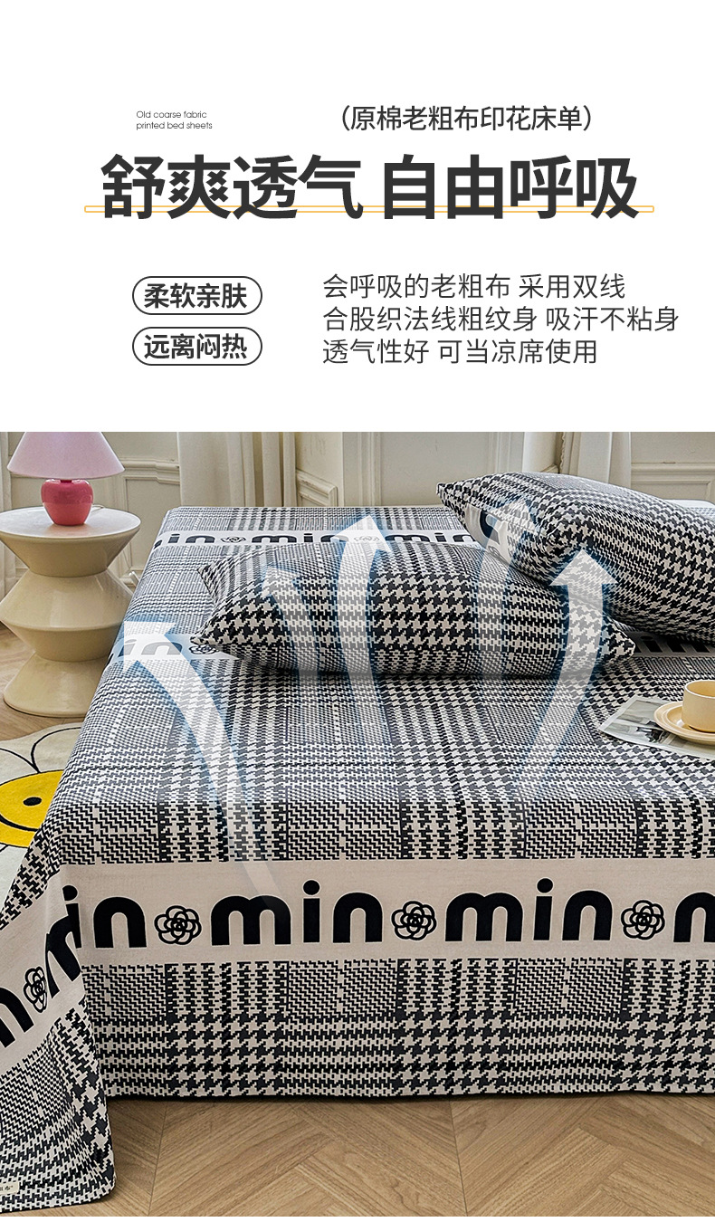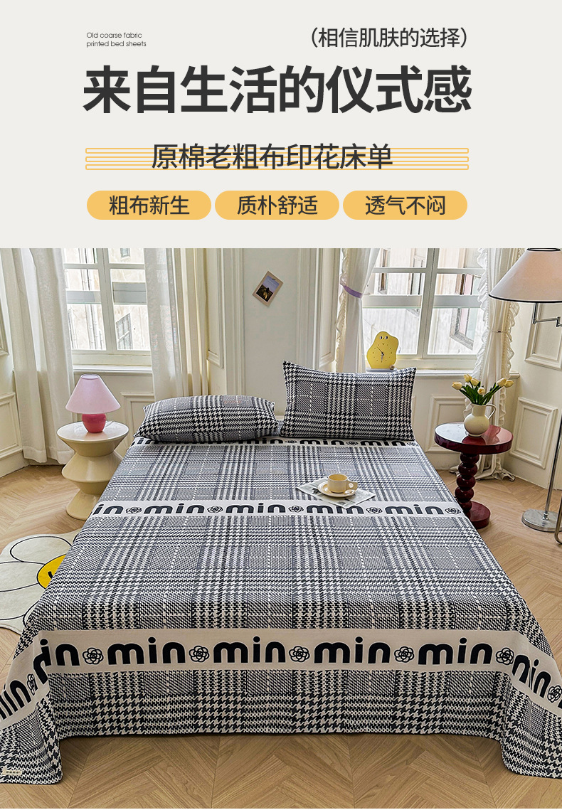 Sábana de algodón de estilo grueso y sin impresión, dormitorio de estudiantes, juego de dos piezas, funda de almohada de sábanas de tela gruesa vieja de algodón de algodón puro, juego de tres piezas