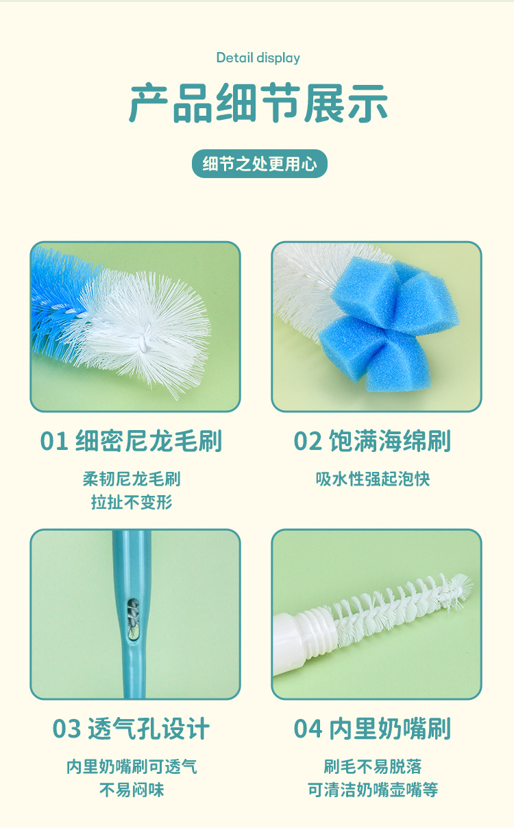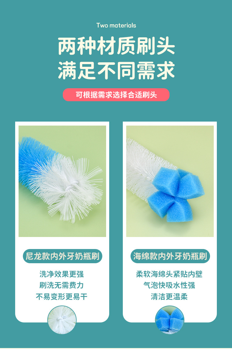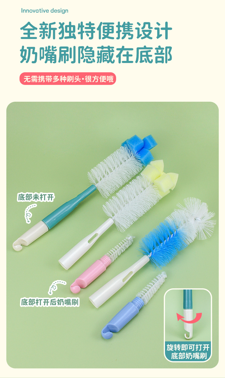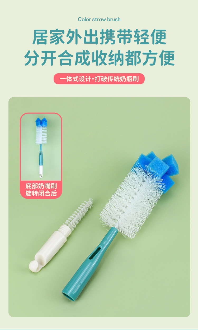 Biberón cepillo de limpieza esponja Copa cepillo pezón cepillo dos en uno traje de cepillo de limpieza sin ángulo muerto cepillo de eliminación de manchas de té