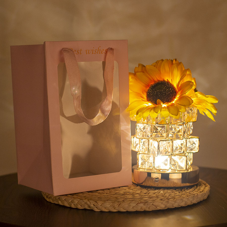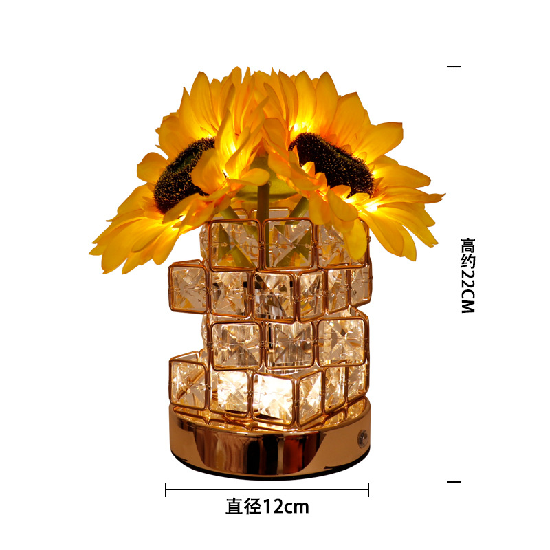 Girasol LED noche luz Rose cristal decoración escritorio dormitorio atmósfera lámpara de mesa regalo cumpleaños