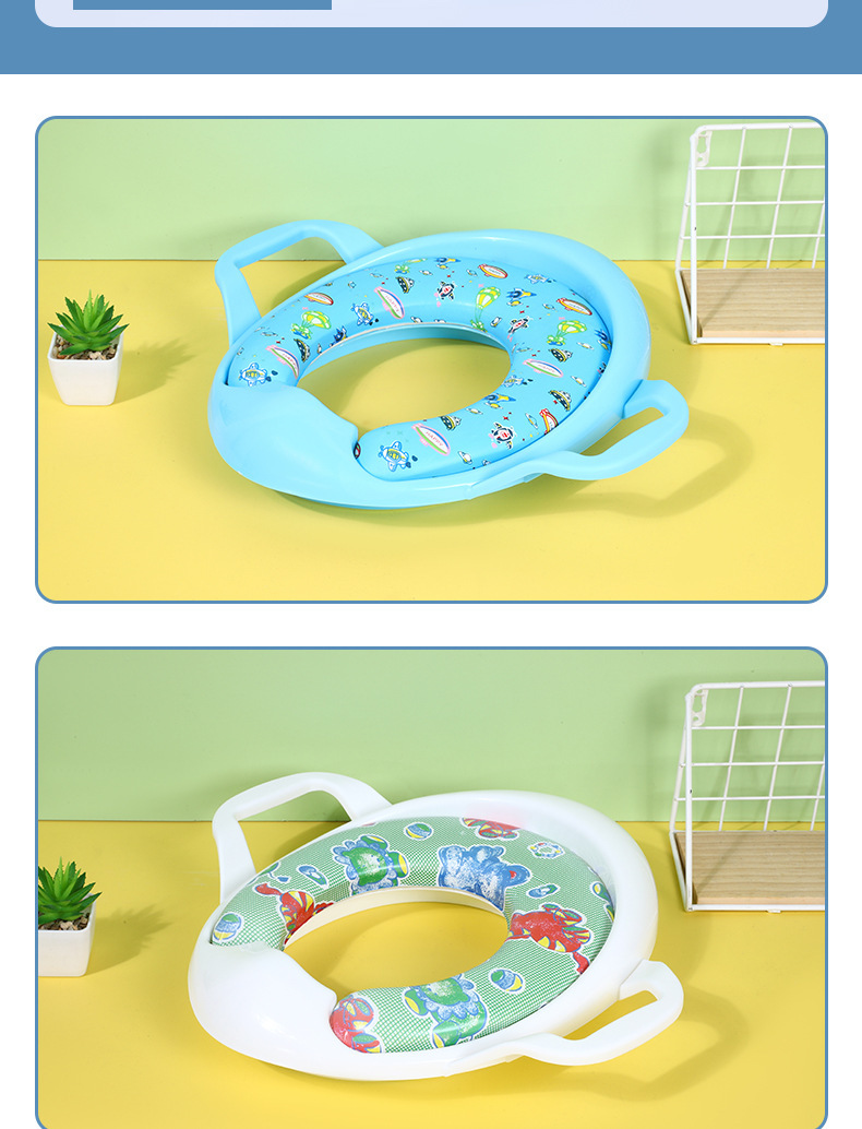 Nuevo bebé dibujos animados auxiliares inodoro anillo de asiento con pasamanos fábrica de inodoro al por mayor