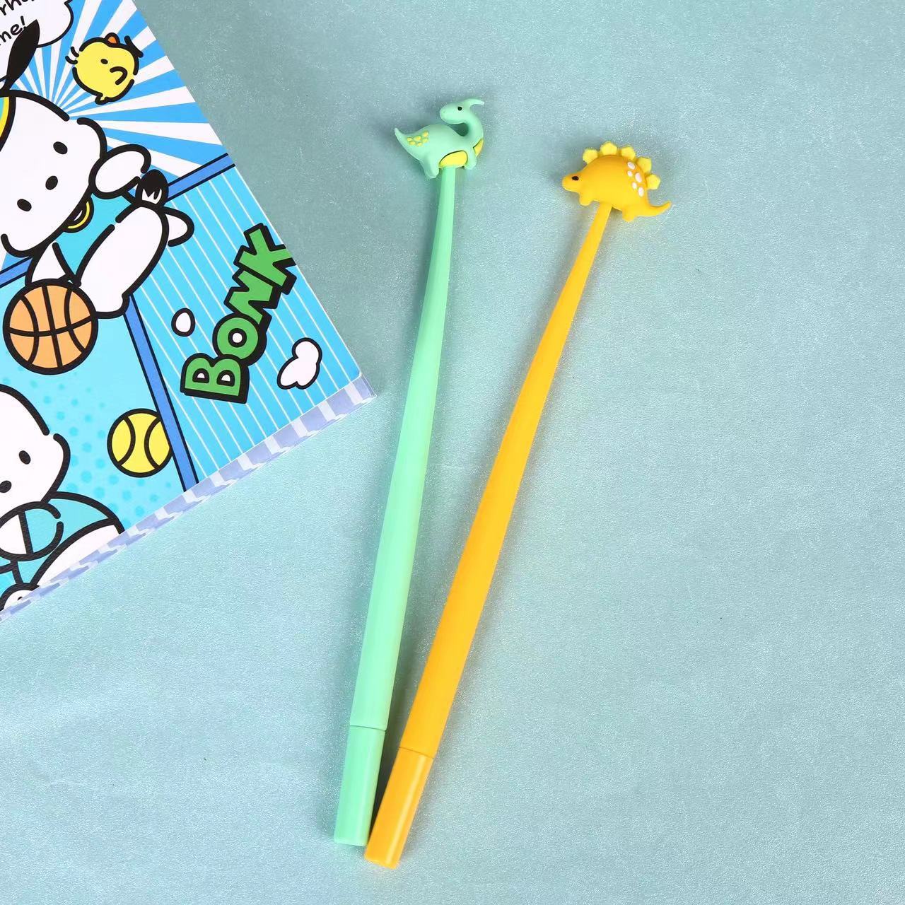 Pinmu nueva pluma de gel dinosaurio animal flexible Pegamento de silicona modelado pluma de agua dinosaurio Jurásico papelería al por mayor