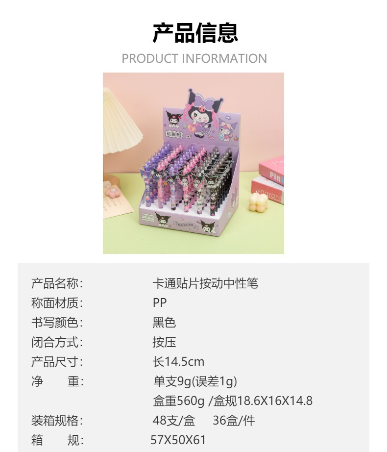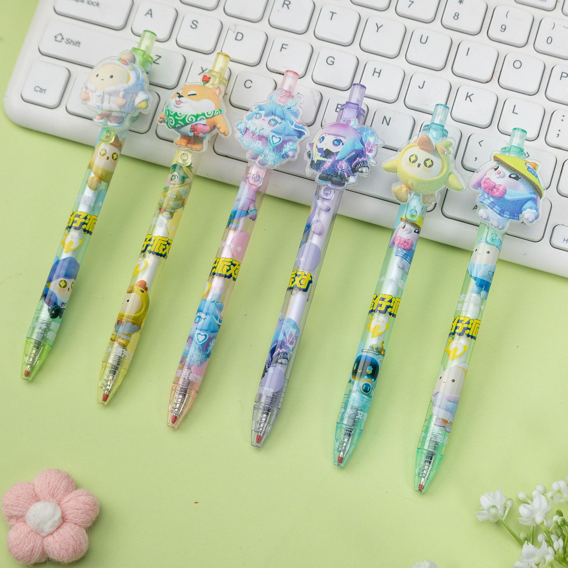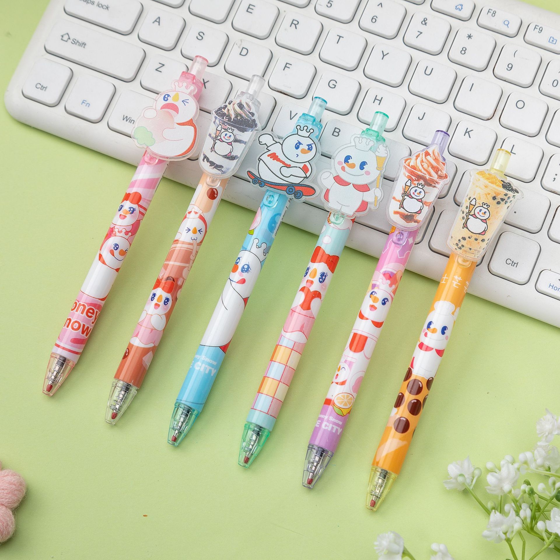 Parche de dibujos animados Bolígrafo de góner de prensa Bolígrafo negro Bolígrafo de firma de escritura de examen de estudiante en caja